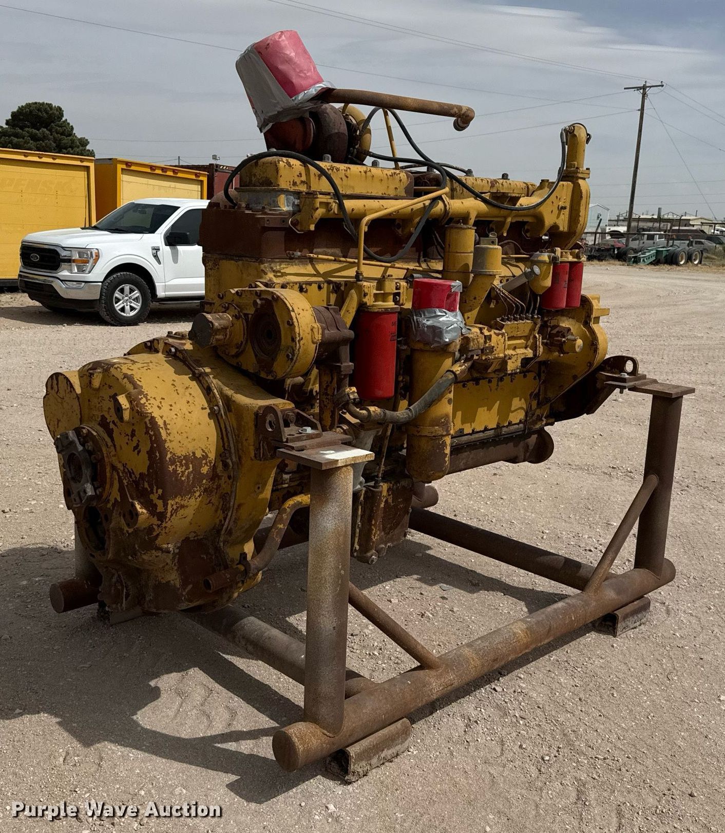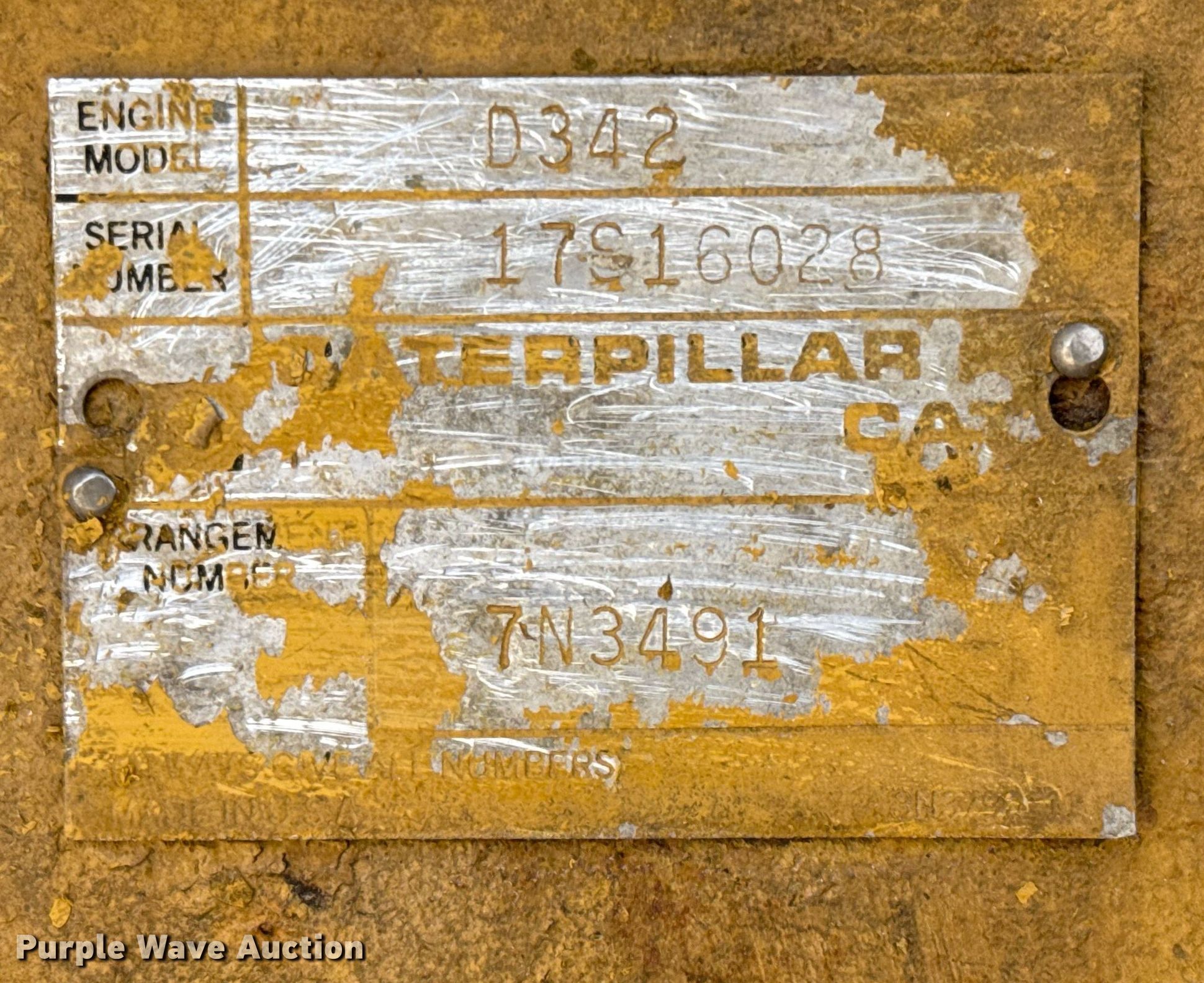 Purple Wave is selling a used Engine in Texas. This item is a Caterpillar D342 engine with the following: Serial: 17S16028, Cylinders: 6, Fuel type: Diesel
