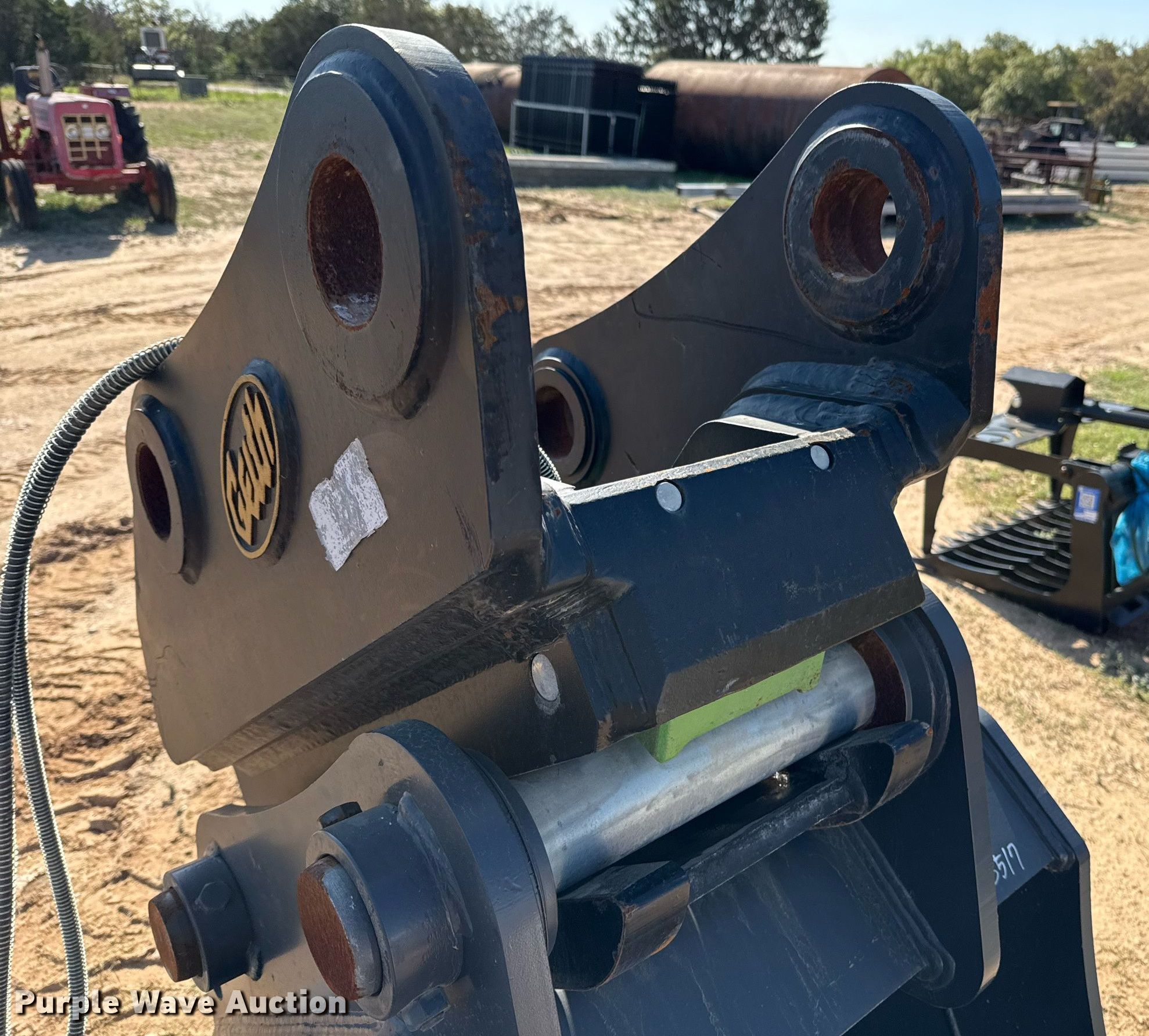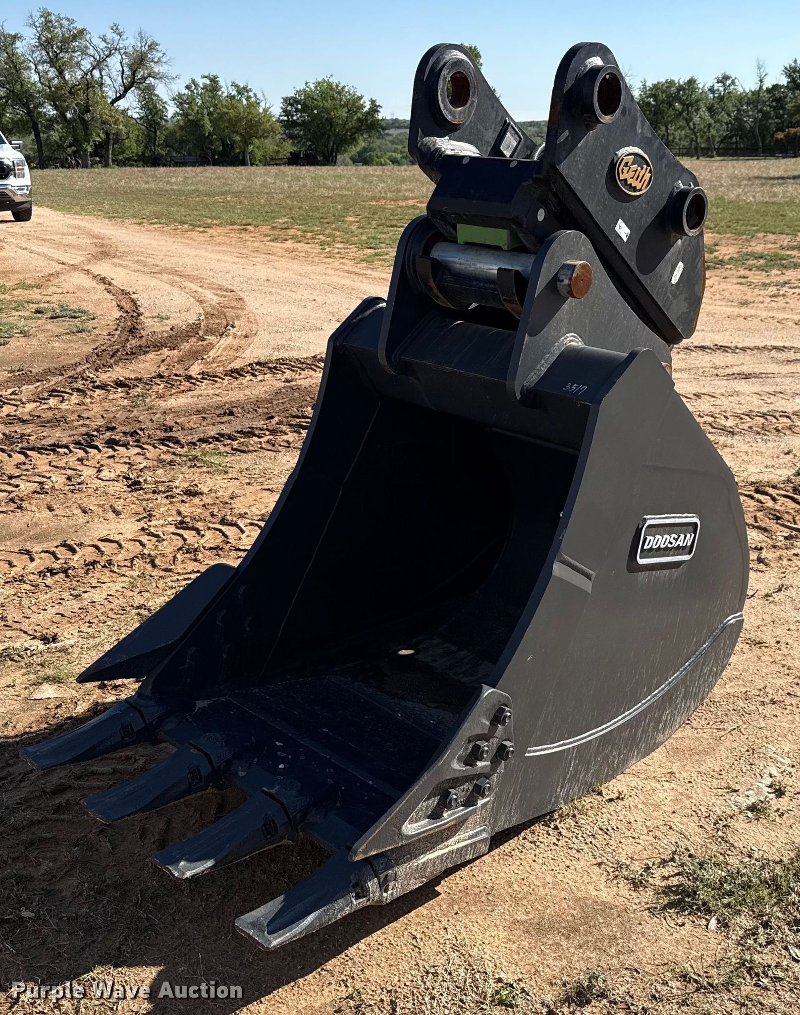 Purple Wave is selling a used Excavator Attach. in Texas. This item is a 2021 Doosan excavator bucket with the following: Width: 36", Teeth: 4, Geith QC70 quick coupler, Serial: 1078709, Fits Doosan DX225
