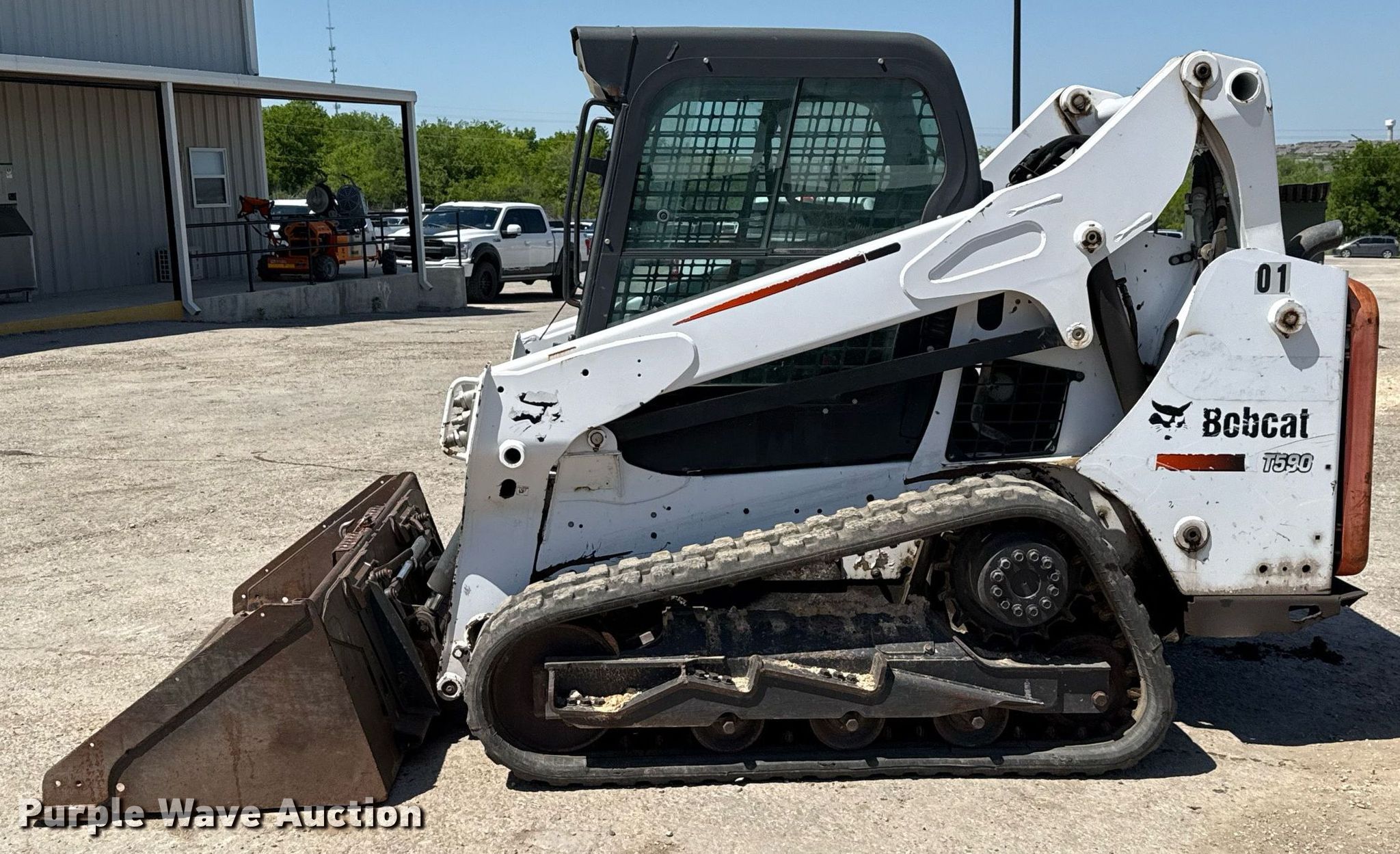Purple Wave is selling a used Tracked Skid Steer Loader in Texas. This item is a 2016 Bobcat T590 tracked skid steer loader with the following: Hours: 3,105 on meter, Serial: ALJU19056