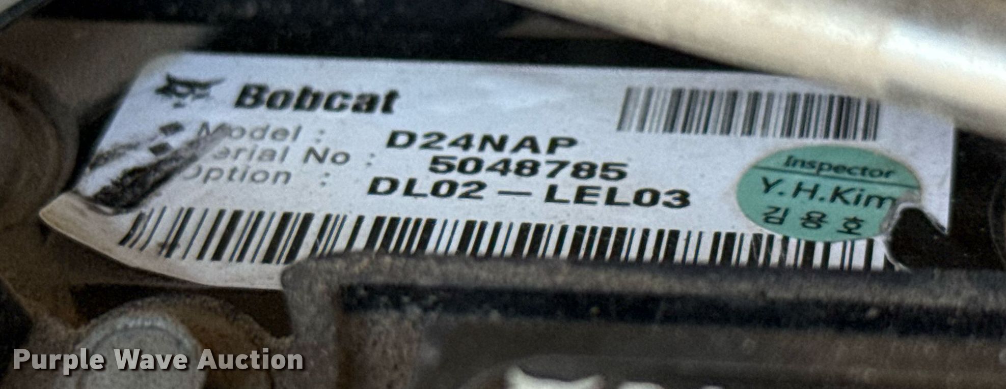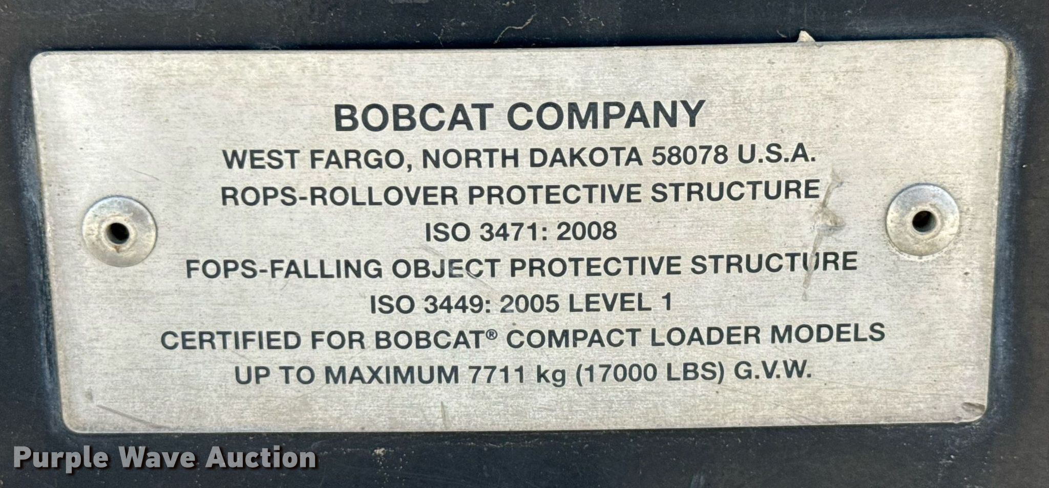 2016 Bobcat T590 tracked skid steer loader. Hours: 3,105 on meter, Serial: ALJU19056. Engine Bobcat D24NAP, Serial: 5048785, Displacement: 2.4L, Cylinders: 4, Fuel type: Diesel. Transmission Hydrostatic, Two speed travel. Operators station Enclosed cab, AC, Heat, Bucket control: Hand, Pattern changer. Features Auxiliary hydraulics, Auxiliary electrical outlet, Quick coupler: Hydraulic, Bucket Width: 74", Low profile, Cutting edge: Bolt-on. Tracks Width: 13". Notes Dead battery, Door missing, Non-operational AC Belt missing, Damaged, Engine issues, stalls. BorePro Utility Construction LLC. Buda, TX 78610