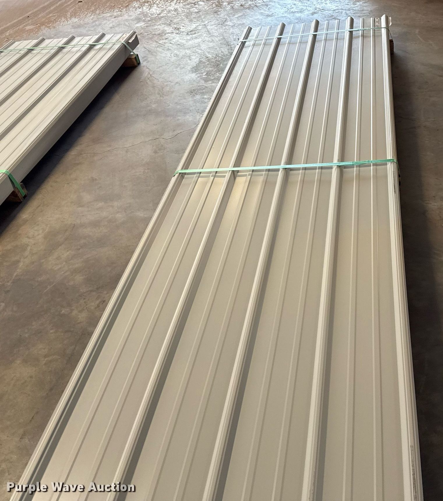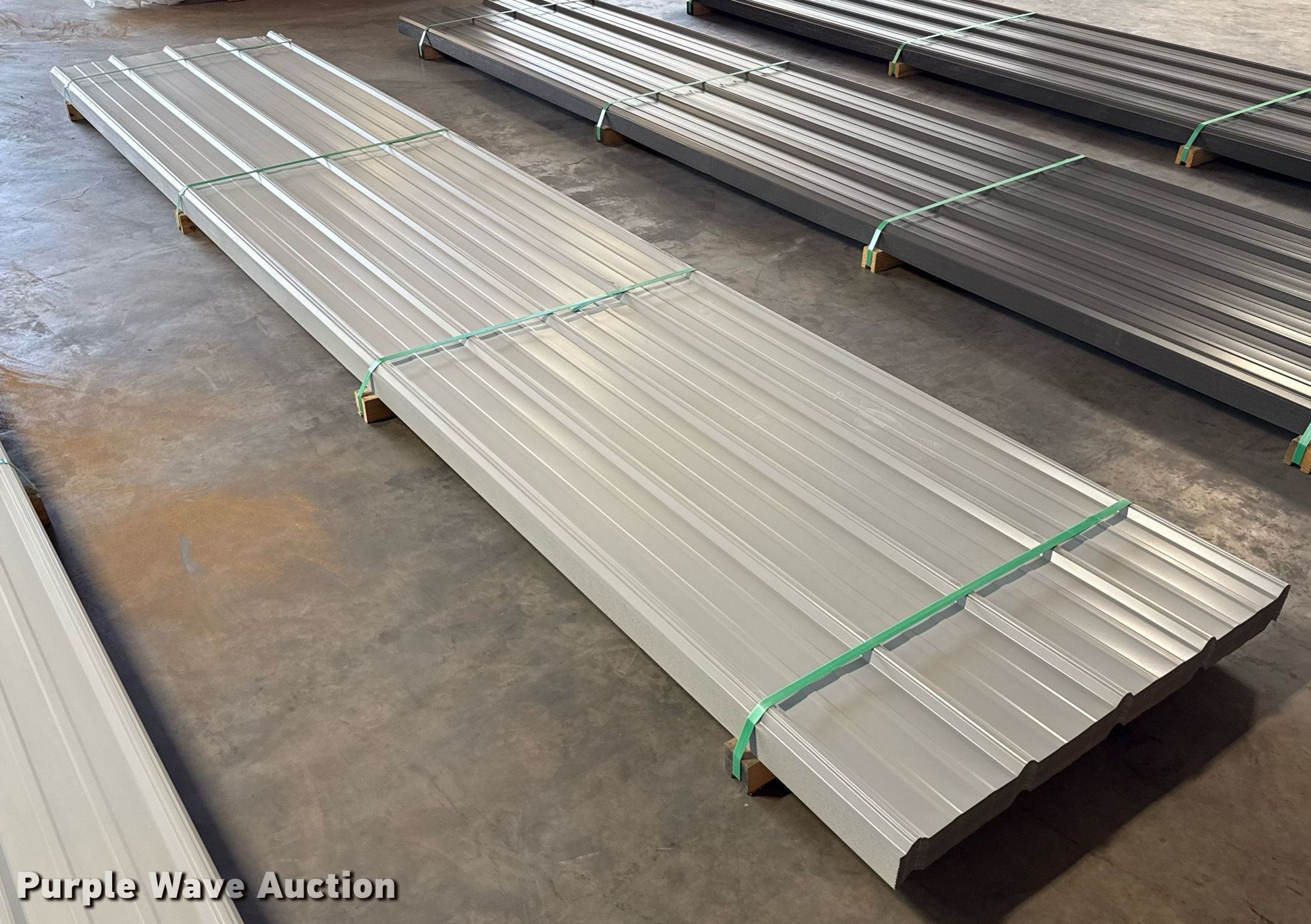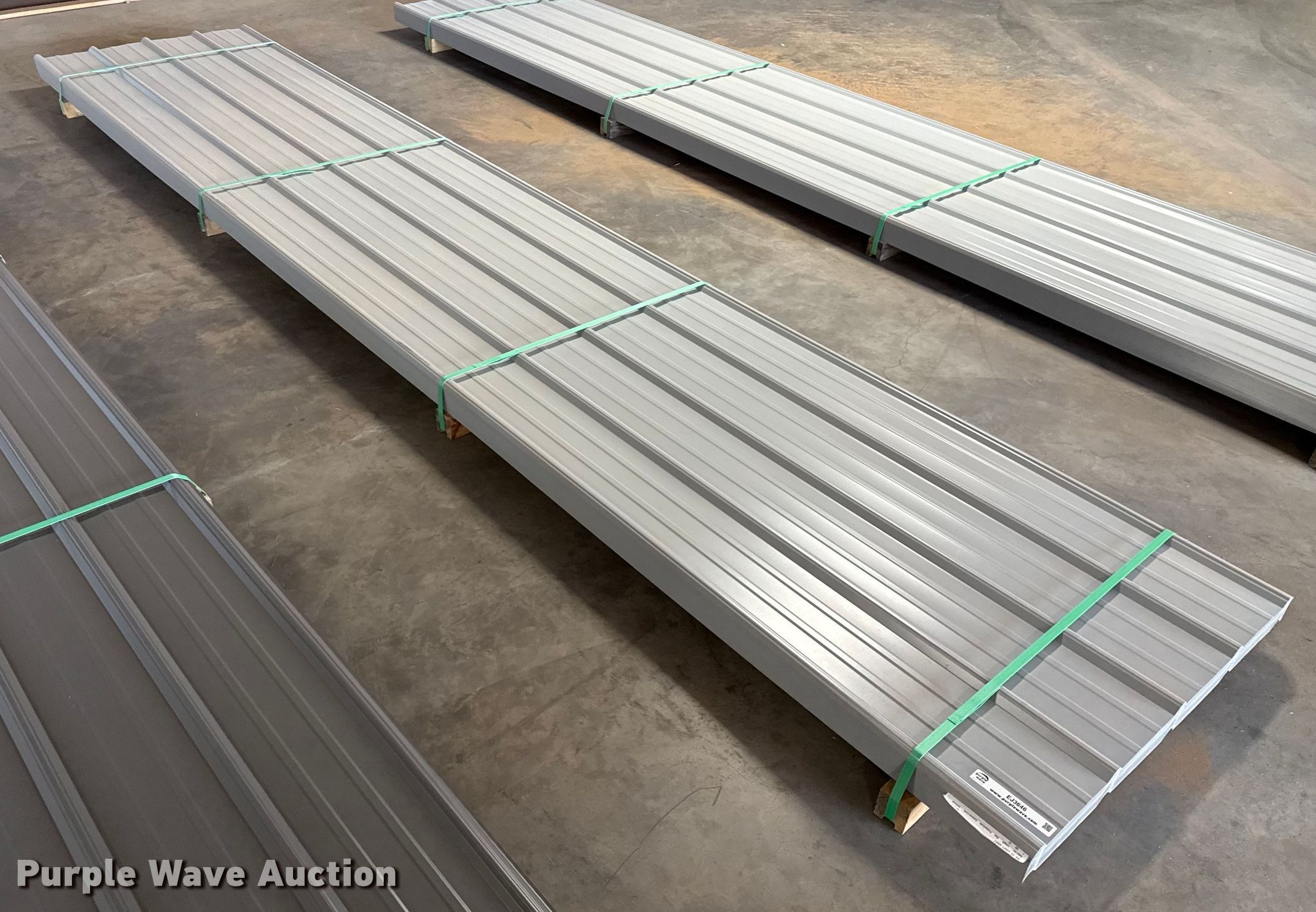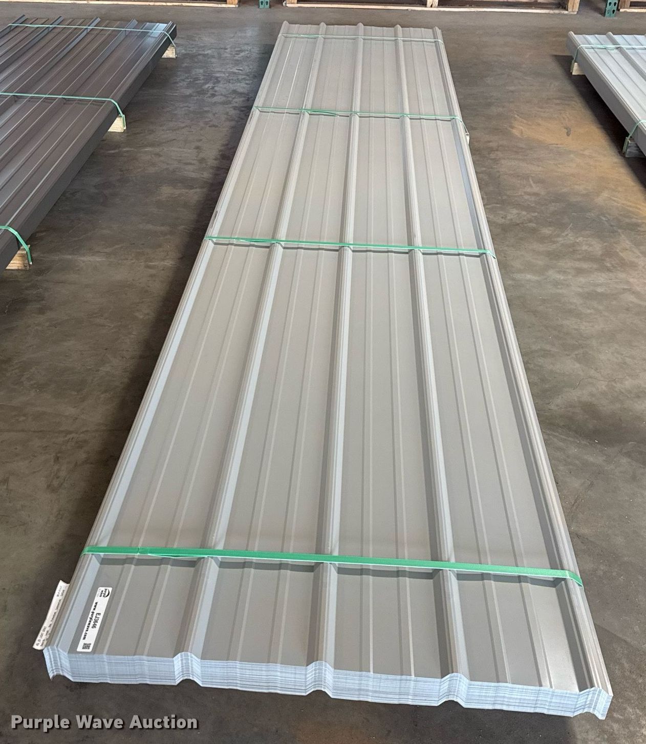 Purple Wave is selling a used Building Materials in Texas. This item is a (100) sheets of Doerksen Metal Components metal siding/roofing with the following: 16' L x 36" W overlap coverage, AG panel, 29 gauge, Color: Light gray, Possible blemishes