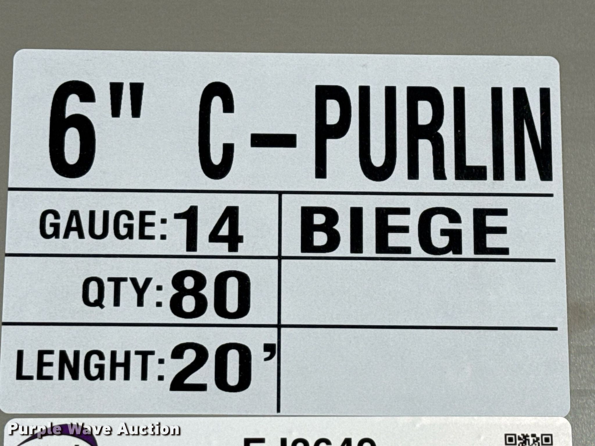 Purple Wave is selling a used Building Materials in Texas. This item is a (80) Doerksen Metal Components C-Purlins with the following: 20' L x 6" W, 14 gauge, Color: Beige, Possible blemishes