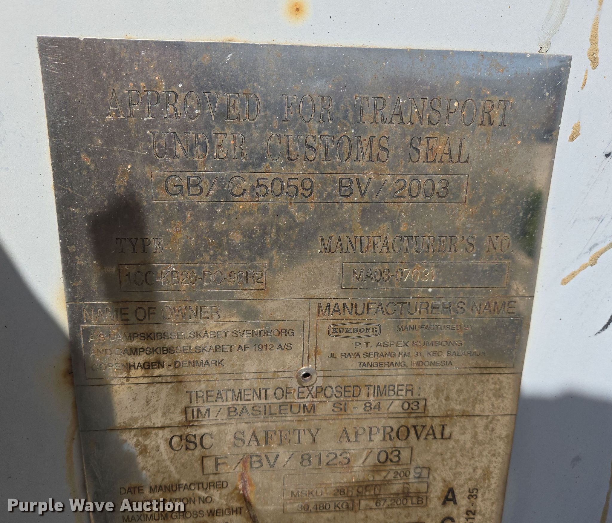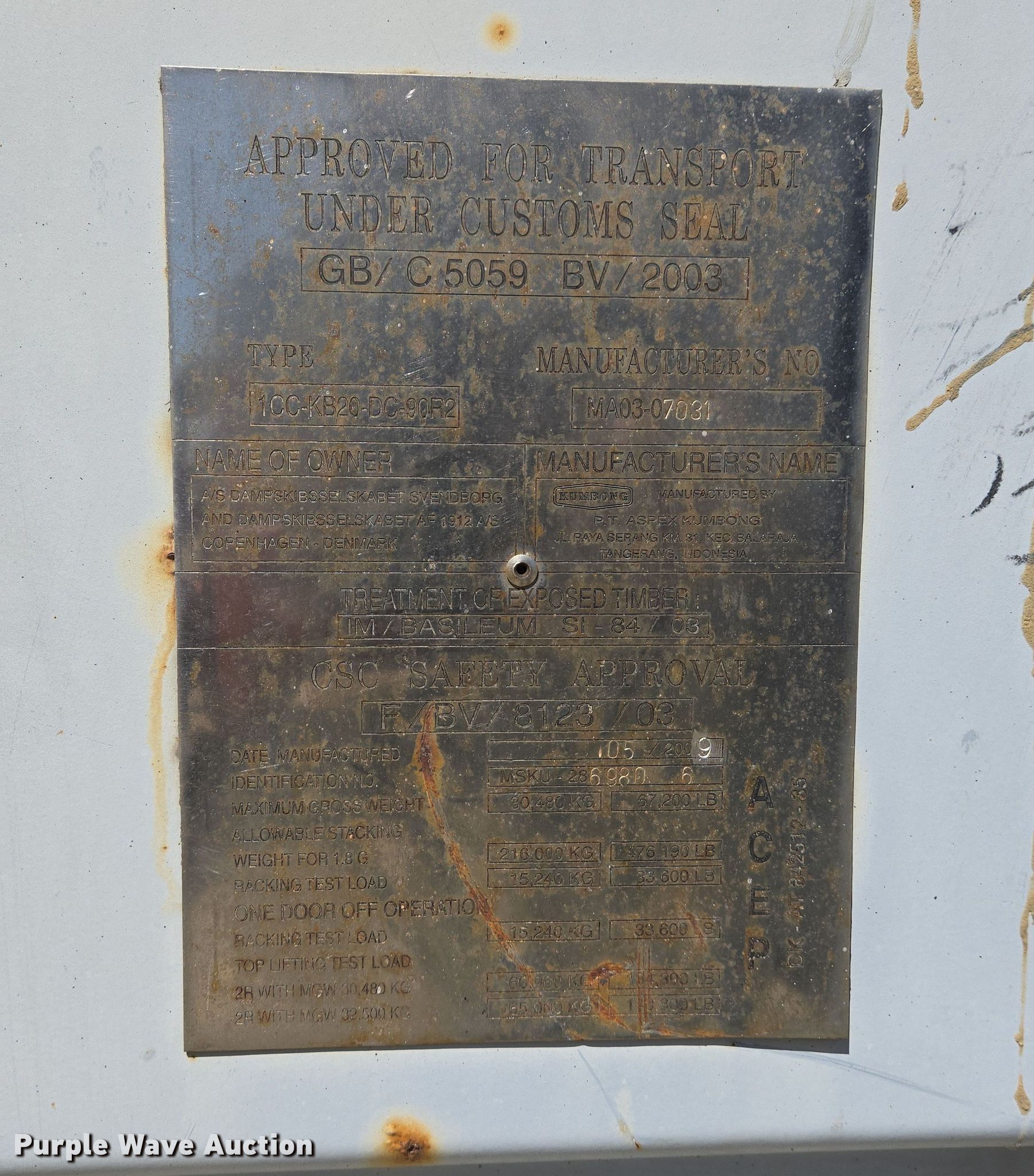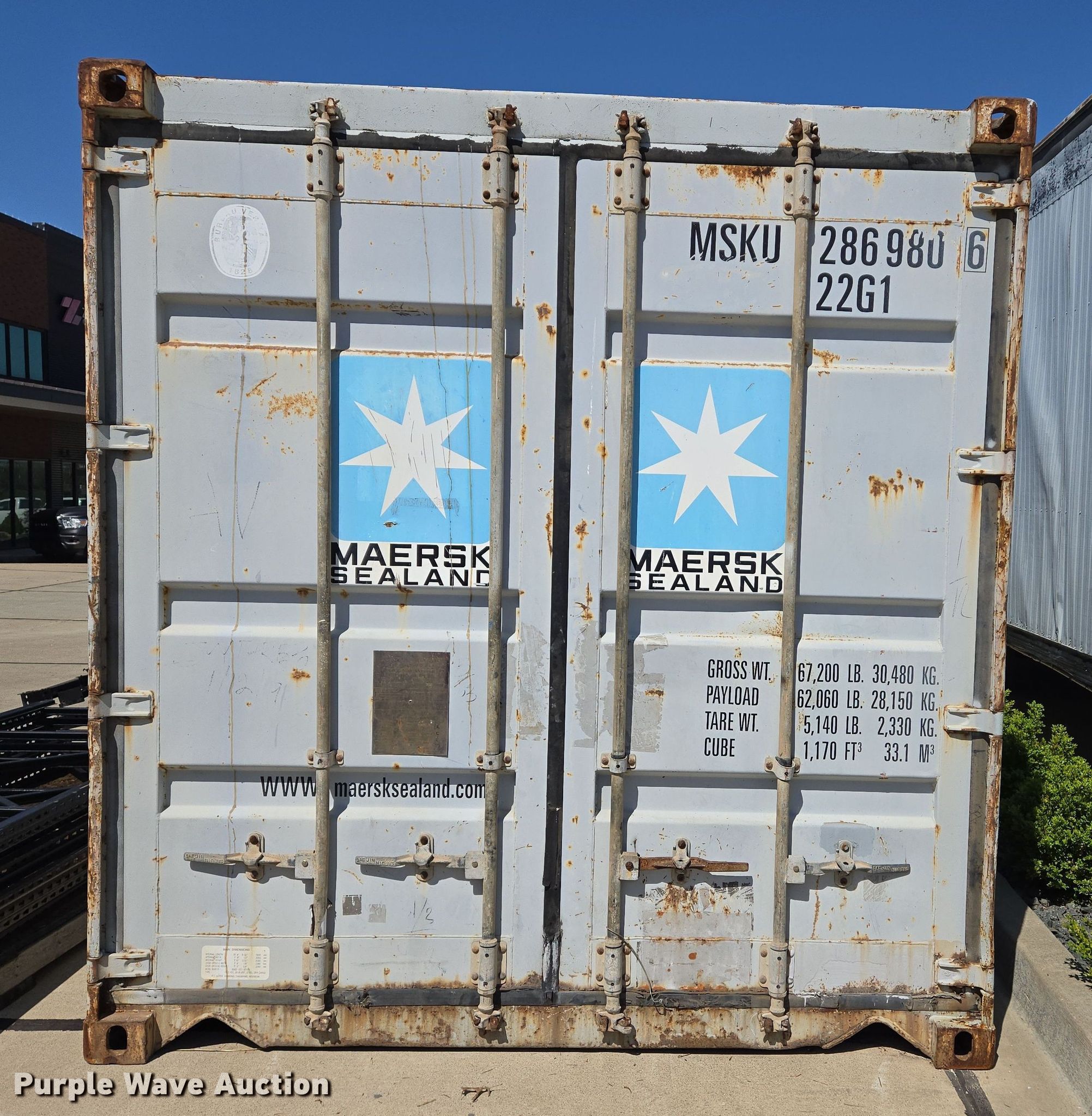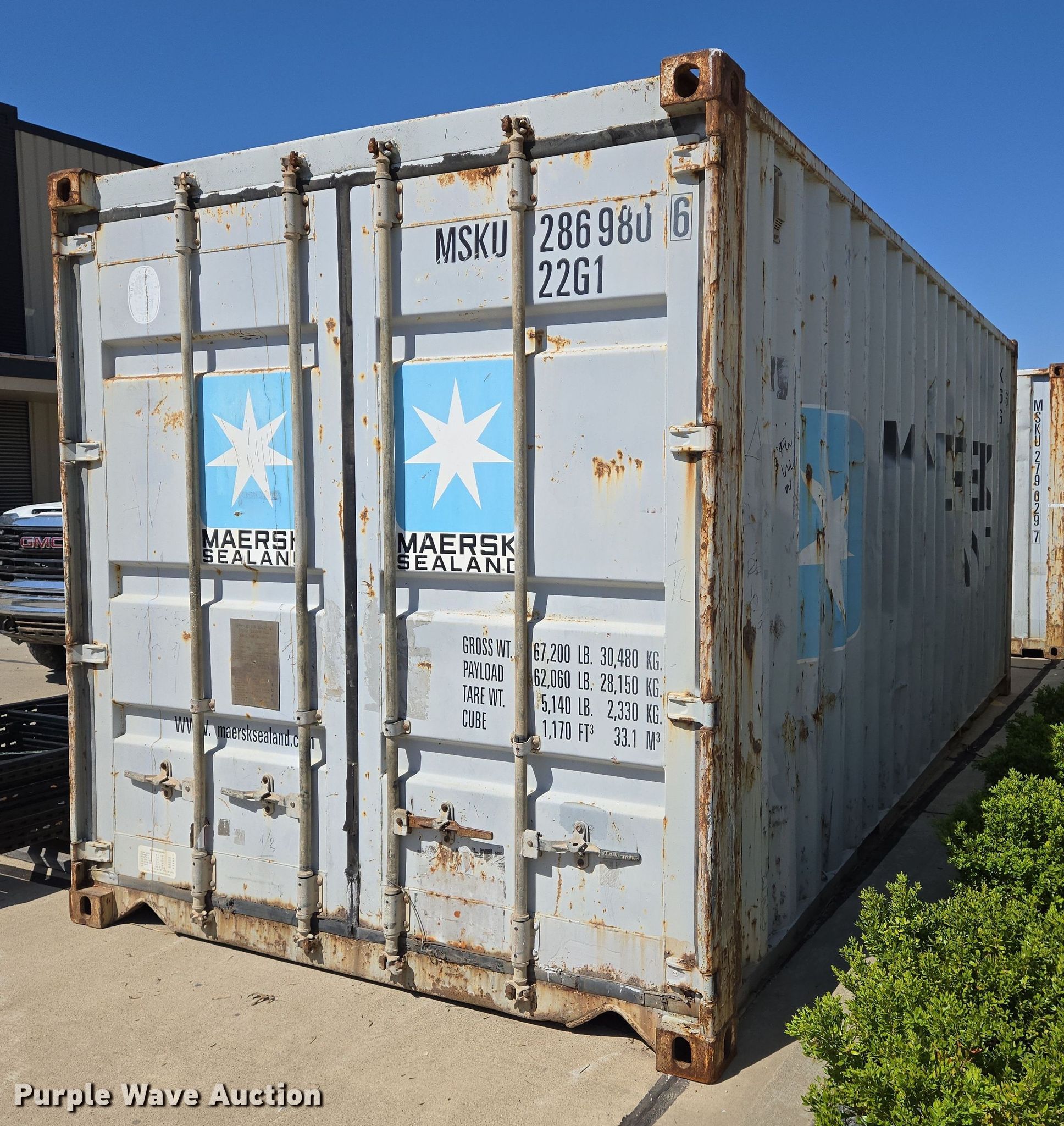Purple Wave is selling a used Storage or Shipping Container in Missouri. This item is a 2009 shipping container with the following: Serial: MSKU-2869806