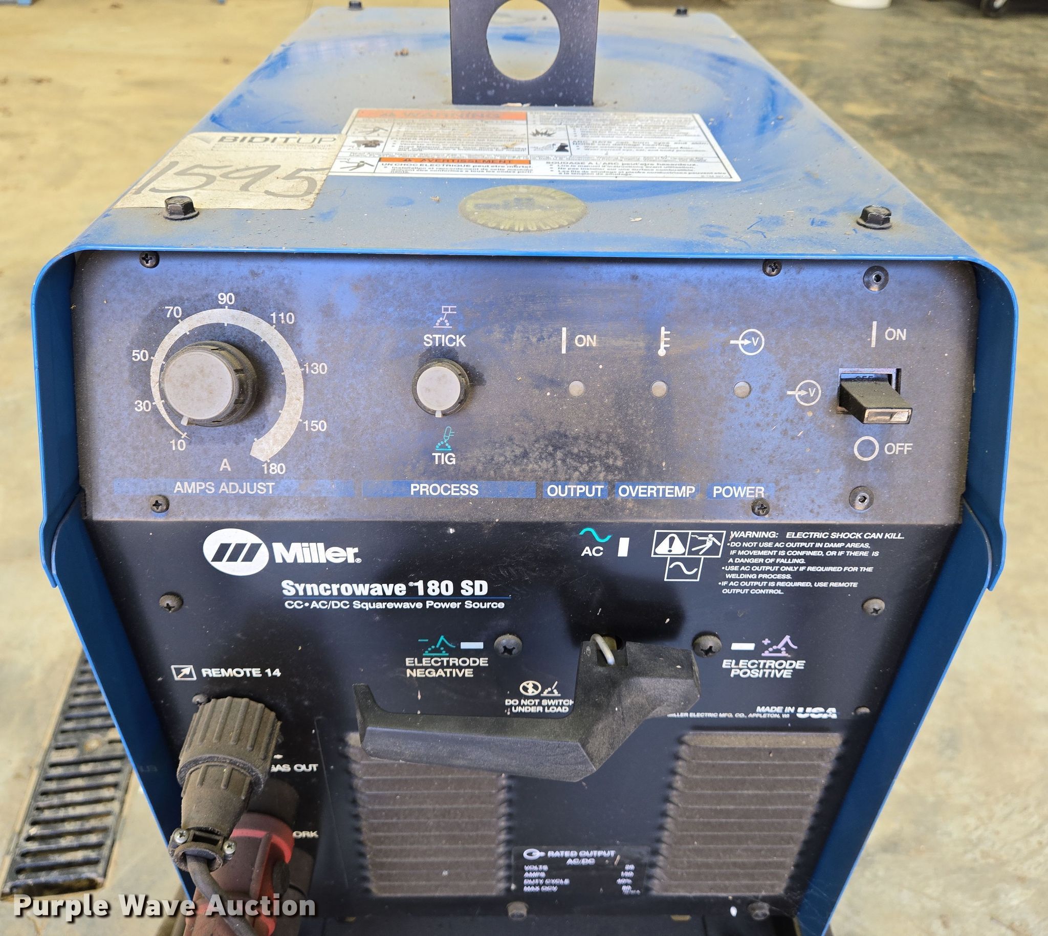 Miller Syncrowave 180SD welder. Features. Welder Capabilities: CC, DC, AC, Leads, Bottles not included. Notes Cart included. Walker Products, Inc.. Sullivan, MO 63080