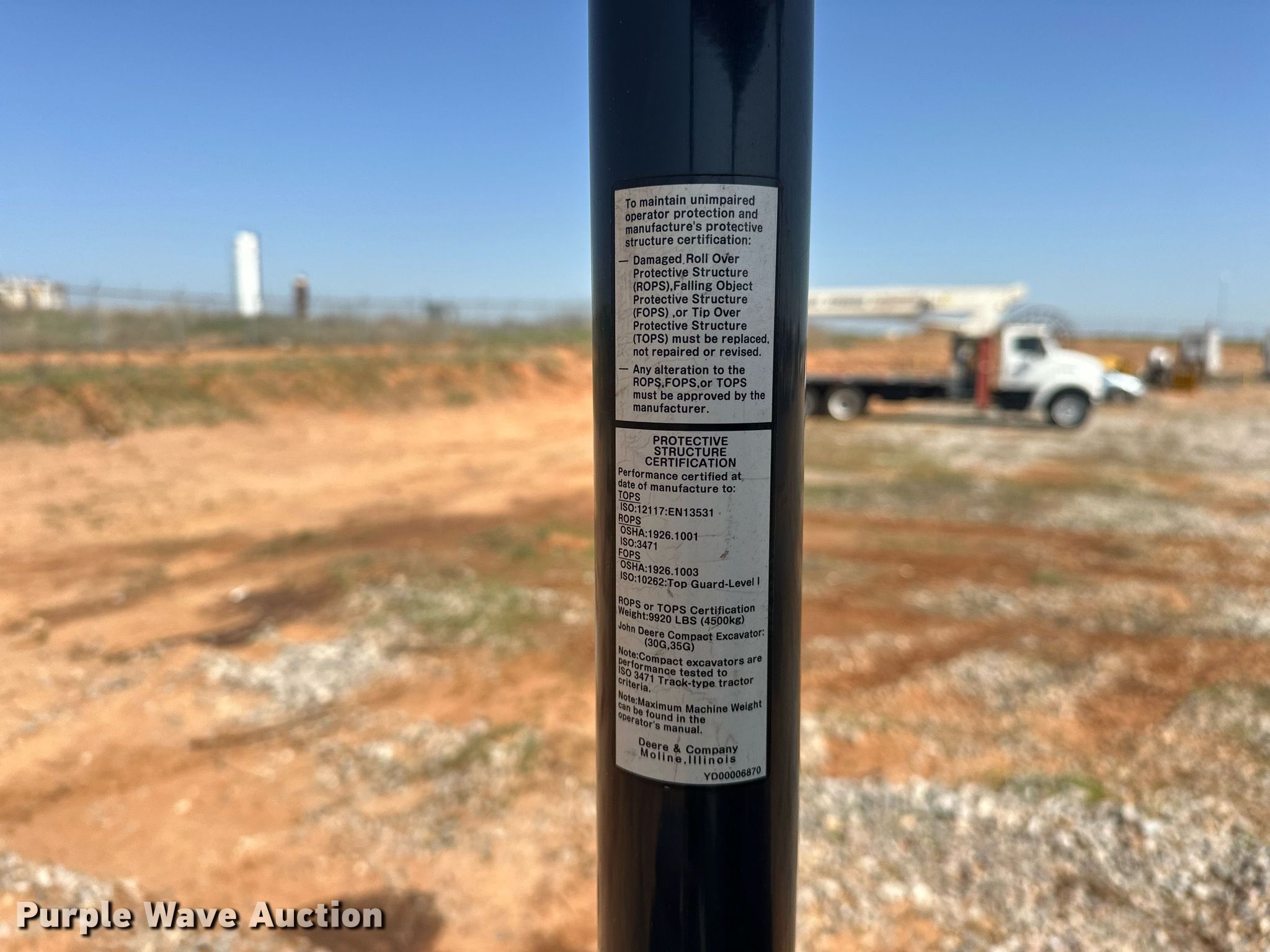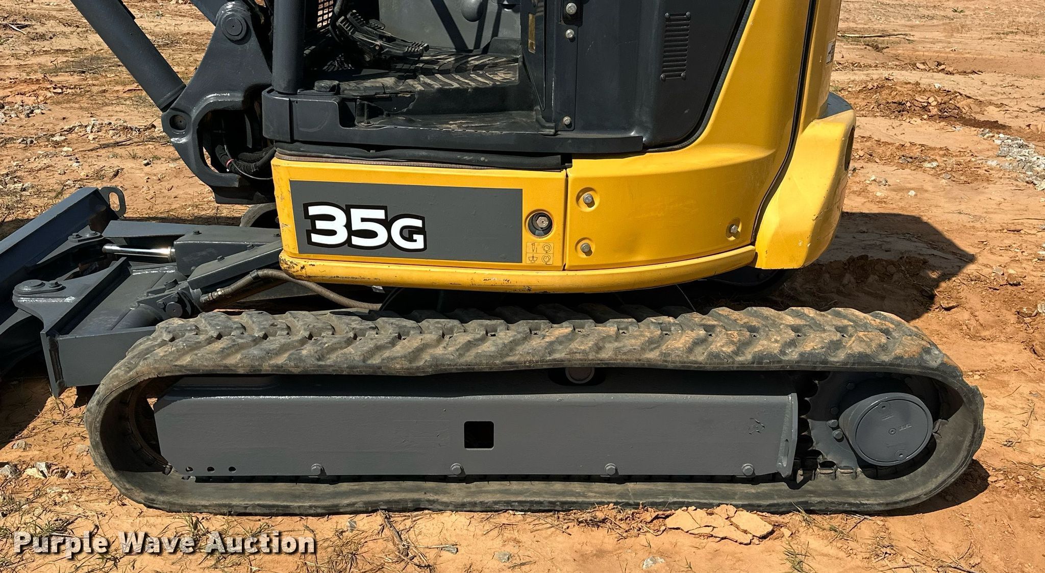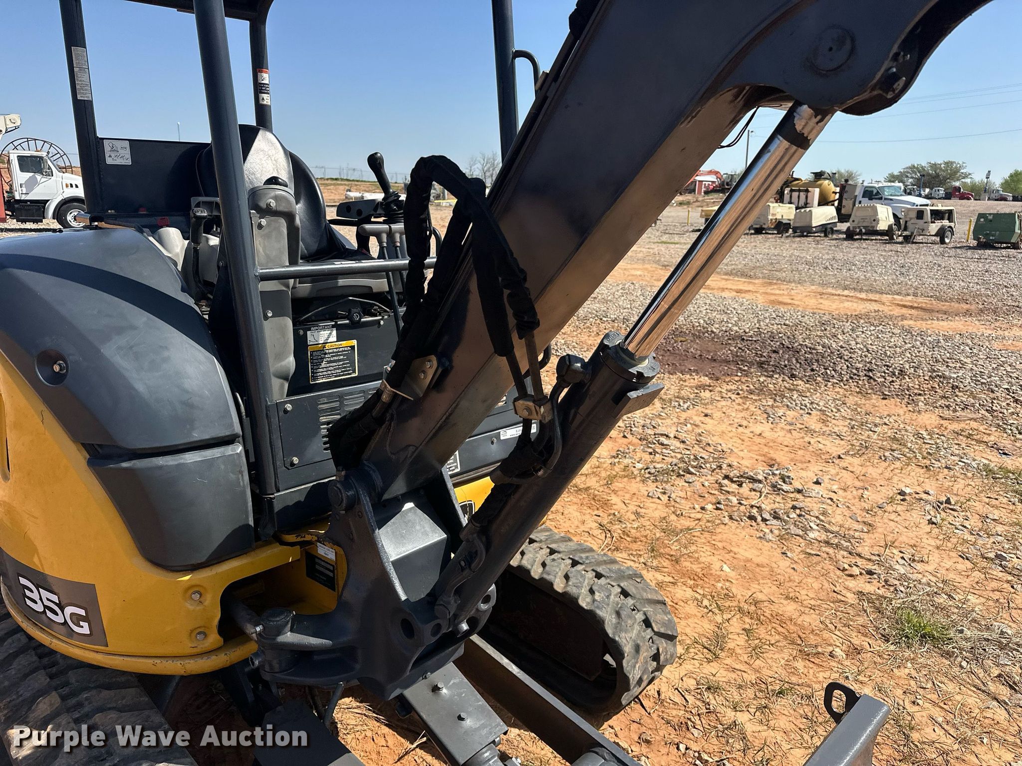 Purple Wave is selling a used Mini Excavator in Oklahoma. This item is a 2019 John Deere 35G mini excavator with the following: Hours: 7,081 on meter, Serial: 1FF035GXJKK285456