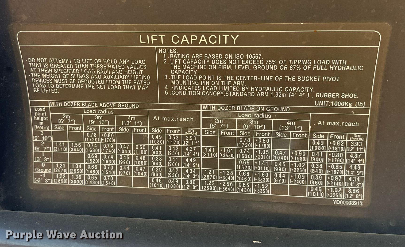 2019 John Deere 35G mini excavator. Hours: 7,081 on meter, Serial: 1FF035GXJKK285456. Engine Yanmar 3TNV88F-EPHB, Cylinders: 3, Fuel type: Diesel. Transmission Hydrostatic, Two speed travel. Operators station OROPS, Pattern changer. Features Auxiliary hydraulics Two-way, Counter weights, Backfill blade Width: 68", Boom Swing, Stick Stick length: 4' 4", Quick coupler: Mechanical, Bucket Gannon, Width: 16", Teeth: 3. Tracks Width: 12", Rubber. Norman, OK 73072