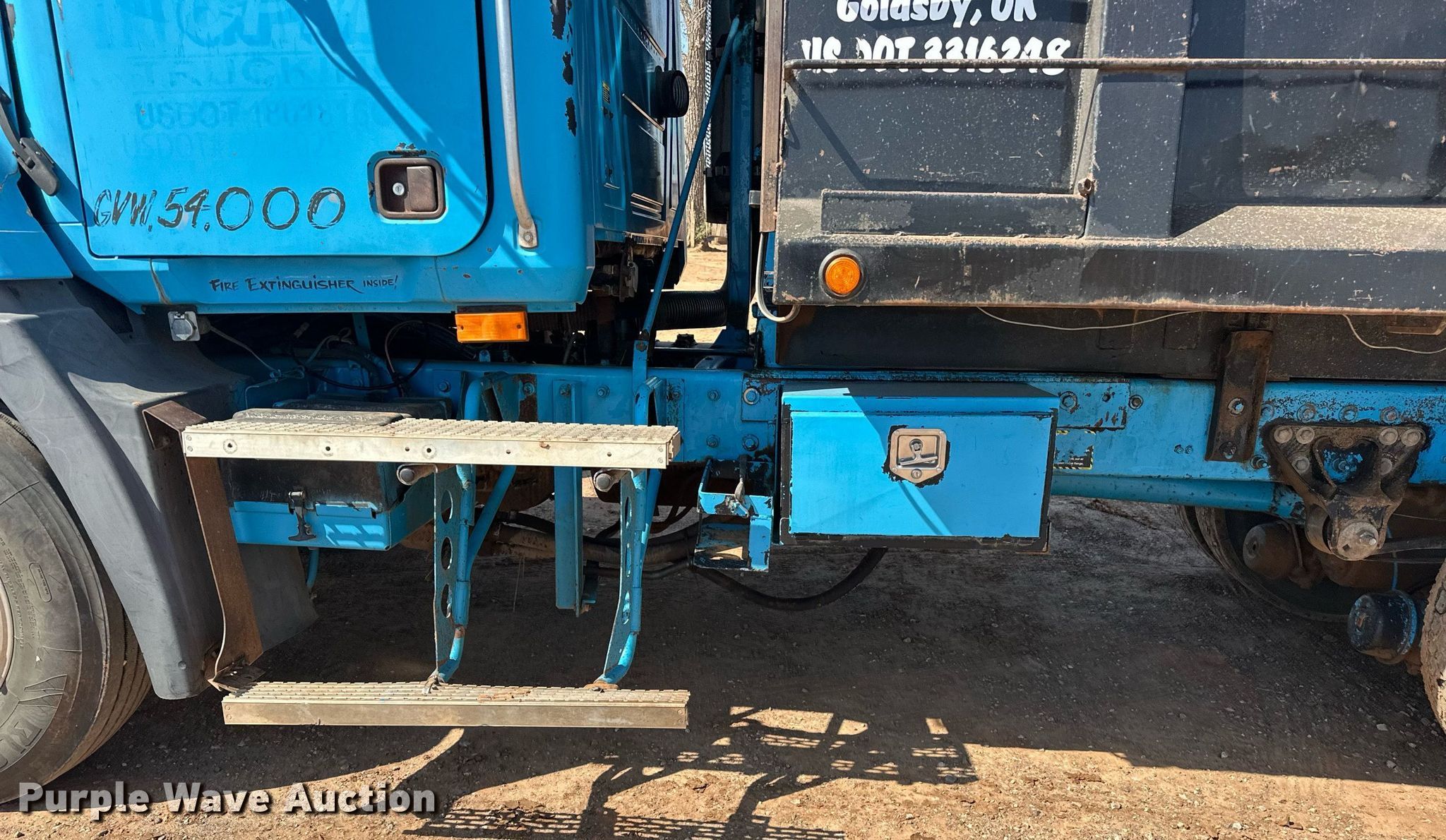 2001 Mack CH613 dump truck. Miles: 896,784 on odometer, Hours: 34,036 on meter, VIN: 1M1AA18Y81W140121. Engine Mack E7-427, Displacement: 12.0L, Serial: 0V1310, Cylinders: 6, Fuel type: Diesel, Engine brake. Transmission Eaton Fuller RTL(O), Manual, Speed: 10. Chassis Axles: Tandem, Differential lock: Inter-axle, Suspension: Air Dump valves, Brakes: Air, PTO, GVWR: 52,000 lbs FAWR: 12,000 lbs, IAWR: 20,000 lbs, RAWR: 20,000 lbs. Interior AC, Heat, Heated mirrors, Power windows, Cruise control. Features Dump bed 14' L x 96" W, Side height: 48", Bed type: Steel, Roll tarp, Ram: Single, End gate: Air operated. Tires Front: 11R24.5, Rear: 11R22.5. Notes Windshield chipped or cracked. Oklahoma title. Title distribution may be delayed up to 14 days from verification of funds. Riverside Sand And Gravel. Goldsby, OK 73093
