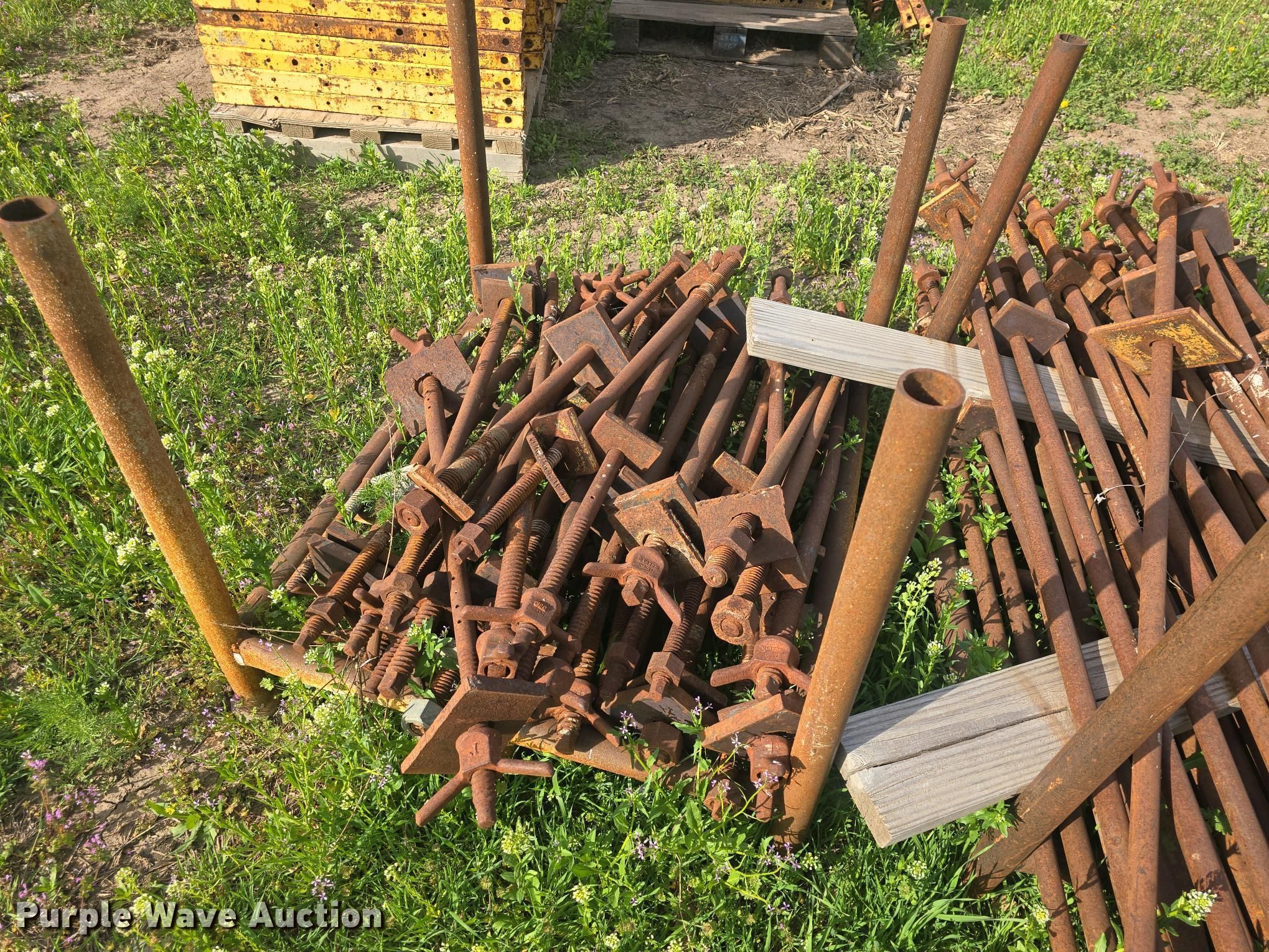 Purple Wave is selling a used Concrete Equip. or Acces. in Kansas. This item is a EFCO concrete equipment with the following: Approx. 165 beams, Lengths: 36" to 144", Approx. 110 taper tie bolts, Approx. 113 bridge brackets, Adjustable tie bearings