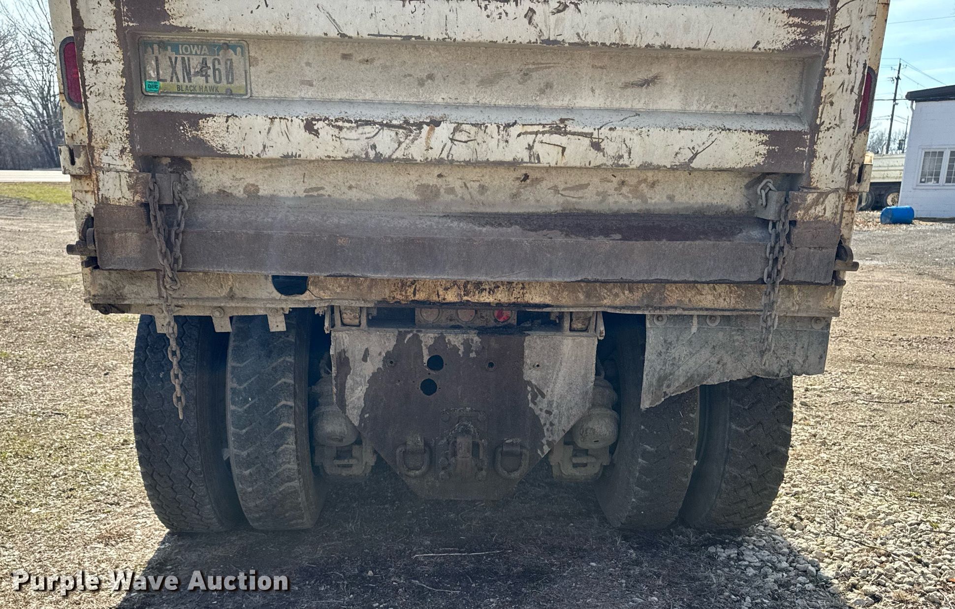 2003 Mack CV Series dump truck. Miles: 562,280 on odometer, Hours: 32,080 on meter, VIN: 1M2AG11C43M007556, Unit #: B30. Engine Mack AI-427, Displacement: 12.0L, Cylinders: 6, Fuel type: Diesel, HP: 427. Transmission Mack 8LL, Manual, Speed: 10. Chassis Axles: Tandem, Differential lock: Inter-axle, Suspension: Camelback, Brakes: Air, PTO. Interior AC, Heat, Heated mirrors, Cruise control. Features Dump bed Henderson EB16, 16' 5" L x 96" W, Side height: 48", Bed type: Steel, Ram: Single, End gate: Air operated. Tires Size: 385/65R22.5, Rear: 11R22.5. Notes Suspension mount issues, cracked , Transmission oil leak , Hydraulic leaks, Oil leak, Dash warning indicator: Check engine, ABS, Fault Code. Iowa title. Title distribution may be delayed up to 14 days from verification of funds. Benton's Sand & Gravel Inc. Cedar Falls, IA 50613