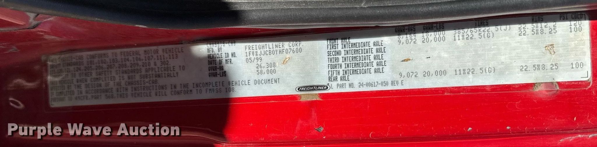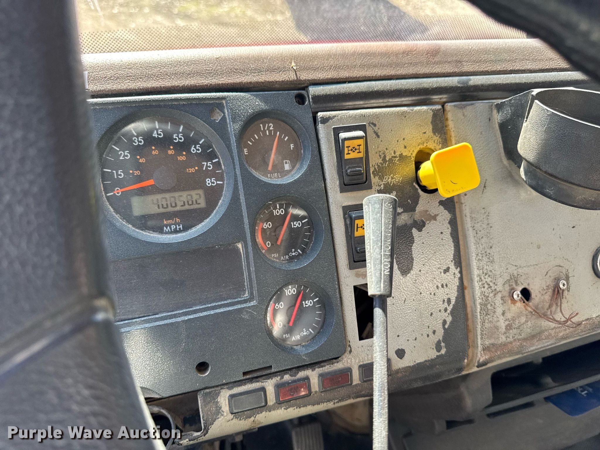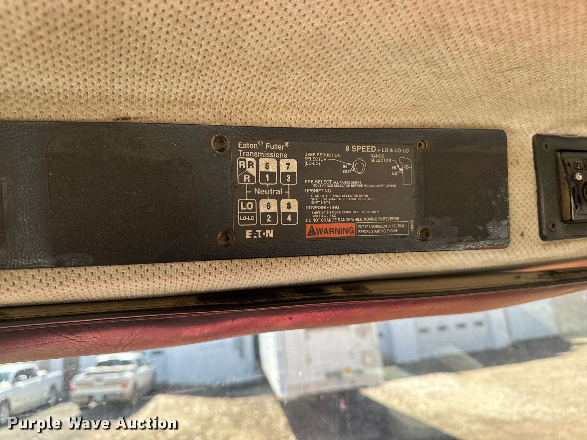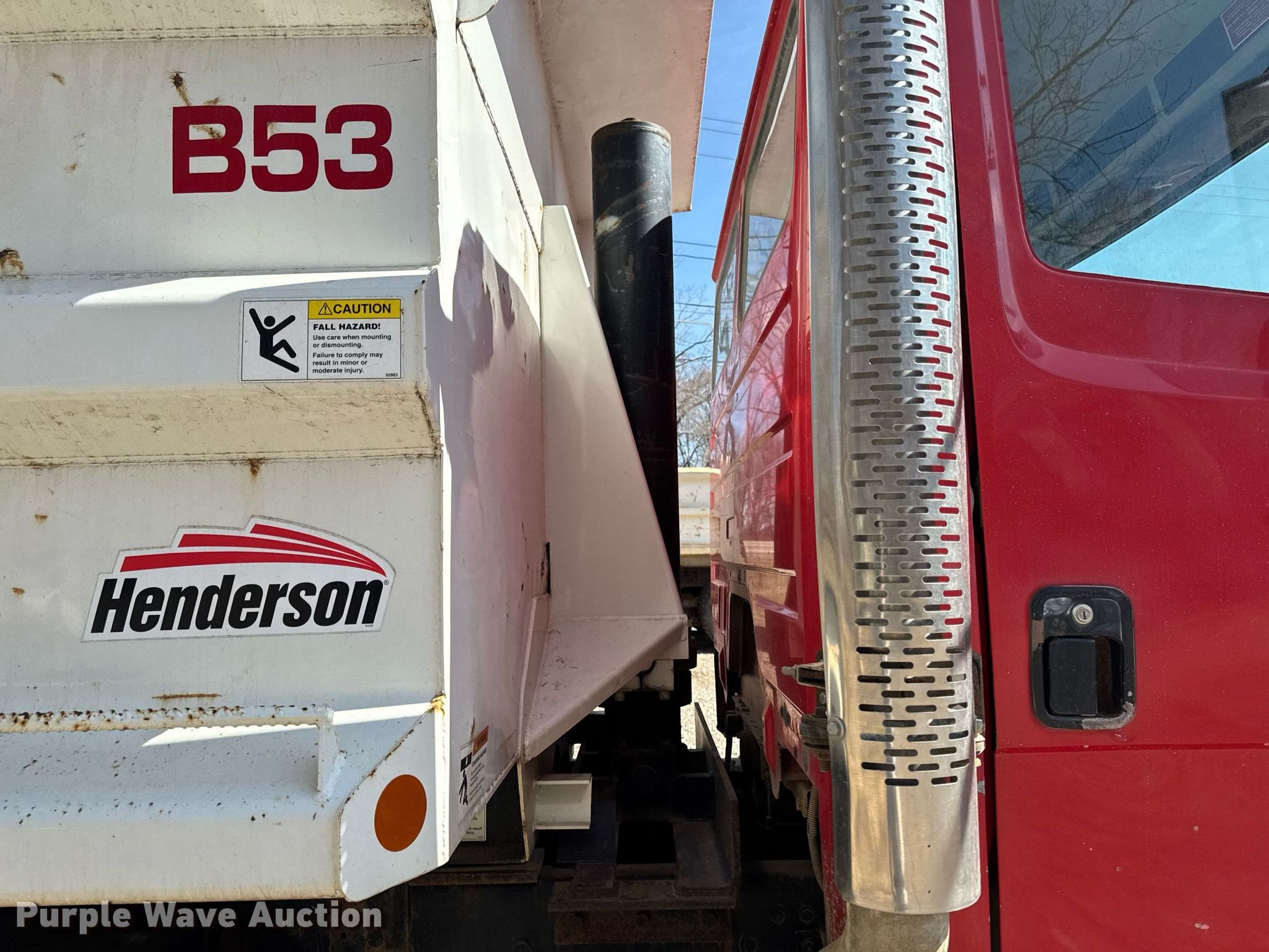 2000 Freightliner FL80 dump truck. Miles: 40,858 on odometer Actual miles unknown, Hours: 10,281 on meter, VIN: 1FVXJJCB0YHF07600, Unit #: B53. Engine Caterpillar Reman 3126, Displacement: 7.2L, Cylinders: 6, Fuel type: Diesel, HP: 300. Transmission Eaton Fuller 8LL, Manual, Speed: 10. Chassis Double frame, Axles: Tandem, Differential lock: Full, Suspension: Spring over walking beam, Brakes: Air, PTO, GVWR: 58,000 lbs FAWR: 18,000 lbs, IAWR: 20,000 lbs, RAWR: 20,000 lbs. Interior AC, Heat, Heated mirrors, Cruise control. Features Dump bed Henderson 16x44xMKE, 16' L x 96" W, Side height: 44", Bed type: Steel, Liner, Roll tarp, Ram: Single, End gate: Air operated. Tires Size: 385/65R22.5, Rear: 11R22.5. Notes Non-operational tarp, Engine oil leak, Dead battery. Iowa title. Mileage has not been verified. Exempt will be written in the odometer disclosure on the title. Title distribution may be delayed up to 14 days from verification of funds. Benton's Sand & Gravel Inc. Cedar Falls, IA 50613