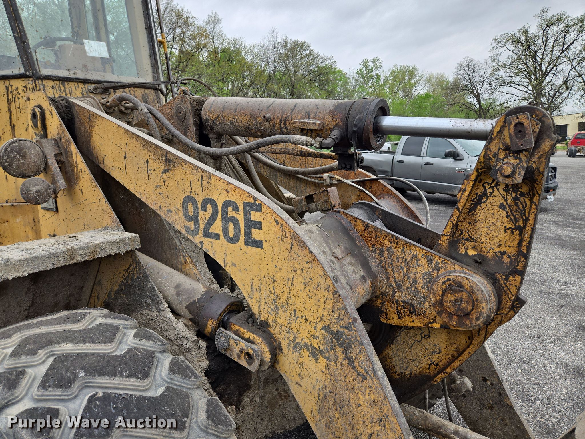 1990 Caterpillar 926E wheel loader. Hours: 3,560 on meter, Serial: 94Z03062. Engine Caterpillar 3204DI, Cylinders: 4, Fuel type: Diesel. Transmission Powershift, 4F - 4R. Operators station Enclosed cab, Heat, Bucket controls: Two-lever. Features Quick coupler: Hydraulic, Bucket Width: 105", Cutting edge: Bolt-on. Tires Size: 17.5R25. Notes Hydraulic leak, Right rear engine compartment door damaged, Unknown operating condition of heater, Glass cracked. Vance Bros Inc.. Kansas City, MO 64130