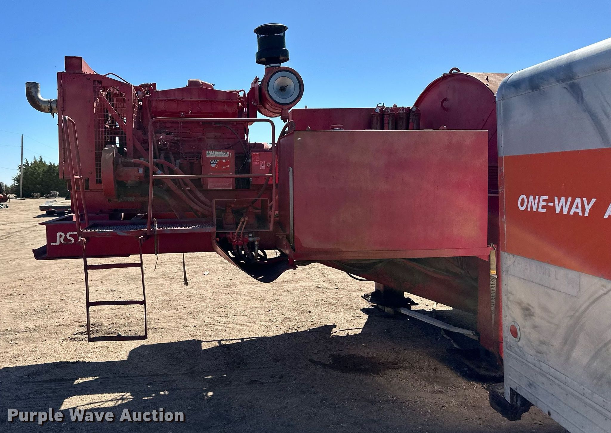 RSI shredder trailer. Dimensions: 43' L x 114" W, Hours: 5,358 on meter, Serial: 975113. Engine Cummins, Cylinders: 6, Fuel type: Diesel. Chassis Suspension: Spring, Axles: Tandem, Brakes: Air, Landing gear: Hydraulic. Tires Size: 10.00R15. This is worksite support equipment and will not come with a title. Transfer of ownership documentation will be a bill of sale. Sublette, KS 67877