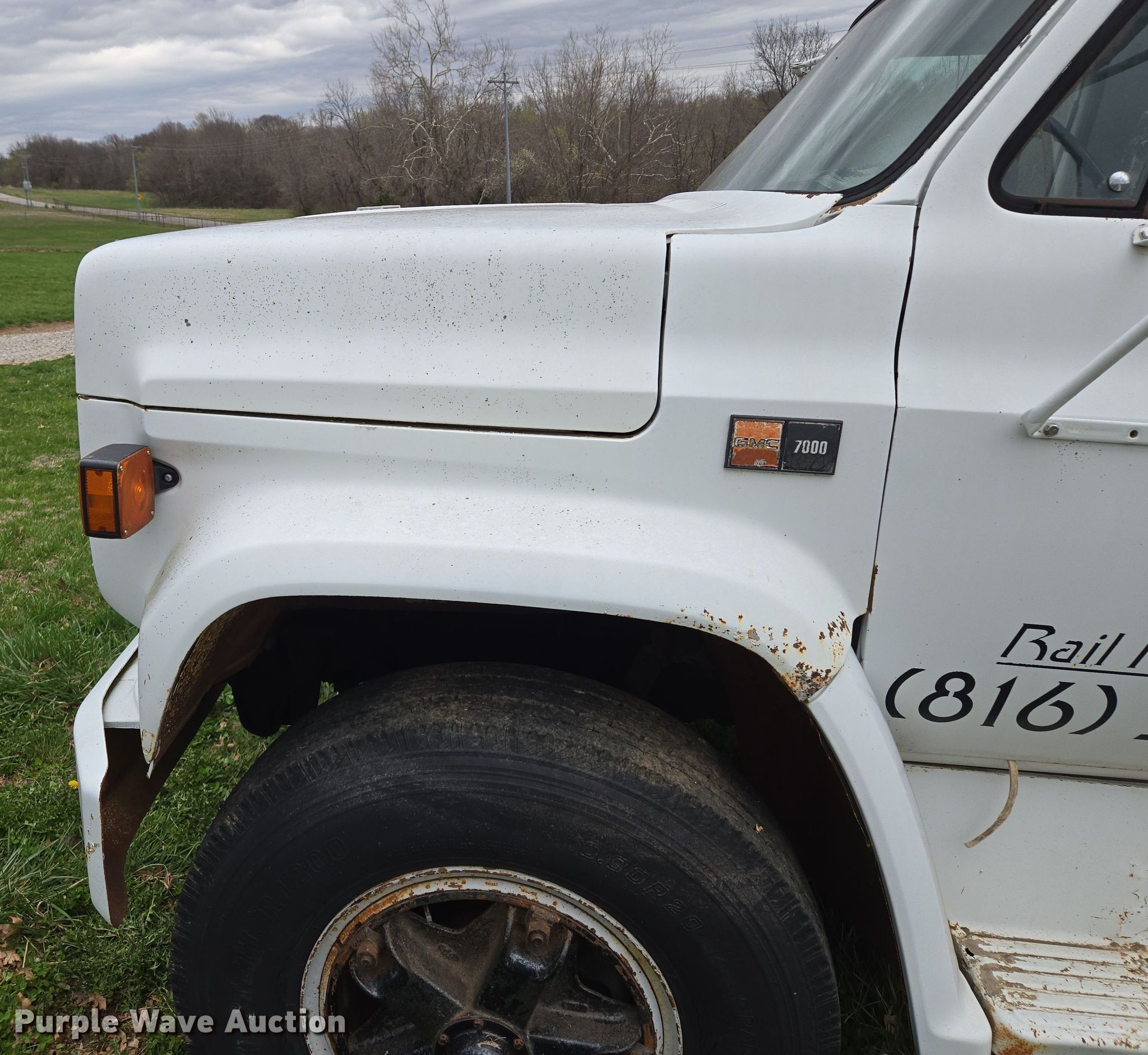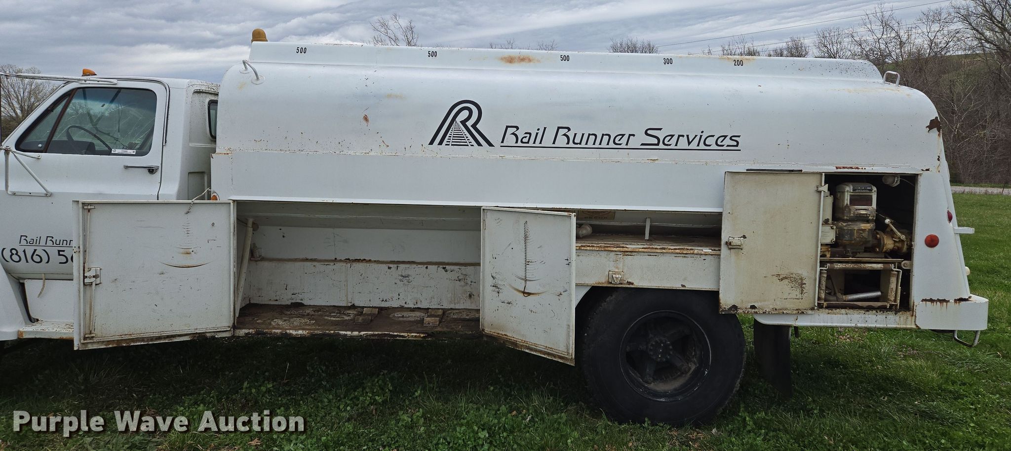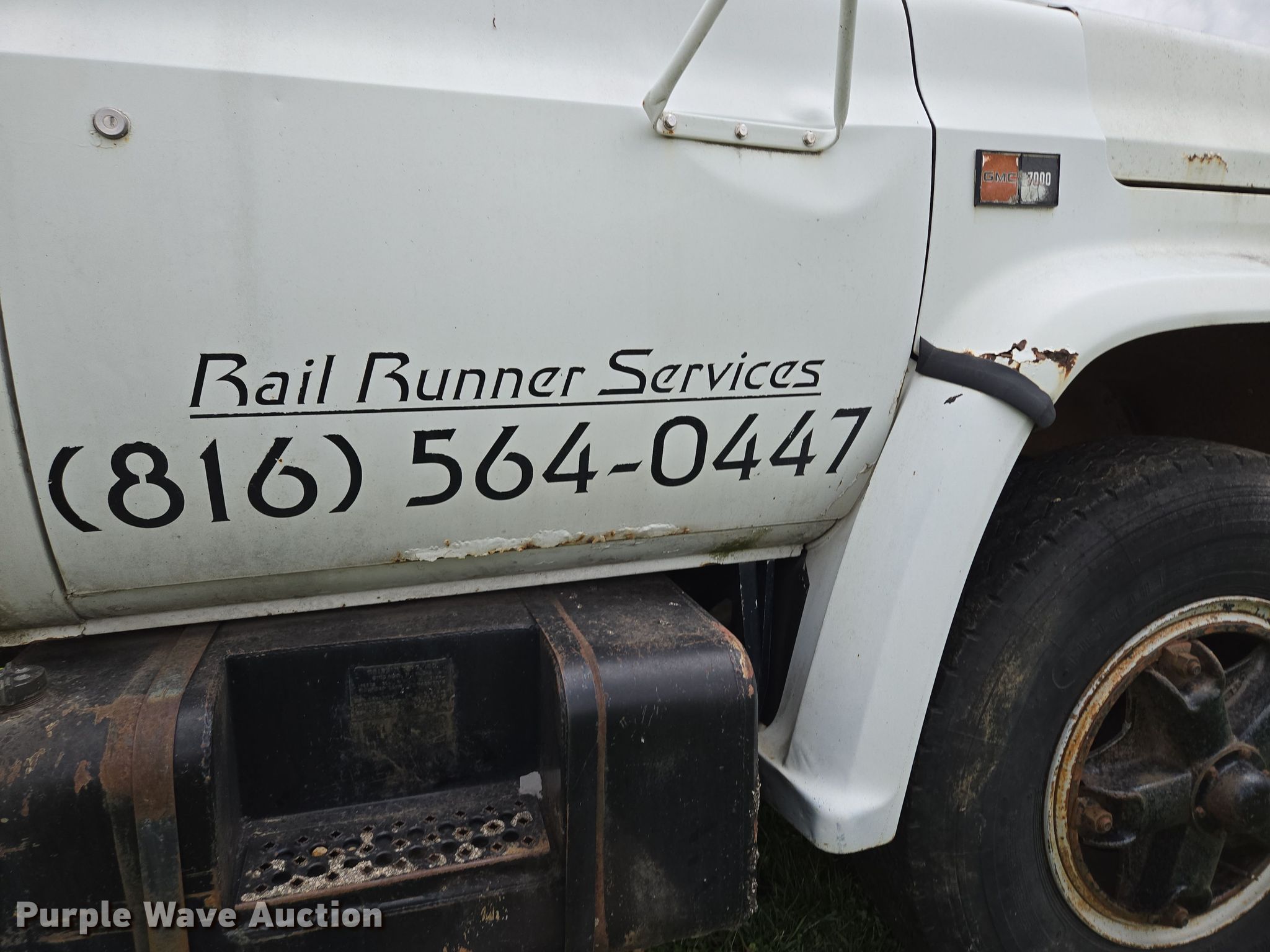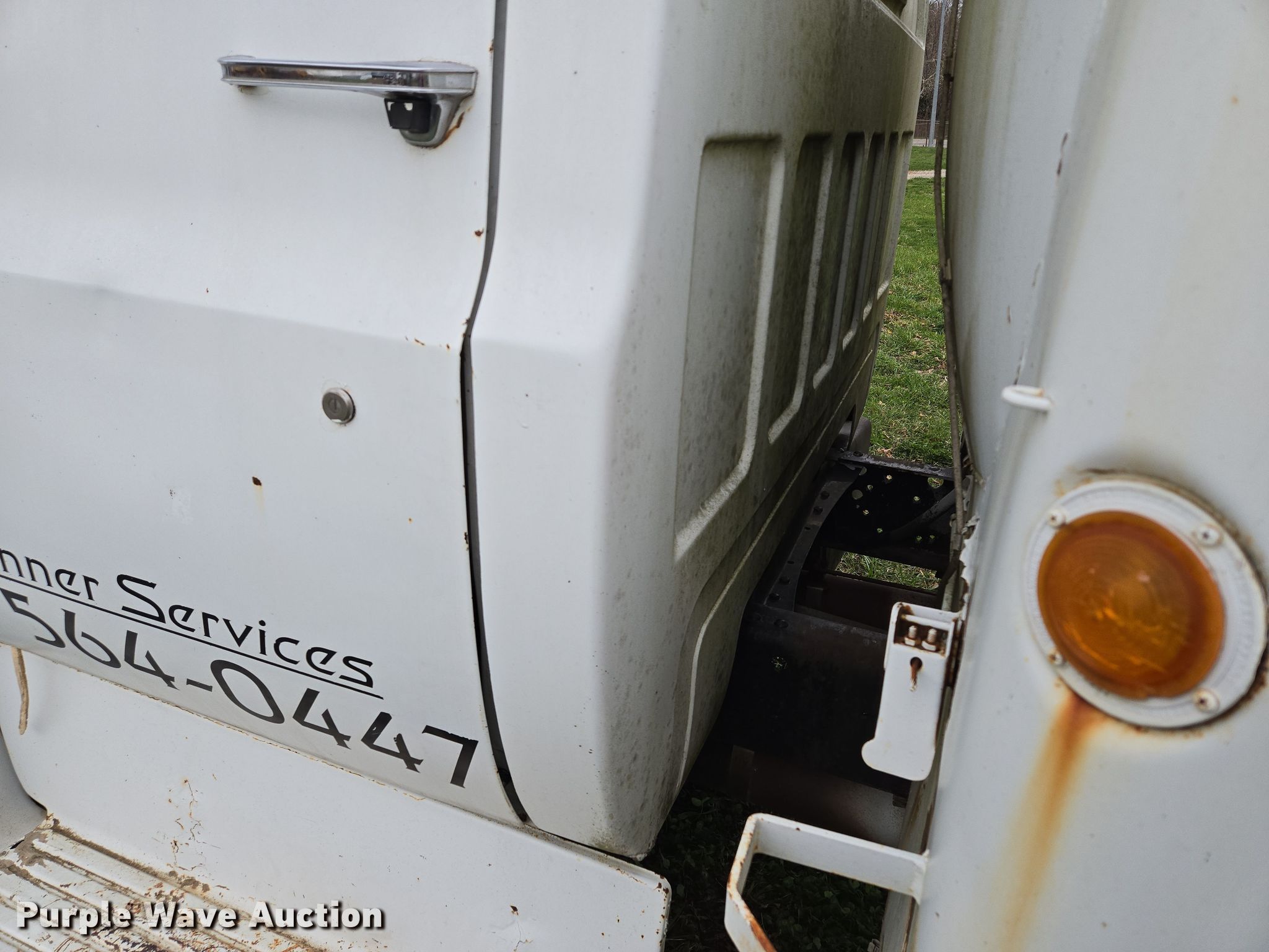 1983 GMC 7000 fuel truck. Miles: 7,362 on odometer, VIN: 1GDL7D1B0DV518985. Engine GM, Displacement: 427 C.I.D., Cylinders: 8, Fuel type: Gas. Transmission Manual, Speed: 5. Chassis Axles: Single, Suspension: Spring, Brakes: Hydraulic, GVWR: 28,000 lbs. Interior Heat. Features Bed / tank Progress Industries, Capacity: 2,000 gallons, 16' 8" L x 96" W, Compartments: 5, Hose reels: 2, Nozzles, Metered pumps: 2 Make: Red Seal.. Tires Size: 10.00R20. Notes Rust damage, Dash warning indicator: Brake, Windshield chipped or cracked. Missouri title. Title distribution may be delayed up to 14 days from verification of funds. Excelsior Springs, MO 64024