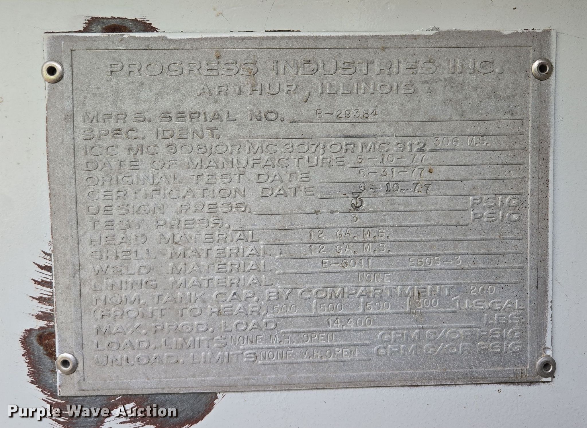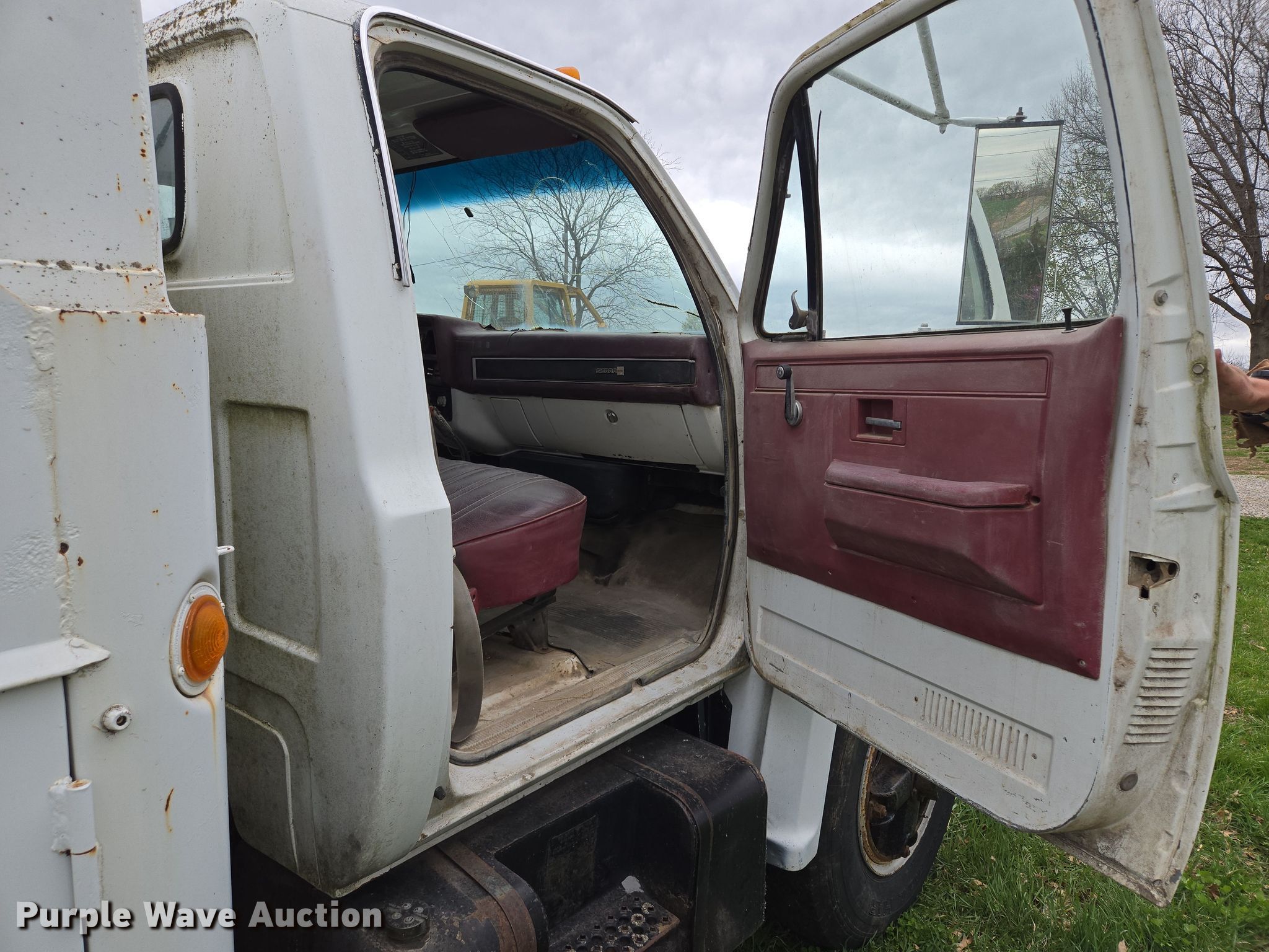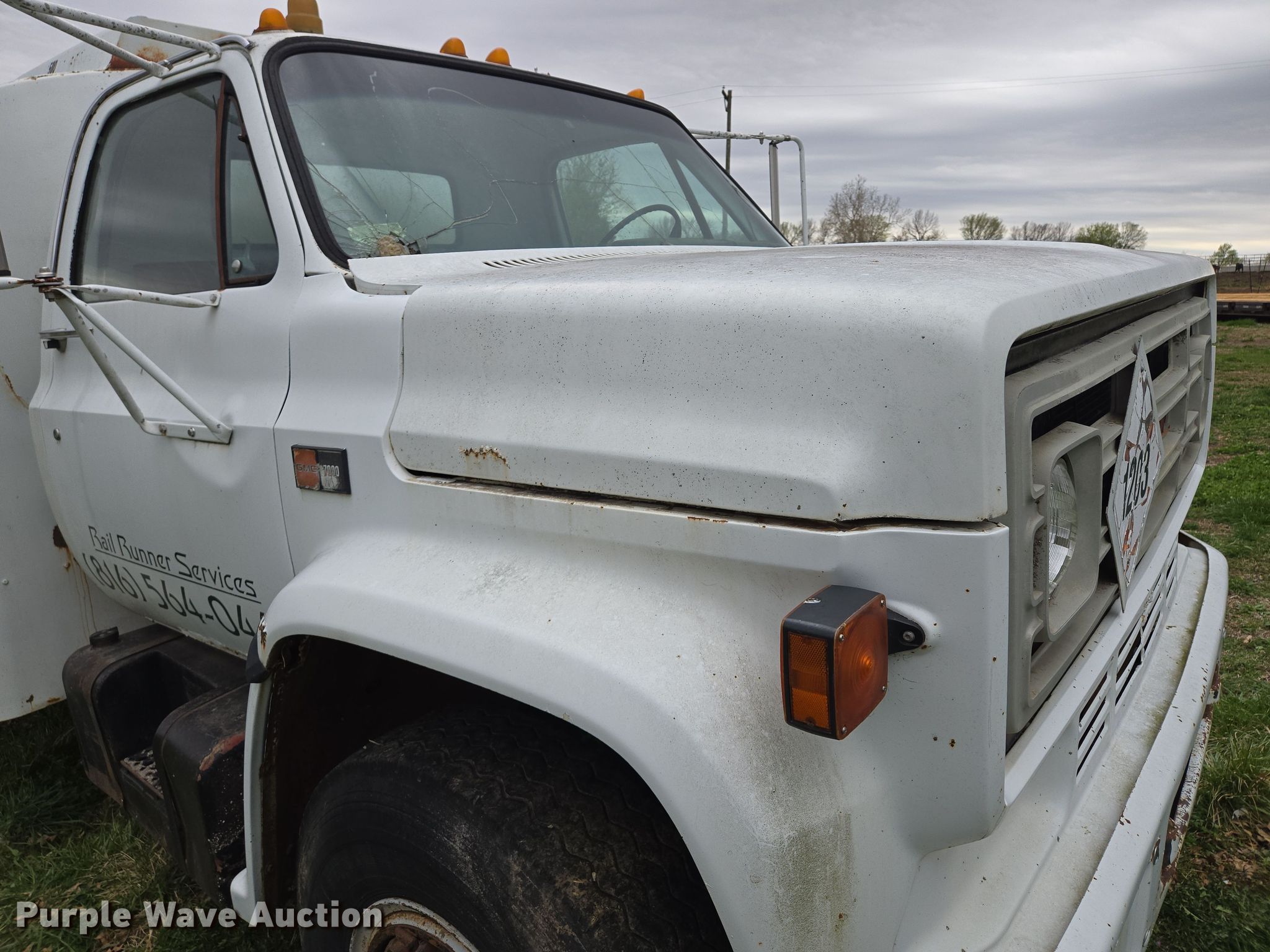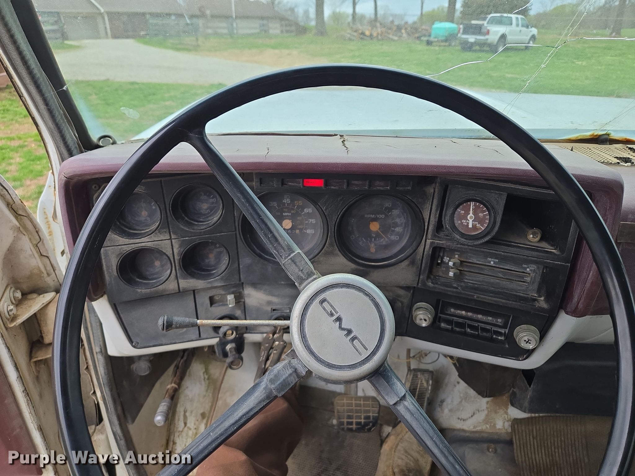 1983 GMC 7000 fuel truck. Miles: 7,362 on odometer, VIN: 1GDL7D1B0DV518985. Engine GM, Displacement: 427 C.I.D., Cylinders: 8, Fuel type: Gas. Transmission Manual, Speed: 5. Chassis Axles: Single, Suspension: Spring, Brakes: Hydraulic, GVWR: 28,000 lbs. Interior Heat. Features Bed / tank Progress Industries, Capacity: 2,000 gallons, 16' 8" L x 96" W, Compartments: 5, Hose reels: 2, Nozzles, Metered pumps: 2 Make: Red Seal.. Tires Size: 10.00R20. Notes Rust damage, Dash warning indicator: Brake, Windshield chipped or cracked. Missouri title. Title distribution may be delayed up to 14 days from verification of funds. Excelsior Springs, MO 64024