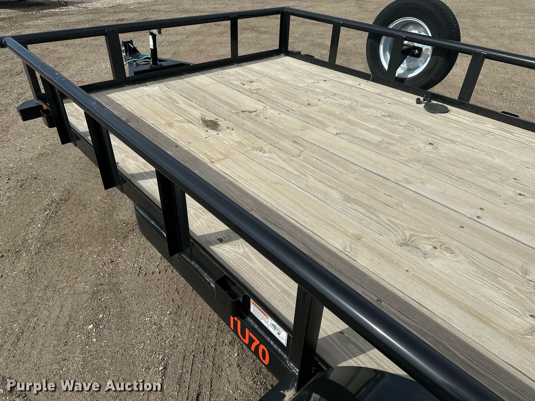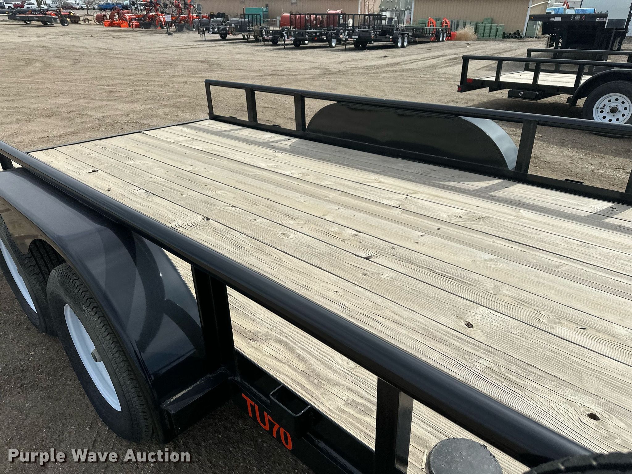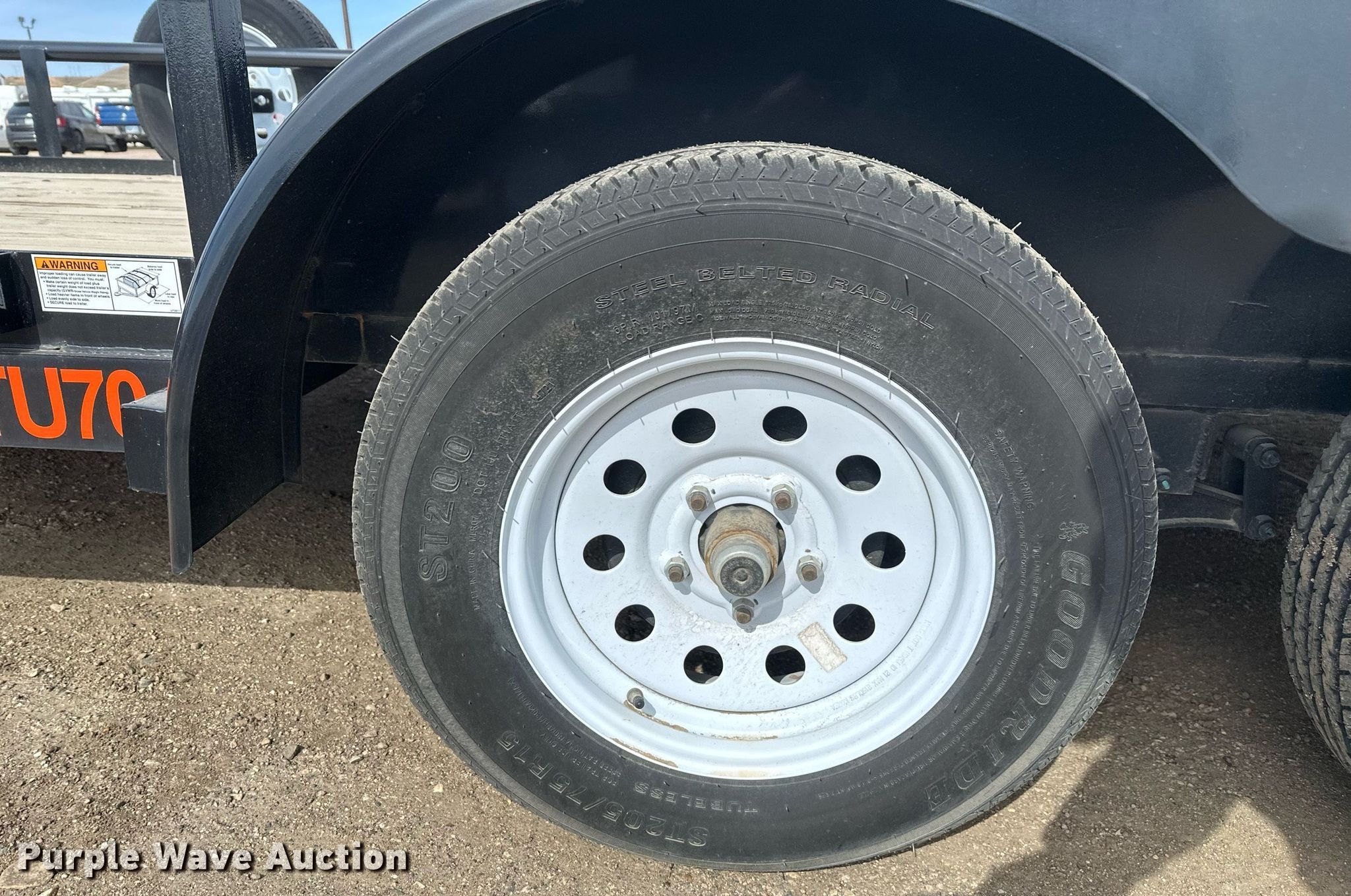 2022 Contract Manufactruing TU70 utility trailer. VIN: 49T1U2228N2197101. Dimensions Overall: 22' 3" L x 101" W, Deck: 18' 2" L x 83" W, Ramps: Manual Length: 4'. Features Deck type: Wood. Chassis Ball hitch: 2", Landing gear: Single, Suspension: Spring, Brakes: Electric, Axles: Tandem, GVWR: 7,000 lbs, GAWR: 3,500 lbs. Tires Steel wheels, Size: 205/75R15. Seller is an South Dakota licensed motor vehicle dealer. The buyer may be required to pay sales tax and/or registration fees to the dealer prior to taking possession. Transfer of ownership documentation will be a manufacturer's certificate of origin that will be assigned and distributed by the dealer. Please contact the seller for distribution questions. Floyd's Kubota. Fort Pierre, SD 57532