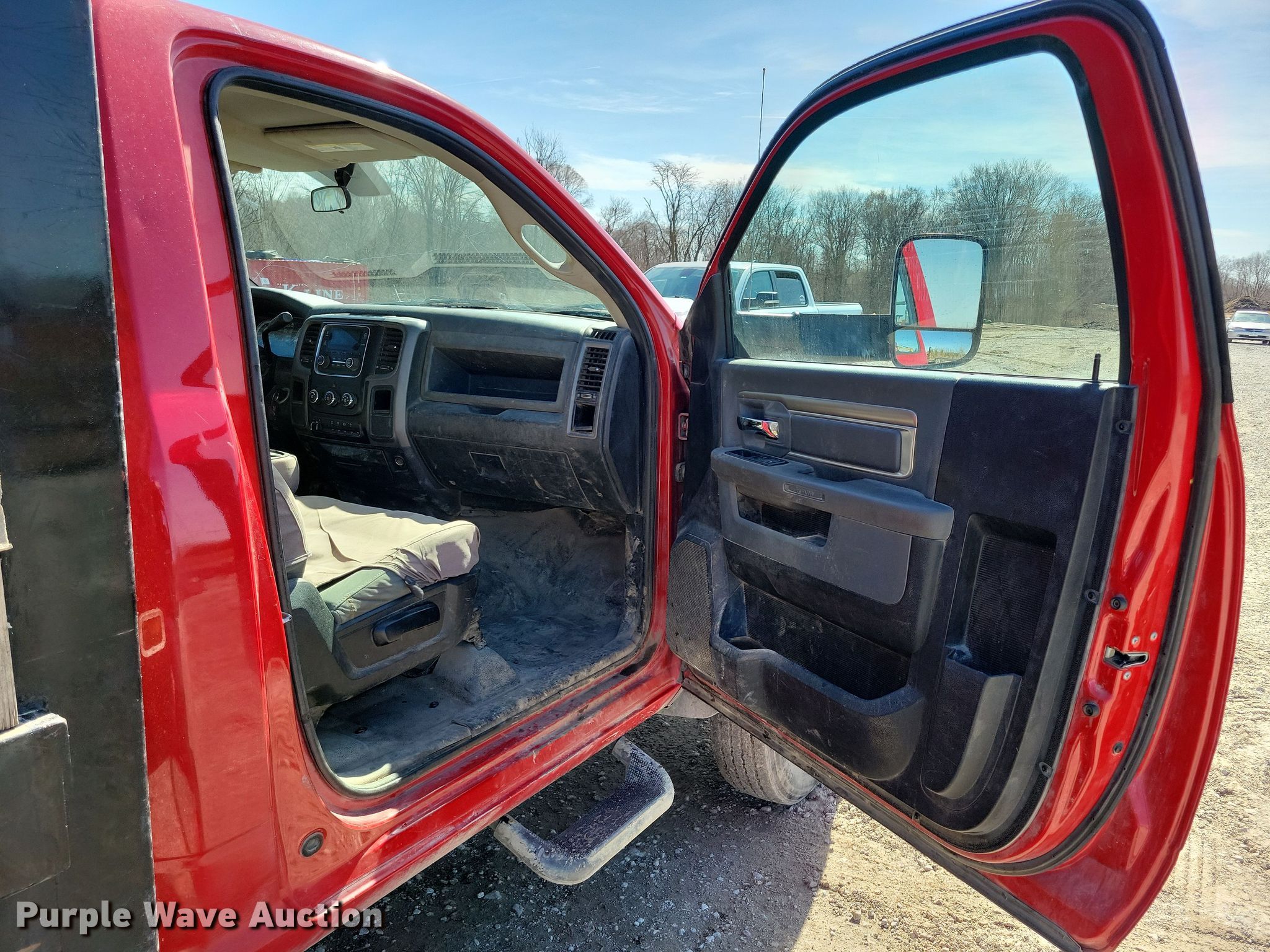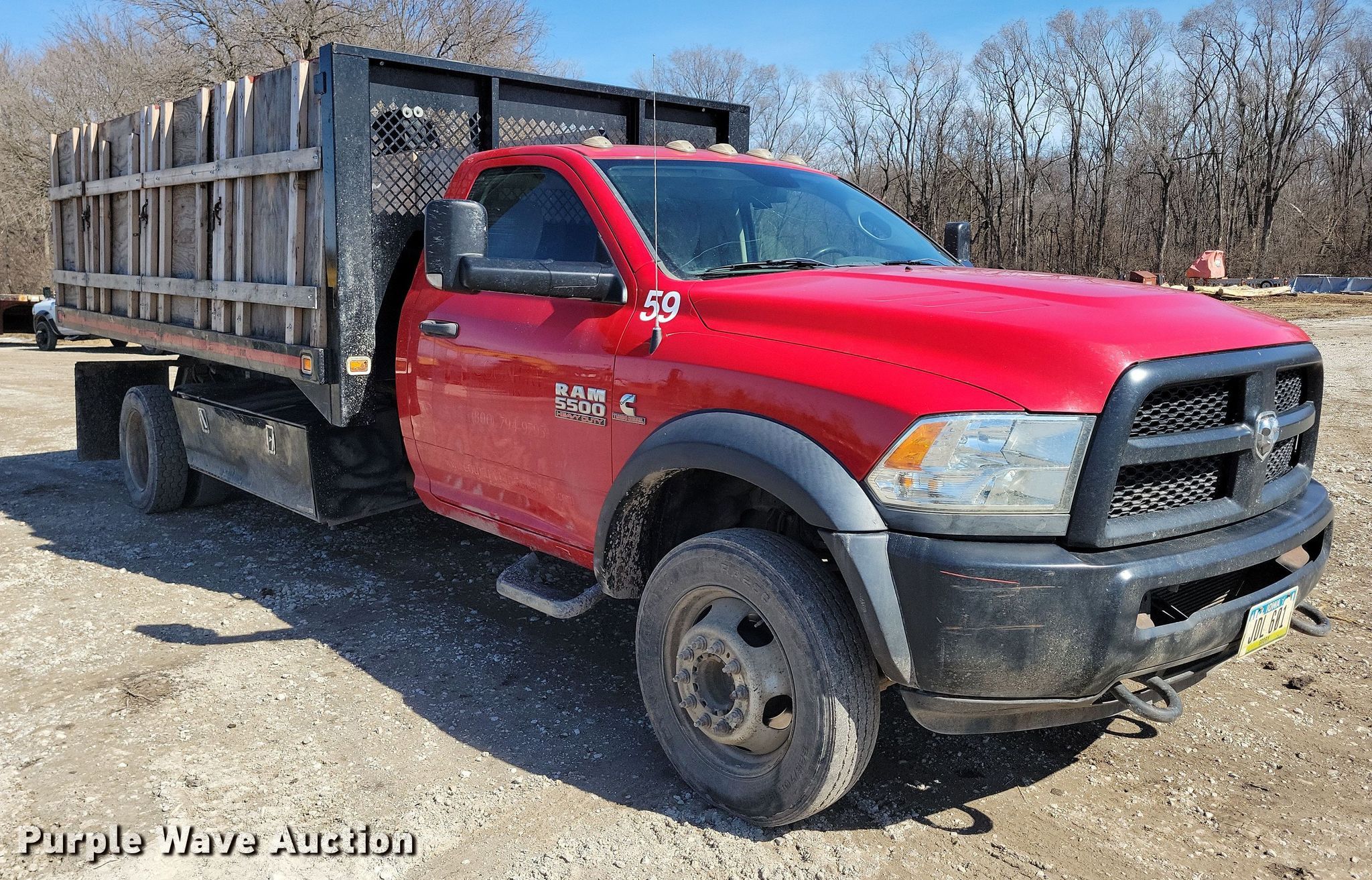 Purple Wave is selling a used Flat Bed Truck in Iowa. This item is a 2015 Dodge Ram 5500 dump flatbed truck with the following: Miles: 130,490 on odometer, Hours: 5,405 on meter, VIN: 3C7WRMDL1FG681370