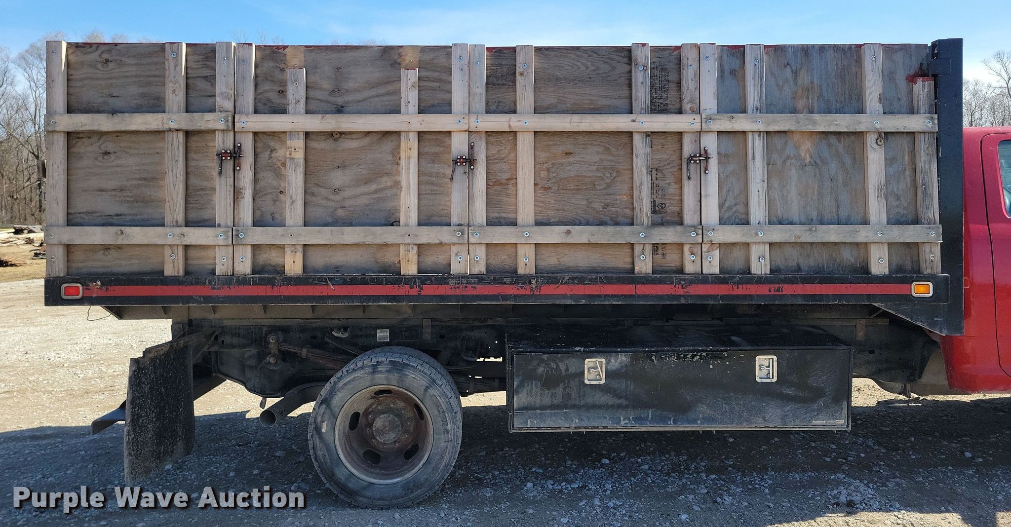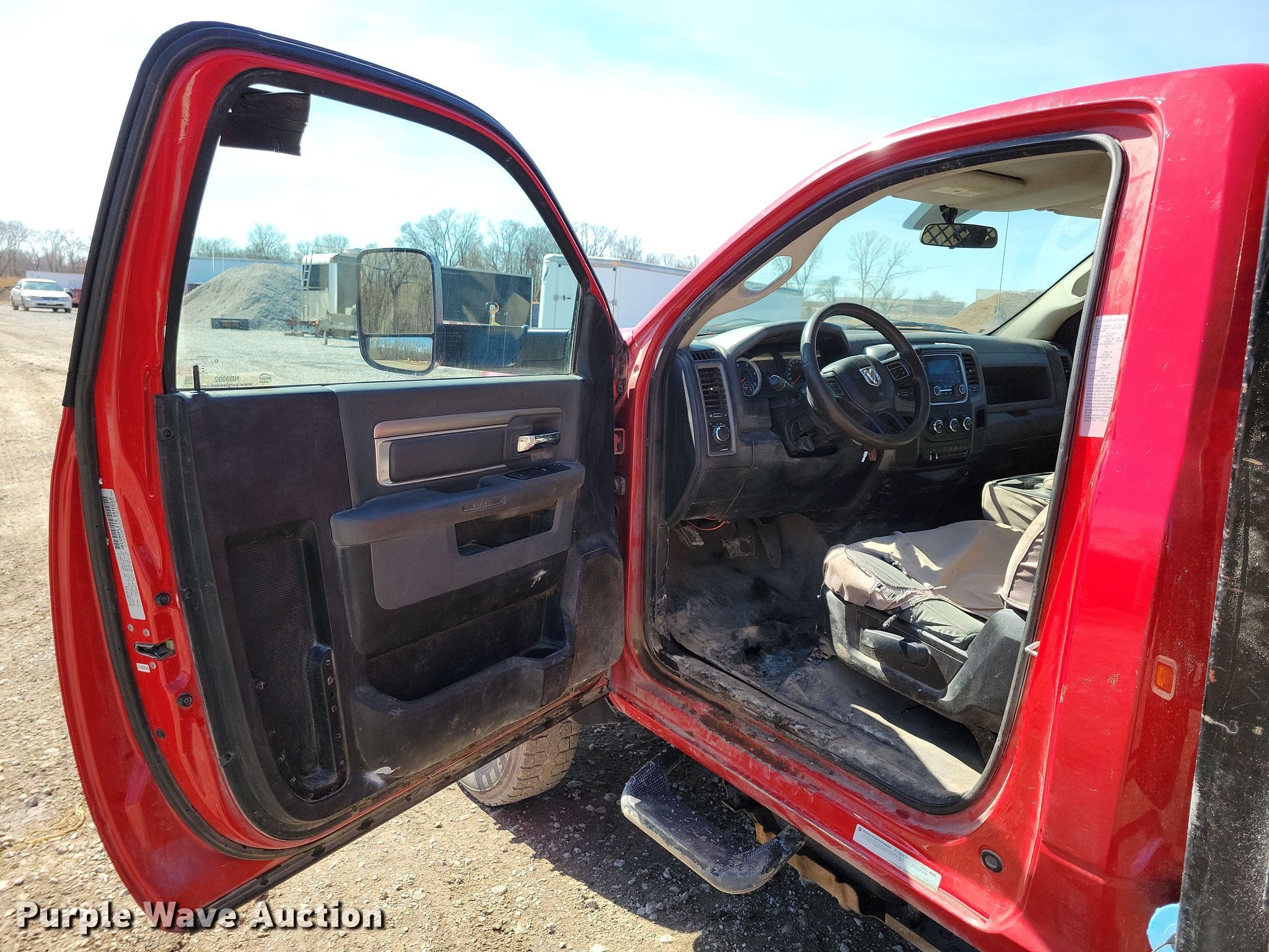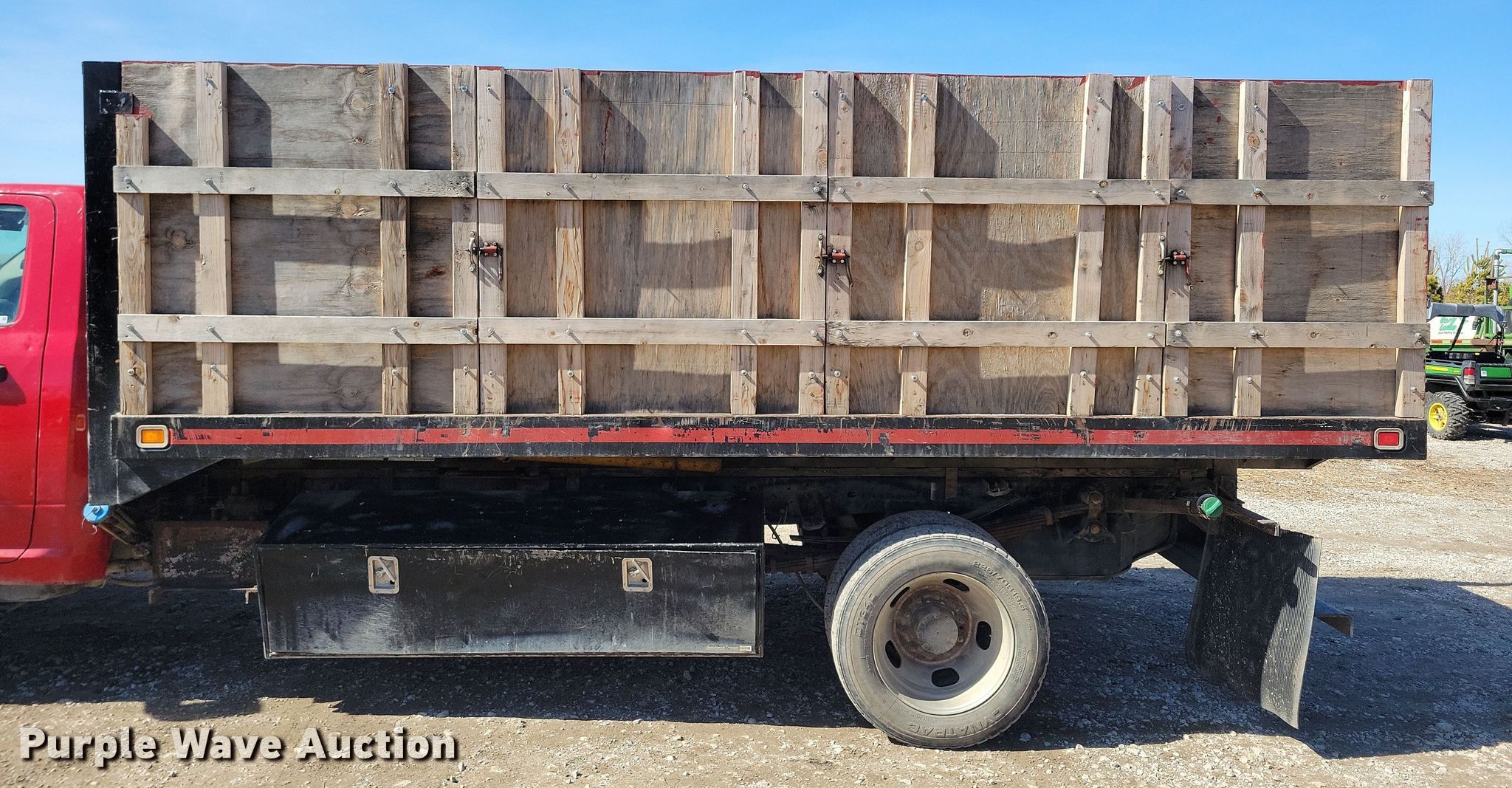 2015 Dodge Ram 5500 dump flatbed truck. Miles: 130,490 on odometer, Hours: 5,405 on meter, VIN: 3C7WRMDL1FG681370. Engine Cummins, Displacement: 6.7L, Cylinders: 6, Fuel type: Diesel. Transmission Automatic. Chassis Axles: Single, Suspension: Spring, Brakes: Hydraulic, PTO, GVWR: 19,500 lbs. Interior AC, Heat, Heated mirrors, Power windows, Power locks, Cruise control, Auxiliary controls, Brake controller. Features Dump flatbed Knapheide, 15' 3" L x 96" W, Ram: Single, Removable sides. Tires Size: 225/70R19.5. Notes Dash warning indicator: Check engine, Low coolant, Windshield chipped or cracked, PTO issues, cable needs replaced. Iowa title. Title distribution may be delayed up to 14 days from verification of funds. Country Landscapes, Inc.. Ames, IA 50010