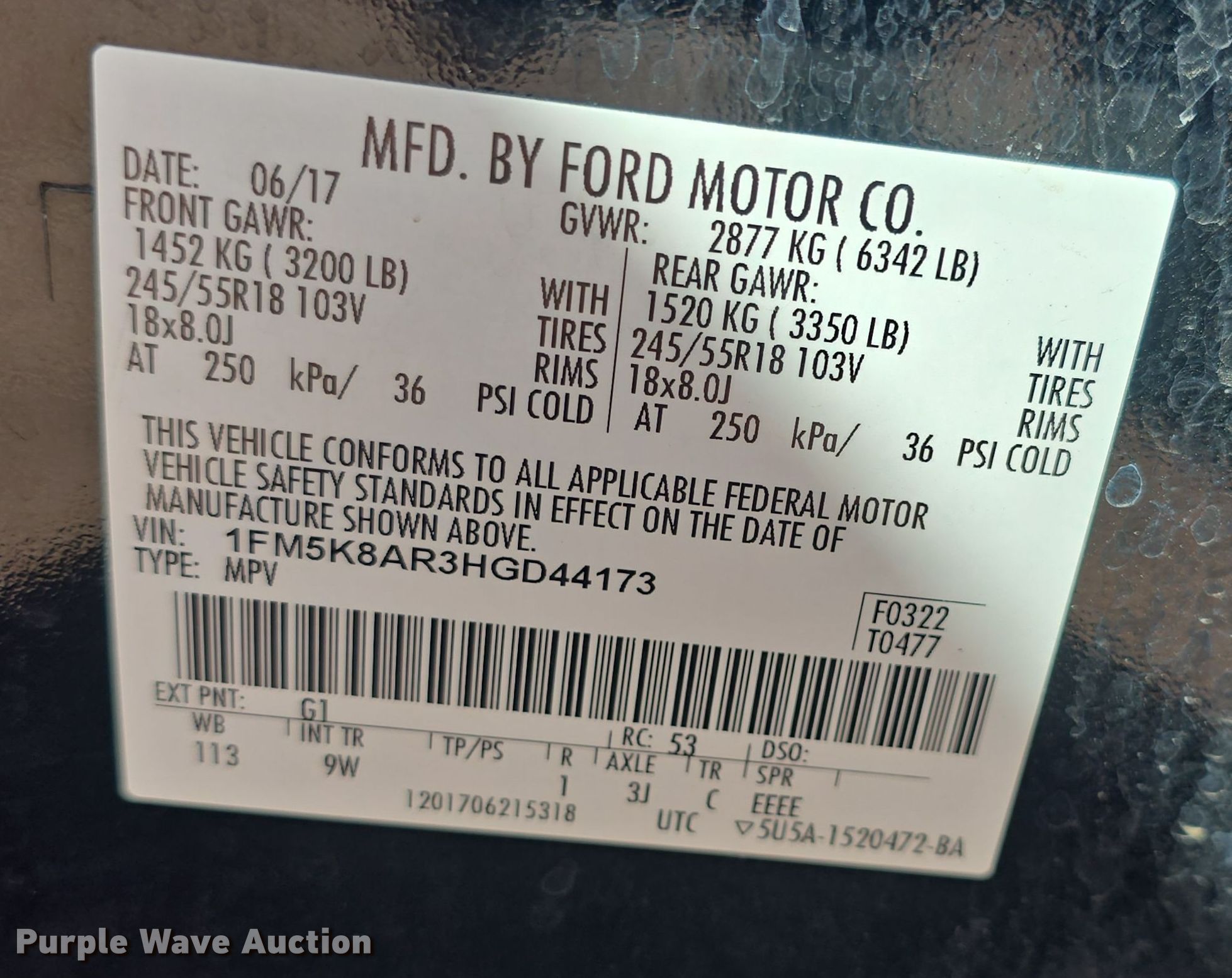 Purple Wave is selling a used Passenger Vehicle in Kansas. This item is a 2017 Ford Explorer Police Interceptor SUV with the following: Miles: 89,917 on odometer, VIN: 1FM5K8AR3HGD44173, Unit #: 02050978