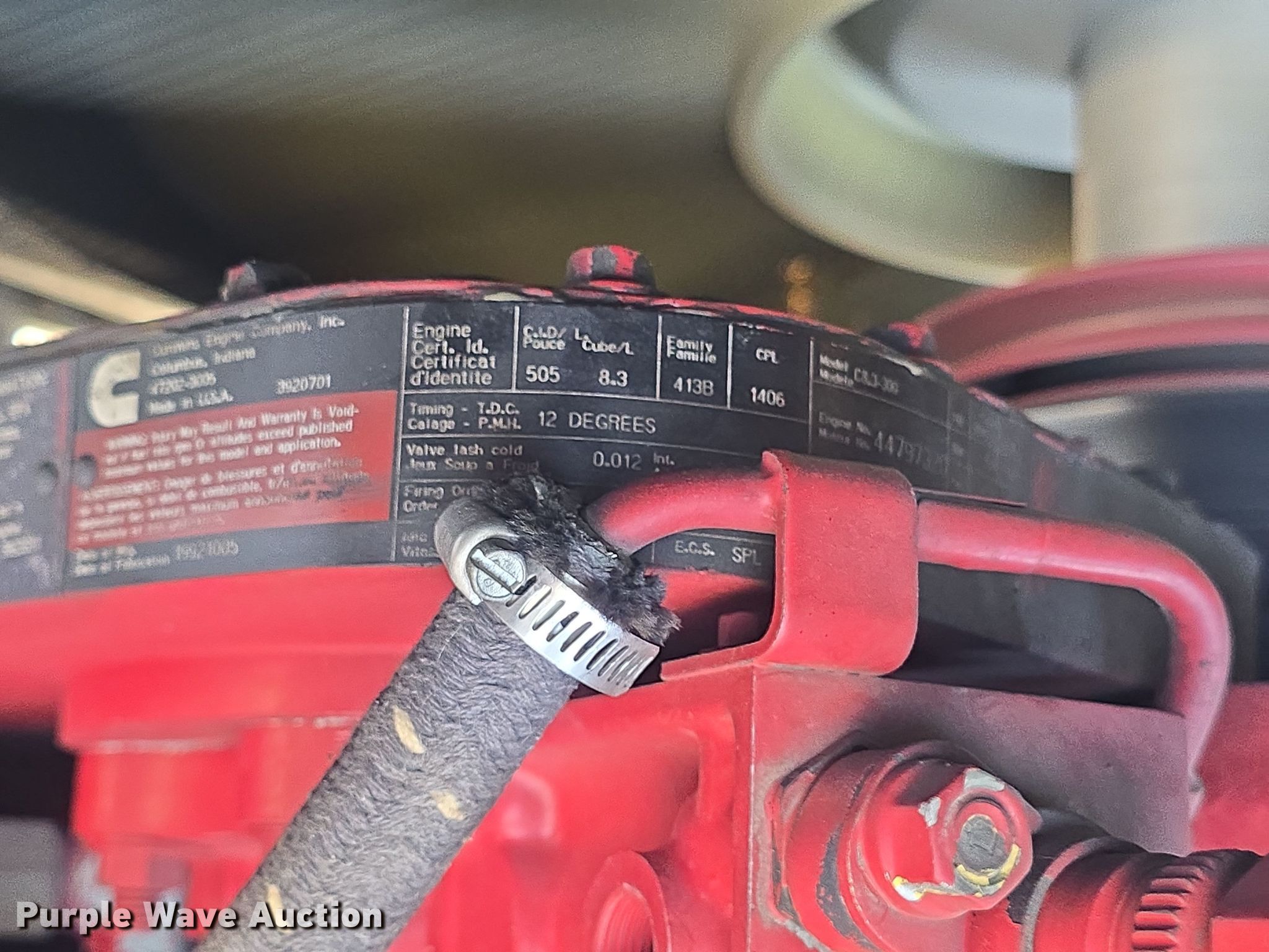 1993 HME pumper fire truck. Miles: 3,786 on odometer Actual miles unknown, Hours: 3,197 on meter, VIN: 44KFT428XPWZ17640. Engine Cummins 6CTA8.3, Cylinders: 6, Fuel type: Diesel, HP: 300. Transmission Allison, Automatic. Chassis Axles: Single, Suspension: Spring, Brakes: Air, Wheelbase: 174". Interior Heat. Features Fire truck body Tank Capacity: 1,250 gallons, Booster tank Capacity: 750 gallons, Pump 1,251 gpm, PA/ siren controls. Tires Size: 315/80R22.5, Brand: Toyo. Notes Odometer replaced, Dead battery. Kansas title. Mileage has not been verified. Exempt will be written in the odometer disclosure on the title. Title distribution may be delayed up to 14 days from verification of funds. City Of Atchison. Atchison, KS 66002
