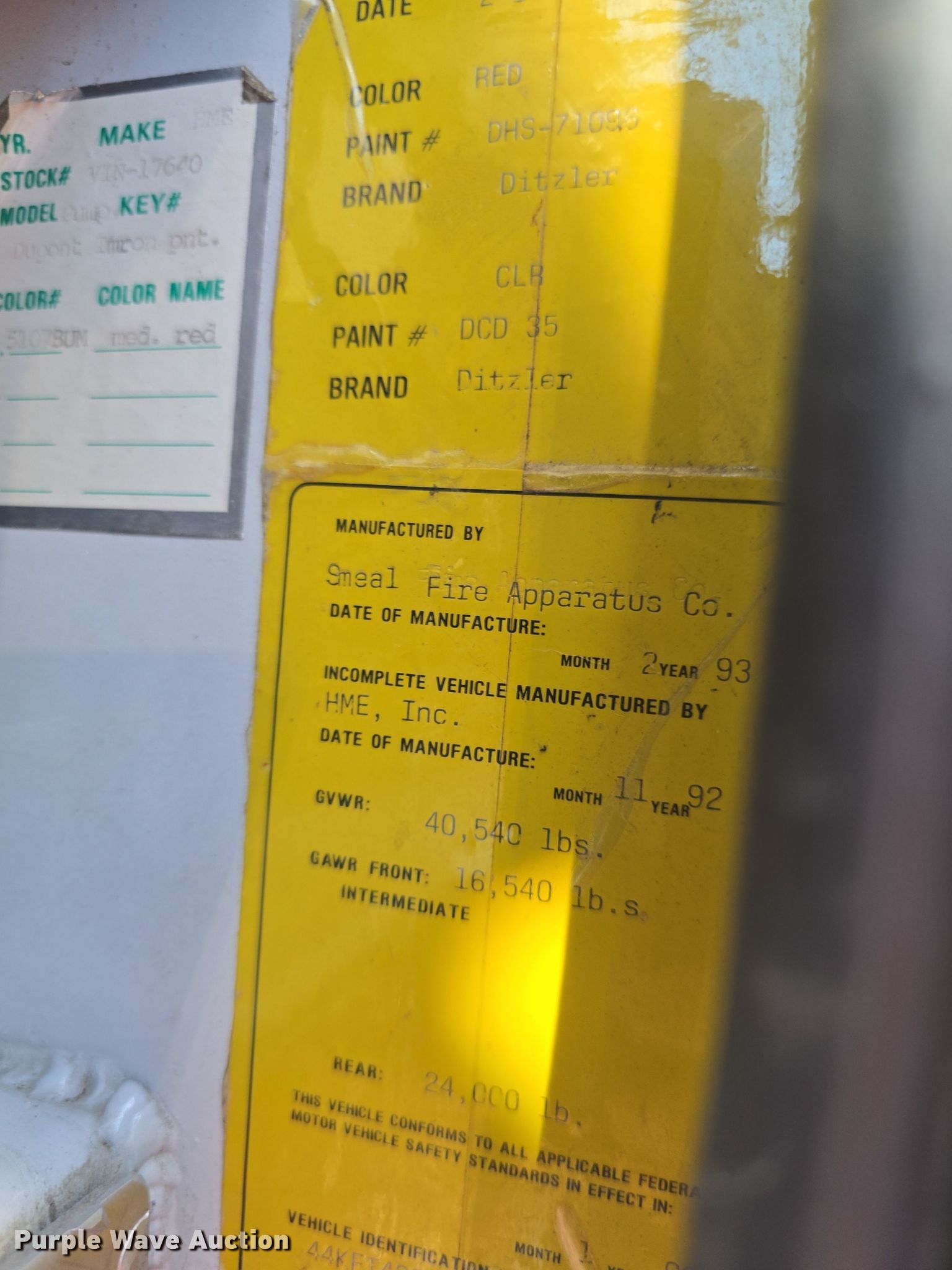 Purple Wave is selling a used Fire Truck or Emergency Vehicle in Kansas. This item is a 1993 HME pumper fire truck with the following: Miles: 3,786 on odometer, Actual miles unknown, Hours: 3,197 on meter, VIN: 44KFT428XPWZ17640