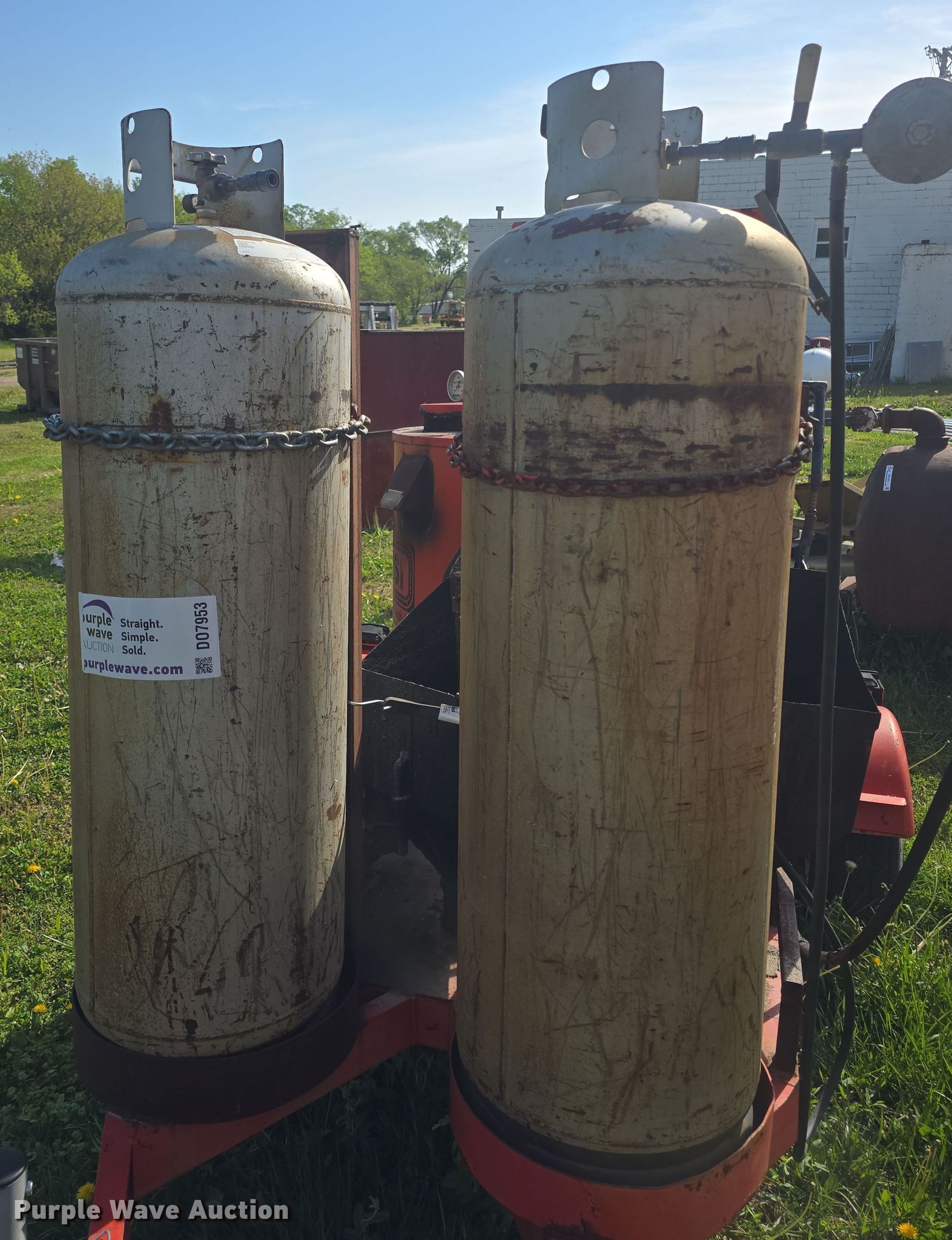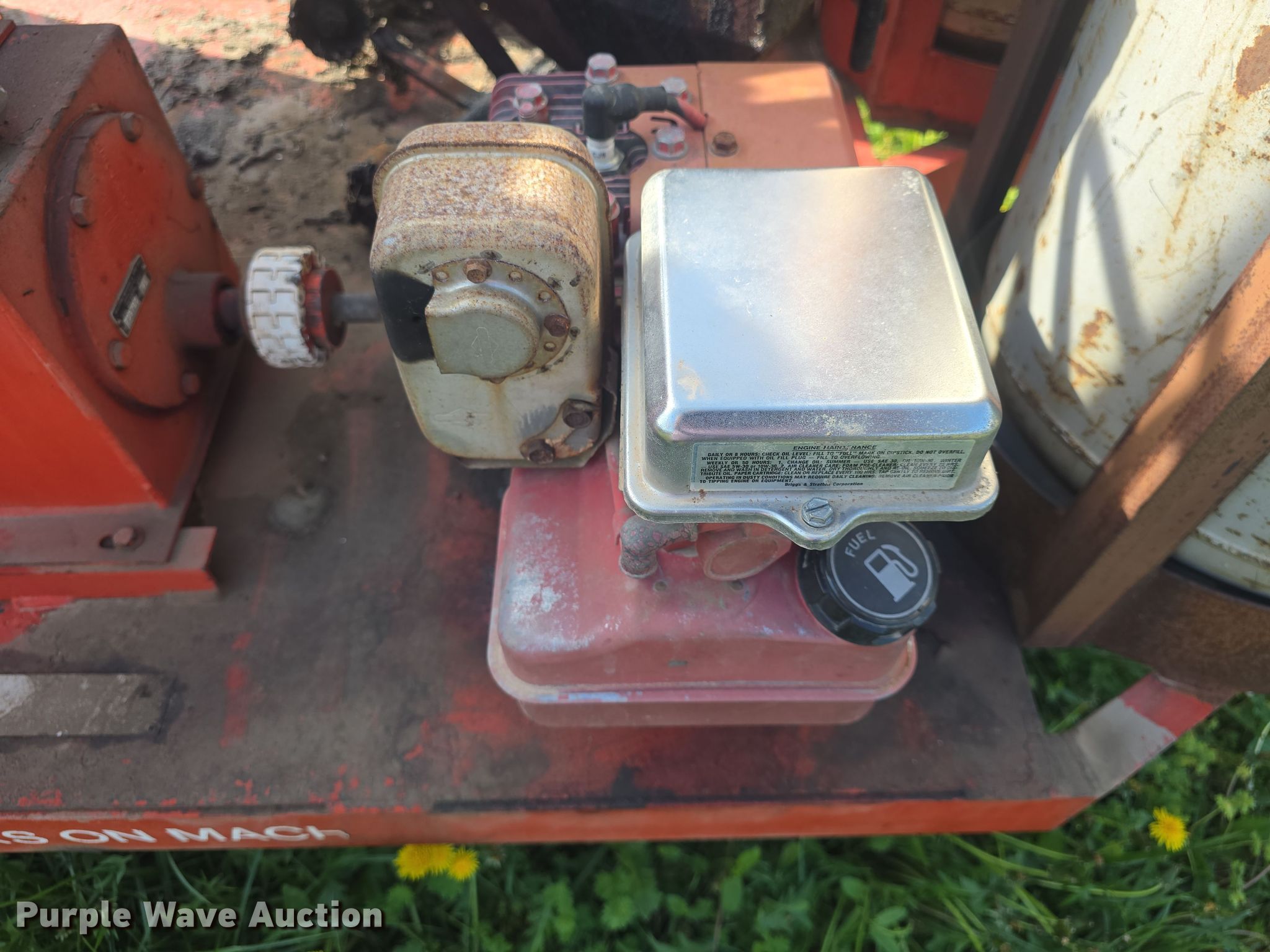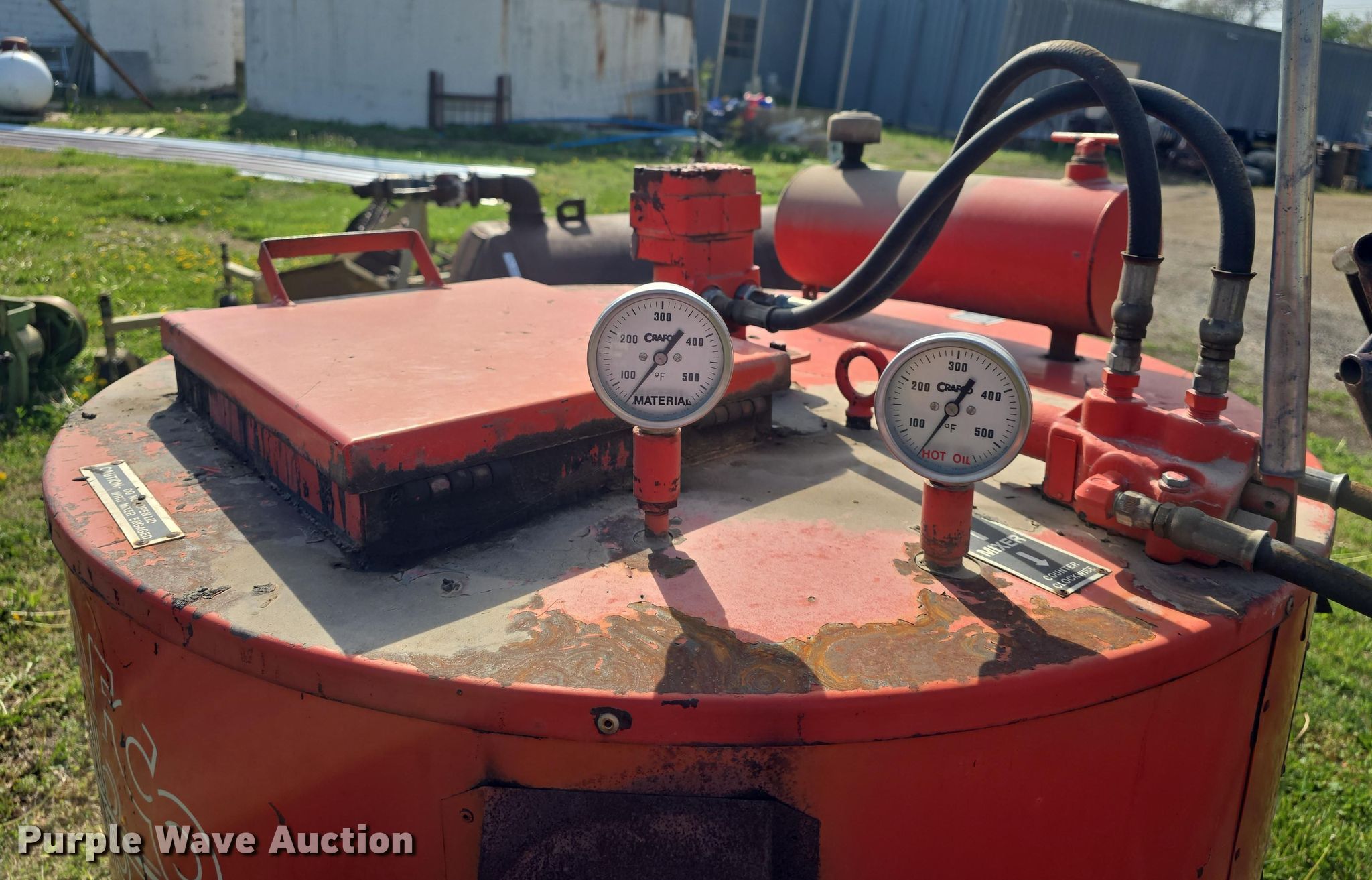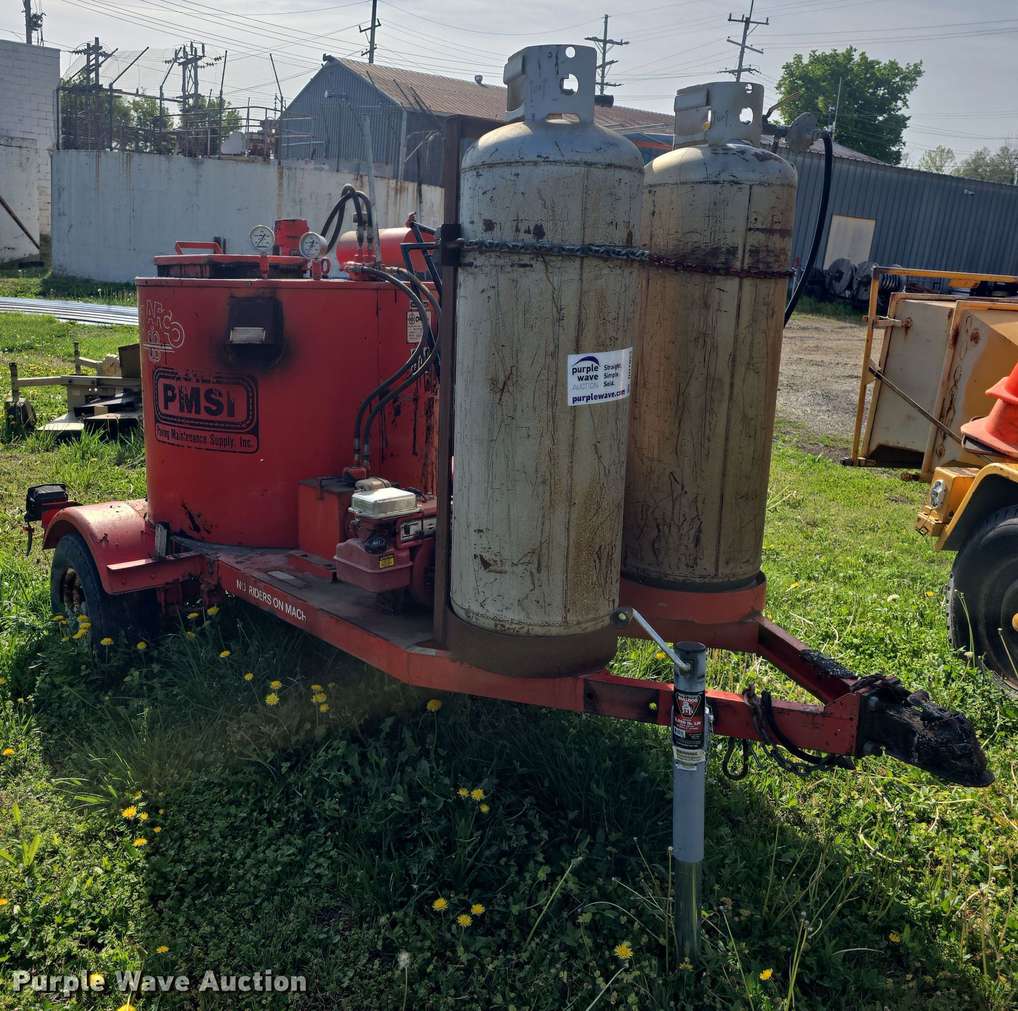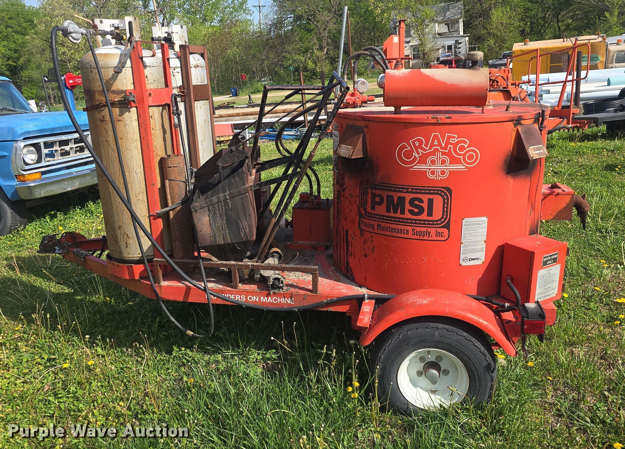 Crafco PMSI E-Z Pour pothole patcher. Serial: 9050012, Unit #: 948. Engine Briggs & Stratton, Cylinders: 1, Fuel type: Gas, HP: 3. Features (2) propane bottles, (2) tar pots Capacity: 50 gallons. Tires Rear: 20.5x8.0-10. Notes Engine issues Carburetor issues, Requires ether to run. This is worksite support equipment and will not come with a title. Transfer of ownership documentation will be a bill of sale. Enterprise, KS 67441