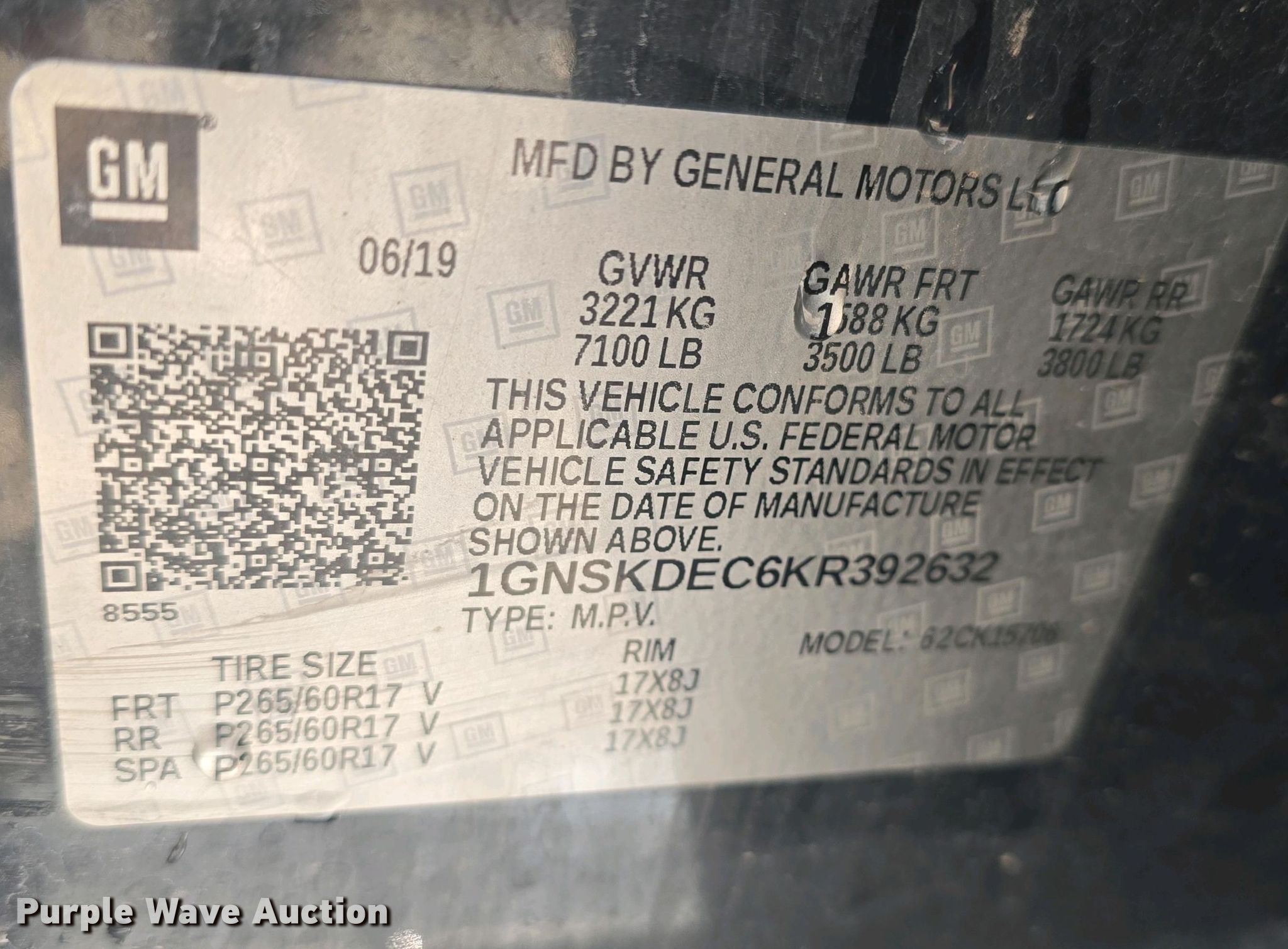 - VIN: 1GNSKDEC6KR392632