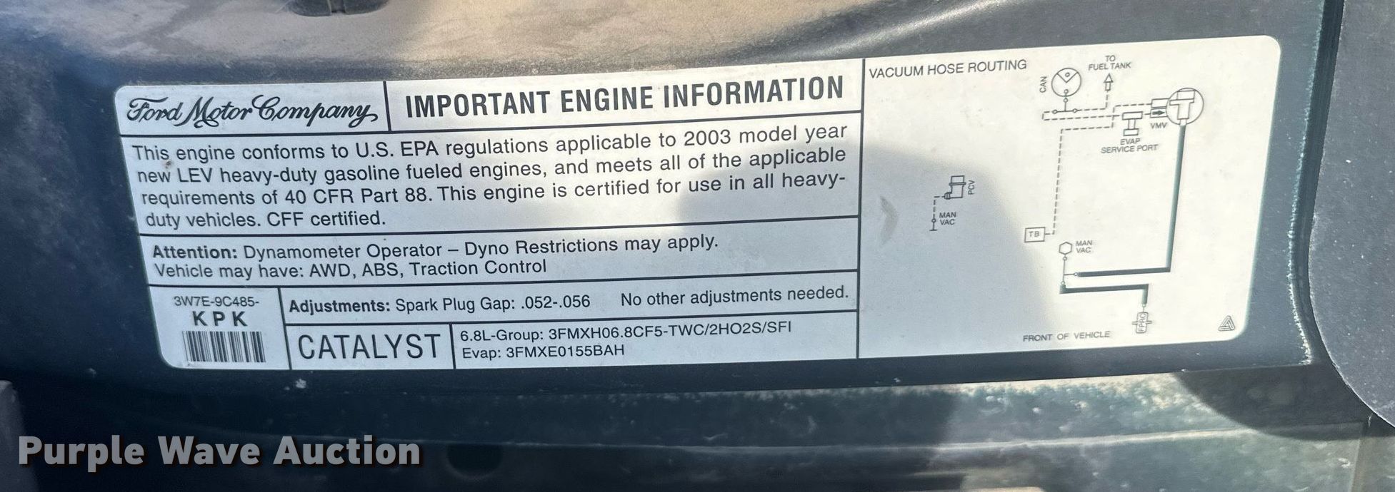 2003 Ford E350 van. Miles: 95,899 on odometer, VIN: 1FBSS31S03HA99739. Engine Displacement: 6.8L V10 SOHC, Cylinders: 8, Fuel type: Gas. Transmission Automatic. Interior AC, Heat, Power windows, Power locks, Cruise control. Tires Size: 245/75R16. Notes No keys, Unknown operating condition. South Dakota title. Seller is a government entity who will be assigning and distributing the title. Please contact the seller for distribution questions. City of Belle Fourche. Belle Fourche, SD 57717
