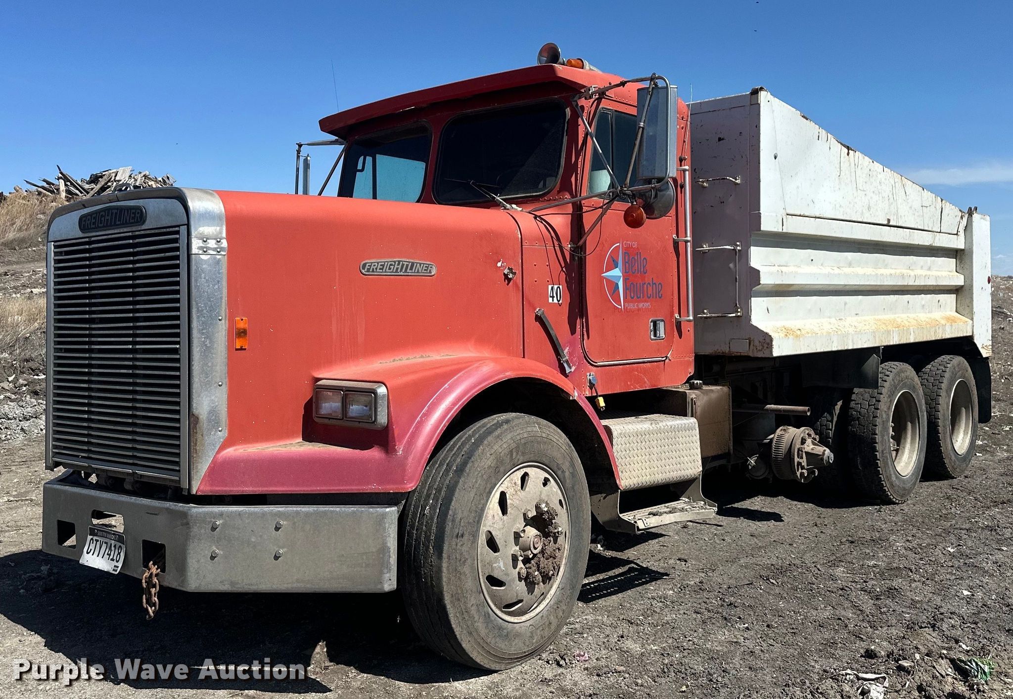 1987 Freightliner FLC dump truck. Miles: 567,143 on odometer, VIN: 1FUYYLYB9HP300263. Engine Cummins L10, Displacement: 10L, Cylinders: 6, Fuel type: Diesel, Engine brake. Transmission Manual, Speed: 13. Chassis Axles: Triple, Pusher axle, Suspension: Air over spring Dump valves, Brakes: Air, PTO. Interior AC, Heat. Features Dump bed 13' 10" L x 96" W, Side height: 43", Bed type: Steel, Ram: Single. Tires Front: 285/75R24.5, Rear: 275/80R24.5. Notes Flat tire, Two-way radio not included, Possible AC issues, may need charged, Passenger door issues, will not open, Lift axle tires and wheels missing, Unit will not pass DOT inspection. South Dakota title. Seller is a government entity who will be assigning and distributing the title. Please contact the seller for distribution questions. City of Belle Fourche. Belle Fourche, SD 57717
