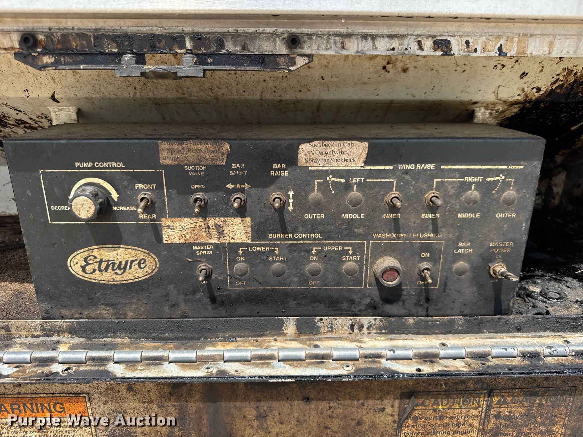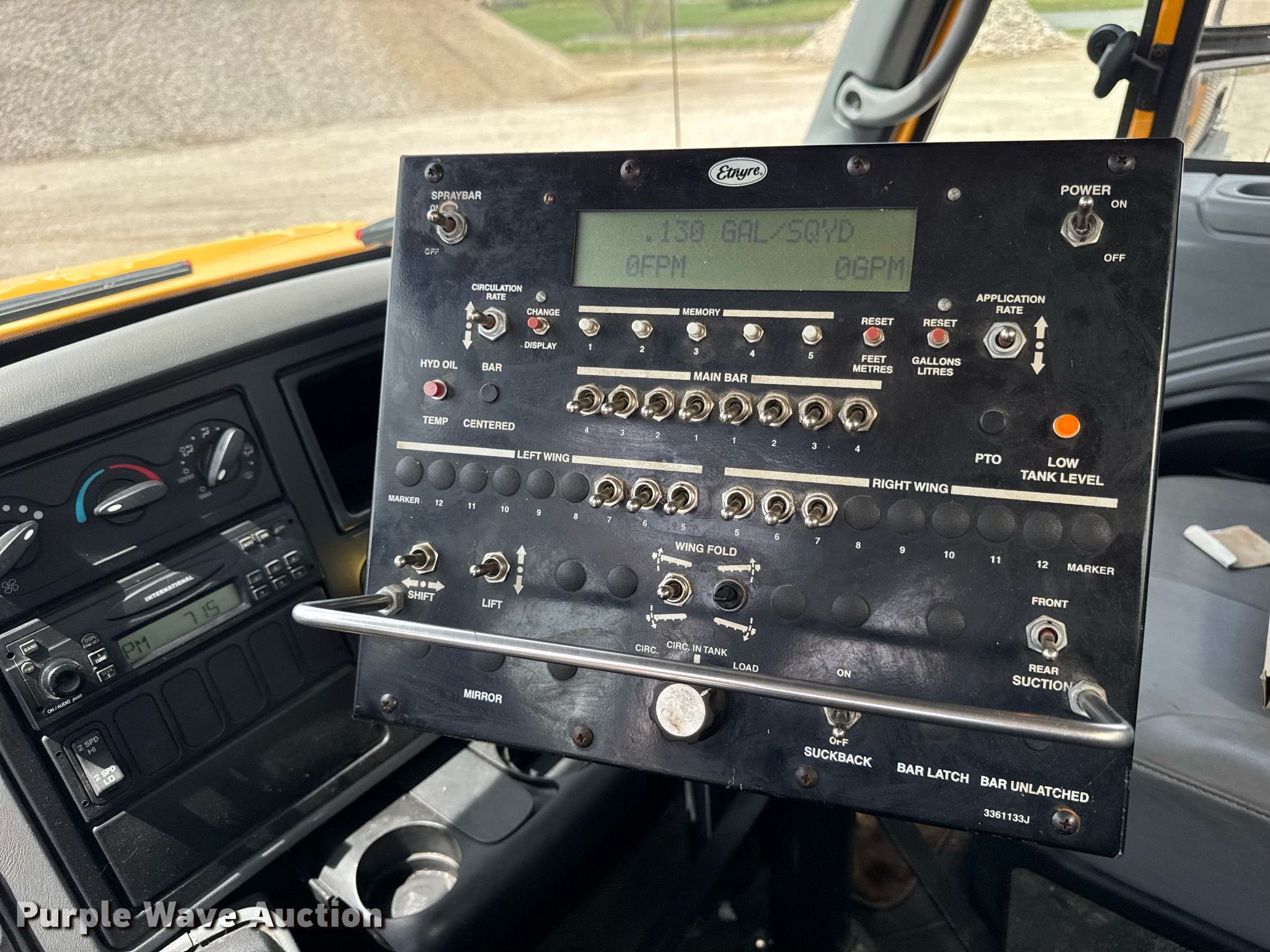 2007 International 7400 oil distributor truck. Miles: 93,068 on odometer, Hours: 9,192 on meter, VIN: 1HTWCAAN87J524800, Unit #: G9267. Engine International DT466, Displacement: 7.6L, Fuel type: Diesel. Transmission Automatic. Chassis Axles: Single, Suspension: Spring, Brakes: Air, PTO, GVWR: 33,000 lbs. Interior AC, Heat, Heated mirrors, Cruise control, Auxiliary controls. Features Bed / tank Etnyre Shooter, Serial: SH1041, Capacity: 2,000 gallons, 11' 6" L x 96" W, Burner: LPG, In-cab controls, Spray boom Width: 14', Folding, Side shift, Nozzles: 42.. Tires Size: 11R22.5. Missouri title. Title distribution may be delayed up to 14 days from verification of funds. Missouri Department of Transportation (MODOT). Macon, MO 63552