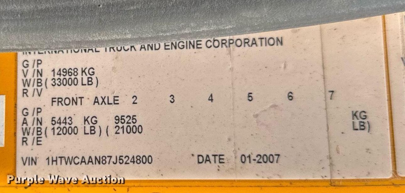 Purple Wave is selling a used Oil Distributor Truck in Missouri. This item is a 2007 International 7400 oil distributor truck with the following: Miles: 93,068 on odometer, Hours: 9,192 on meter, VIN: 1HTWCAAN87J524800, Unit #: G9267