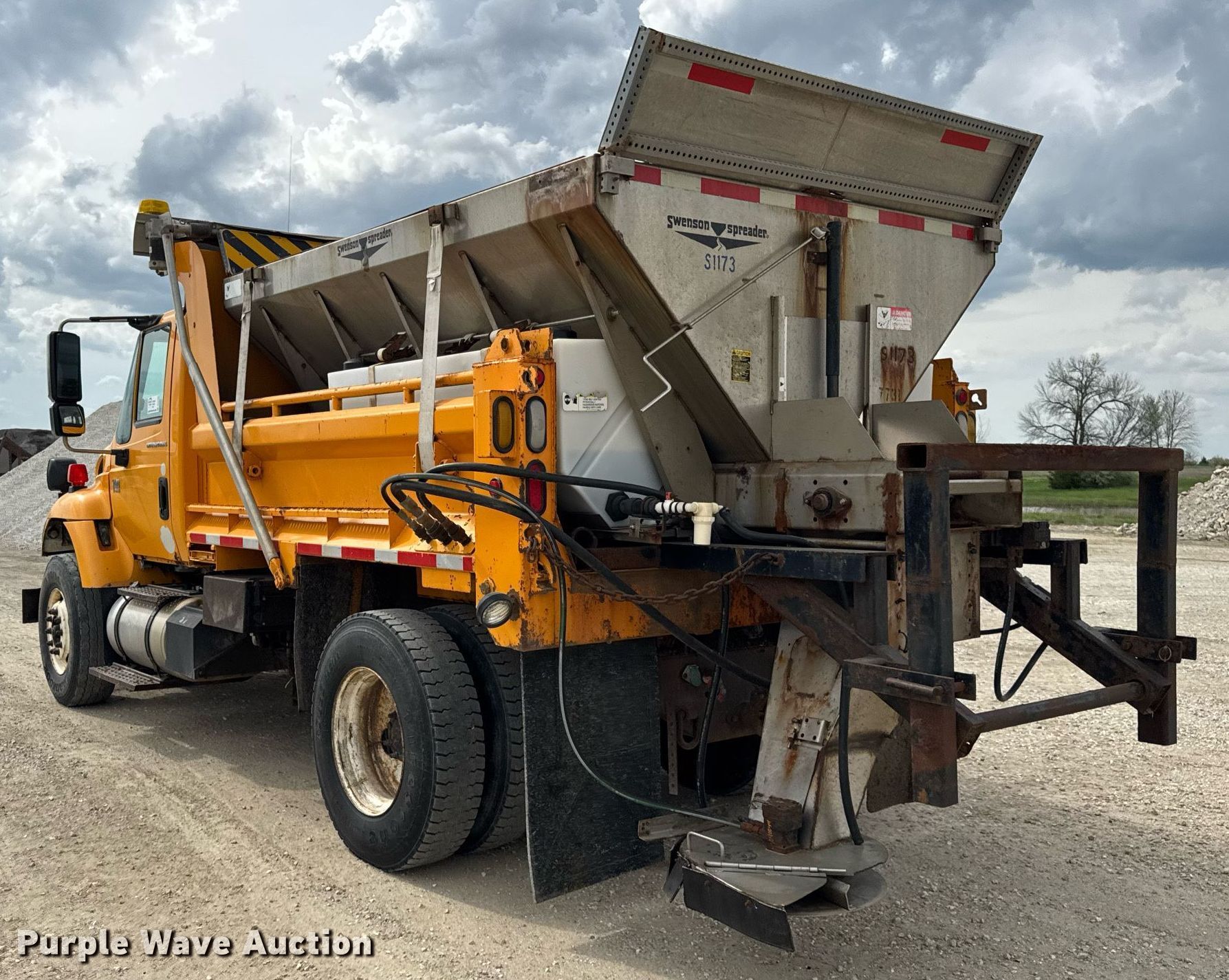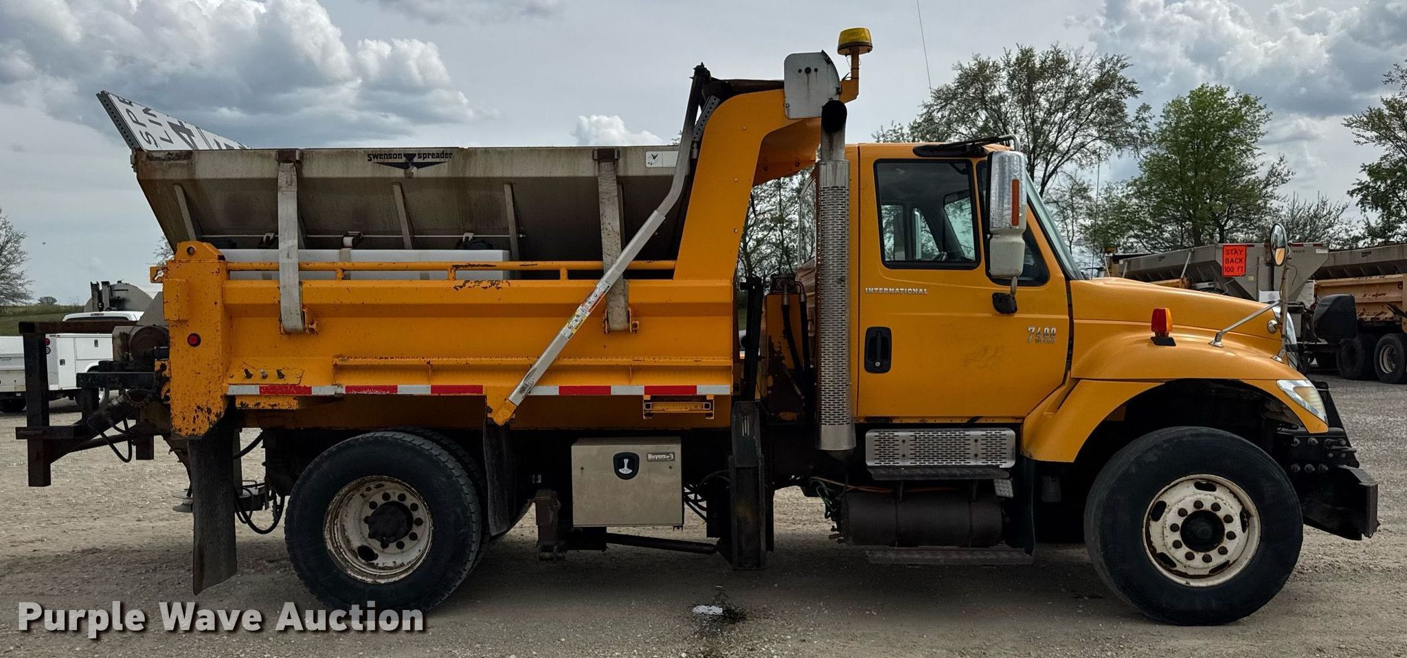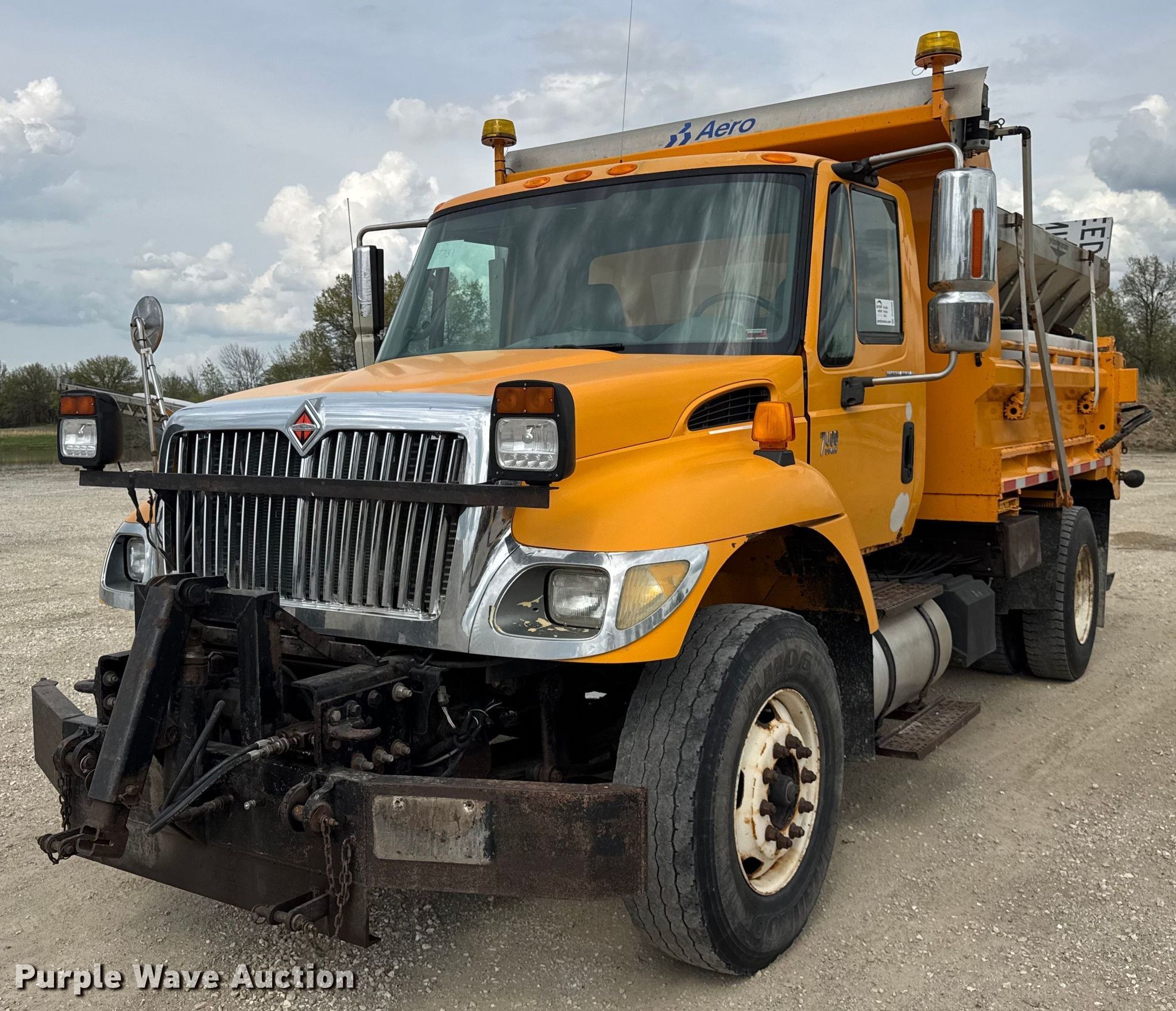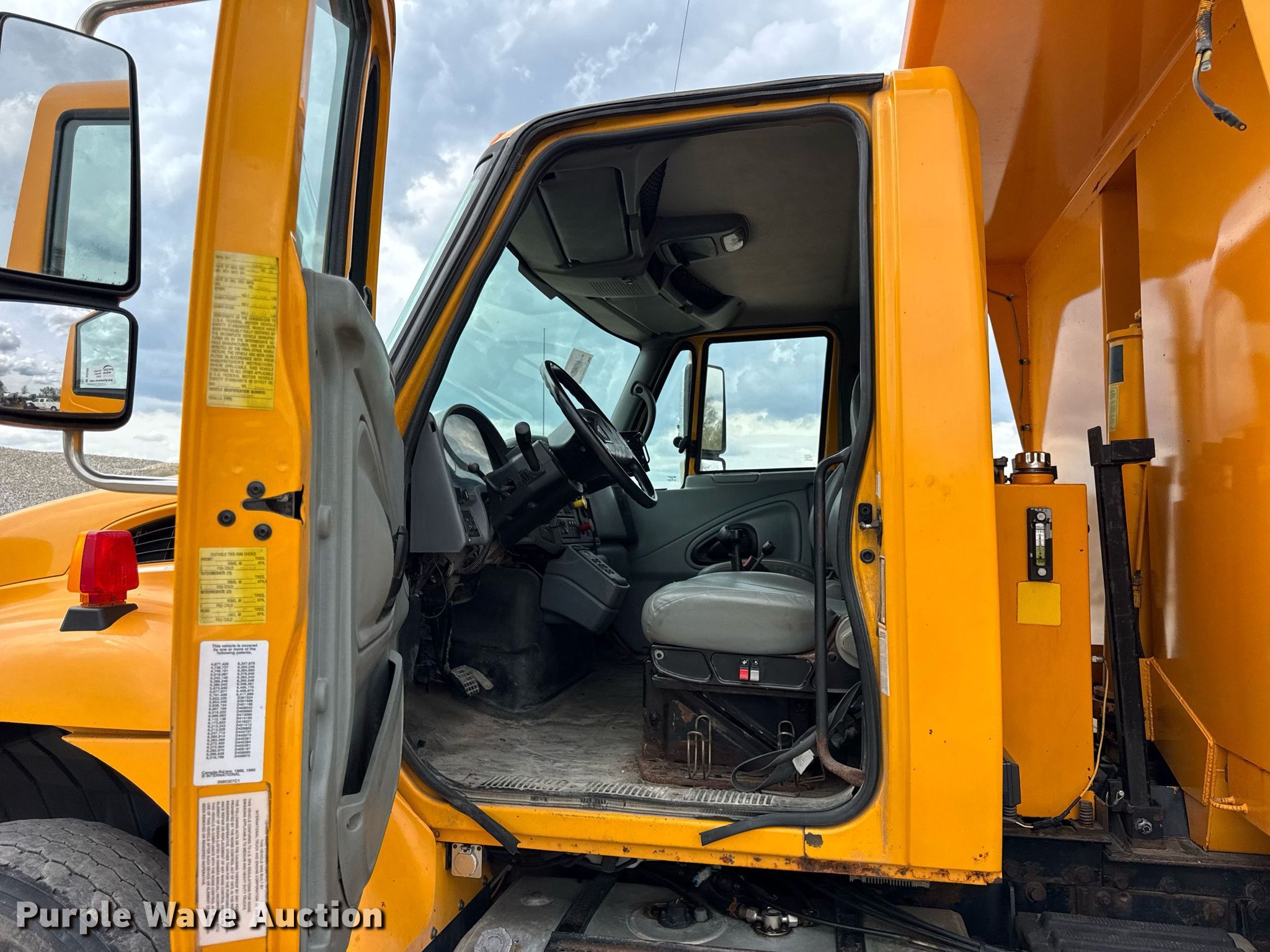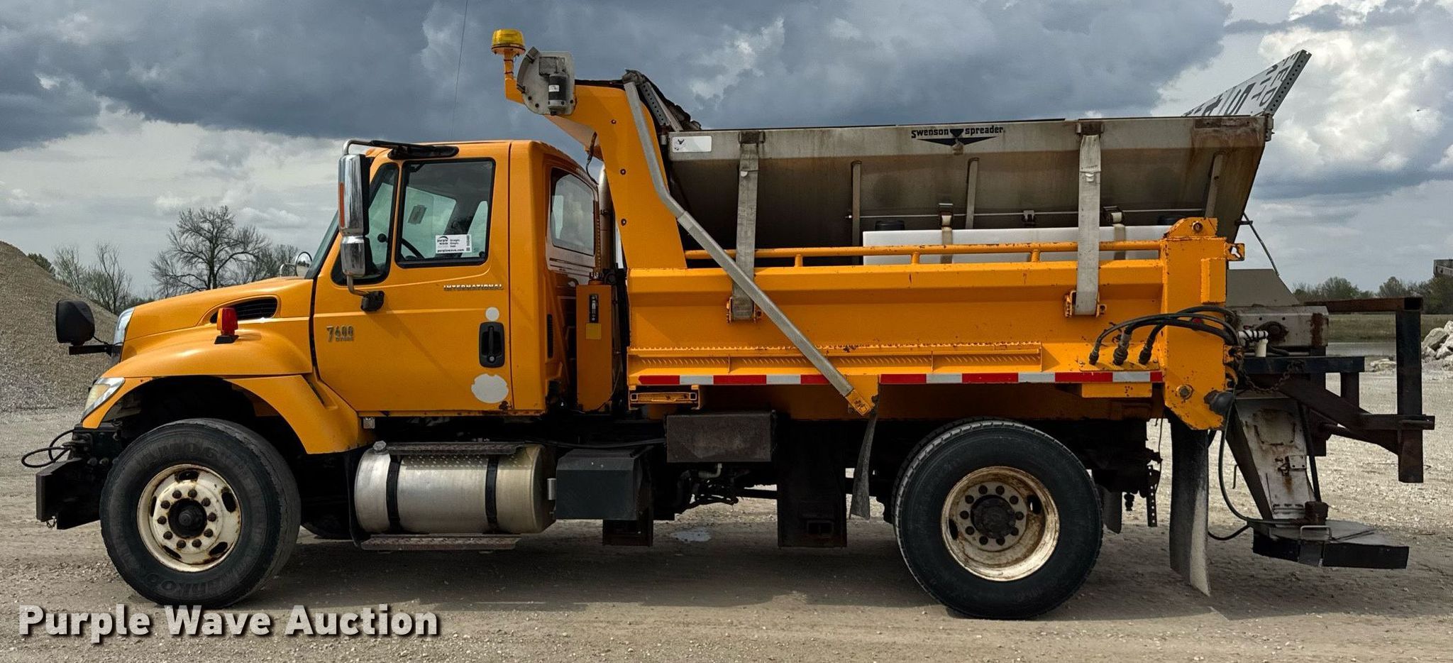 2006 International 7400 dump truck. Miles: 205,573 on odometer, Hours: 12,499 on meter, VIN: 1HTWDAAR56J255797, Unit #: 7731. Engine International DT466, Displacement: 7.6L, Cylinders: 6, Fuel type: Diesel. Transmission Automatic. Chassis Axles: Single, Suspension: Spring, Brakes: Air, Front mount PTO, GVWR: 35,000 lbs FAWR: 14,000 lbs, IAWR: 21,000 lbs. Interior AC, Heat, Power windows, Cruise control. Features Dump bed 10' L x 96" W, Side height: 24", Bed type: Steel, Roll tarp, Ram: Single, End gate: Air operated, Swenson spreader, Plow Width: 144". Tires Front: 315/80R22.5, Rear: 11R22.5. Notes Tailgate and plow removed but included, Dash warning indicator: ABS, Hydraulic leak. Missouri title. Title distribution may be delayed up to 14 days from verification of funds. Missouri Department of Transportation (MODOT). Macon, MO 63552