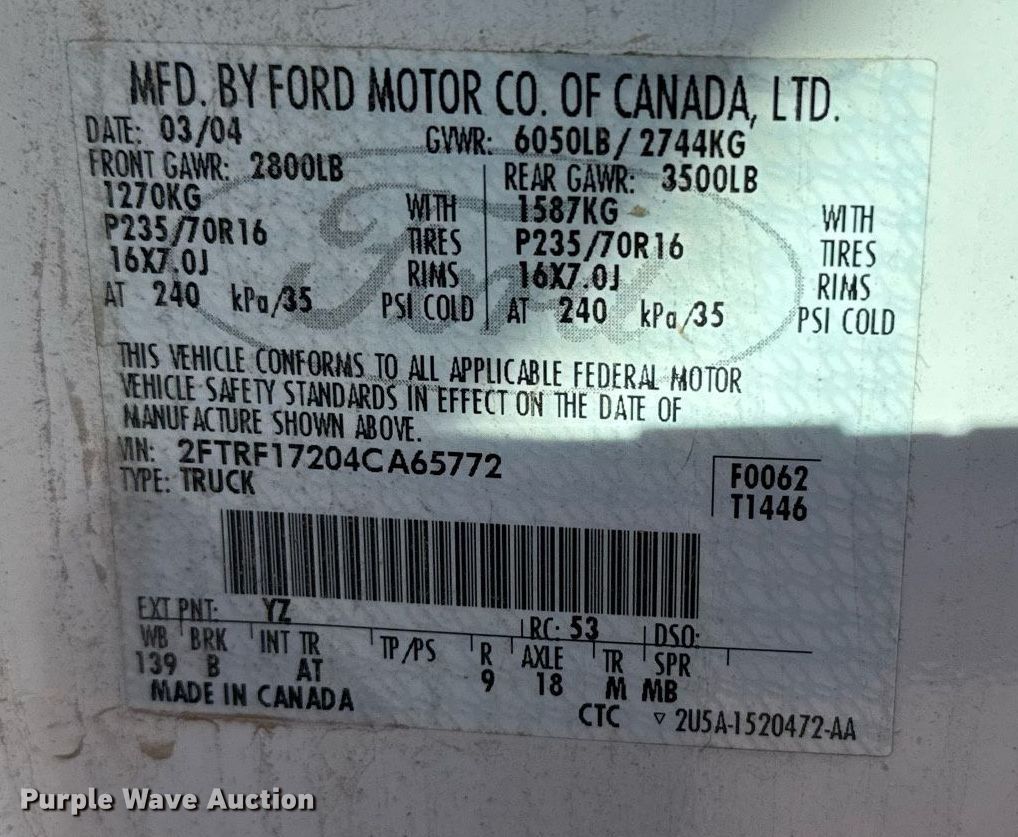 Purple Wave is selling a used 1/2 Ton Pickup or Van in Kansas. This item is a 2004 Ford F150 XL pickup truck with the following: Miles: 119,606 on odometer, VIN: 2FTRF17204CA65772