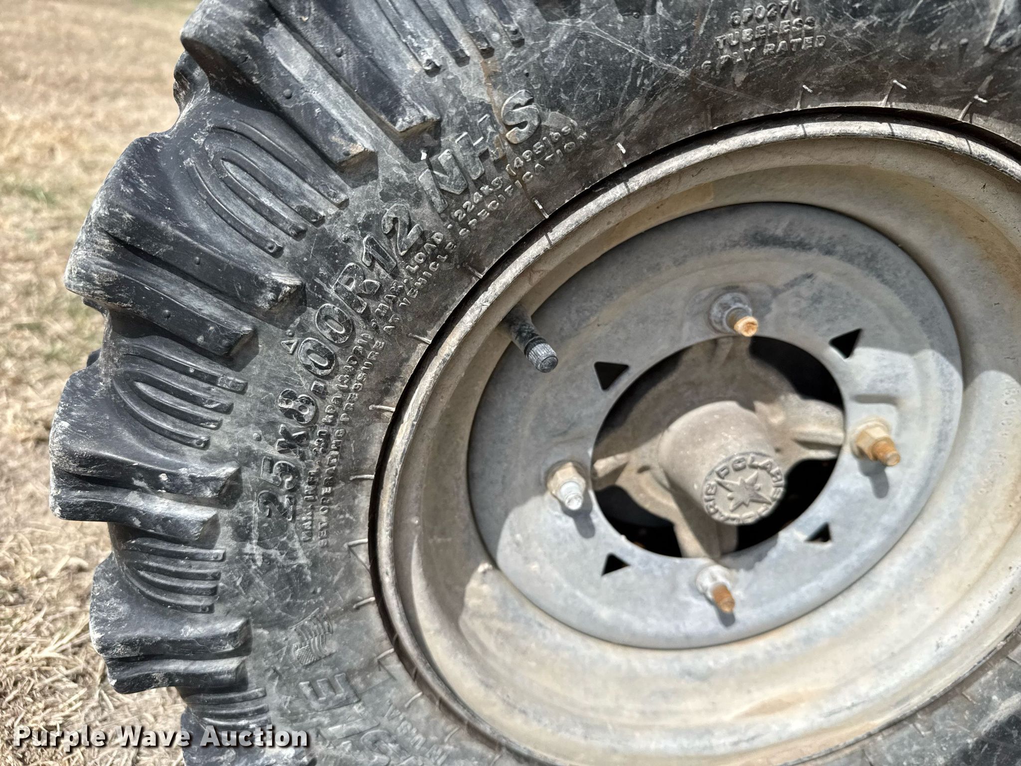2012 Polaris Ranger 500 utility vehicle. Miles: 11,449 on odometer, Hours: 2,351 on meter, VIN: 4XARH50A9CF663145. Engine Polaris, Displacement: 498 cc, Cylinders: 1, Fuel type: Gas, Electric start. Transmission Automatic. Chassis Four wheel drive/ All wheel drive. Operators station Canopy. Features Grille guard, Receiver hitch, Dump bed 37" L x 51" W, Dump bed type: Manual. Tires Front: 25x8.00R12, Rear: 25x10.00-12. Notes Transmission issues, no reverse , (3) additional tires. Kansas non-highway not intnd for road use title. Title distribution may be delayed up to 14 days from verification of funds. Fort Hays State University. Hays, KS 67601