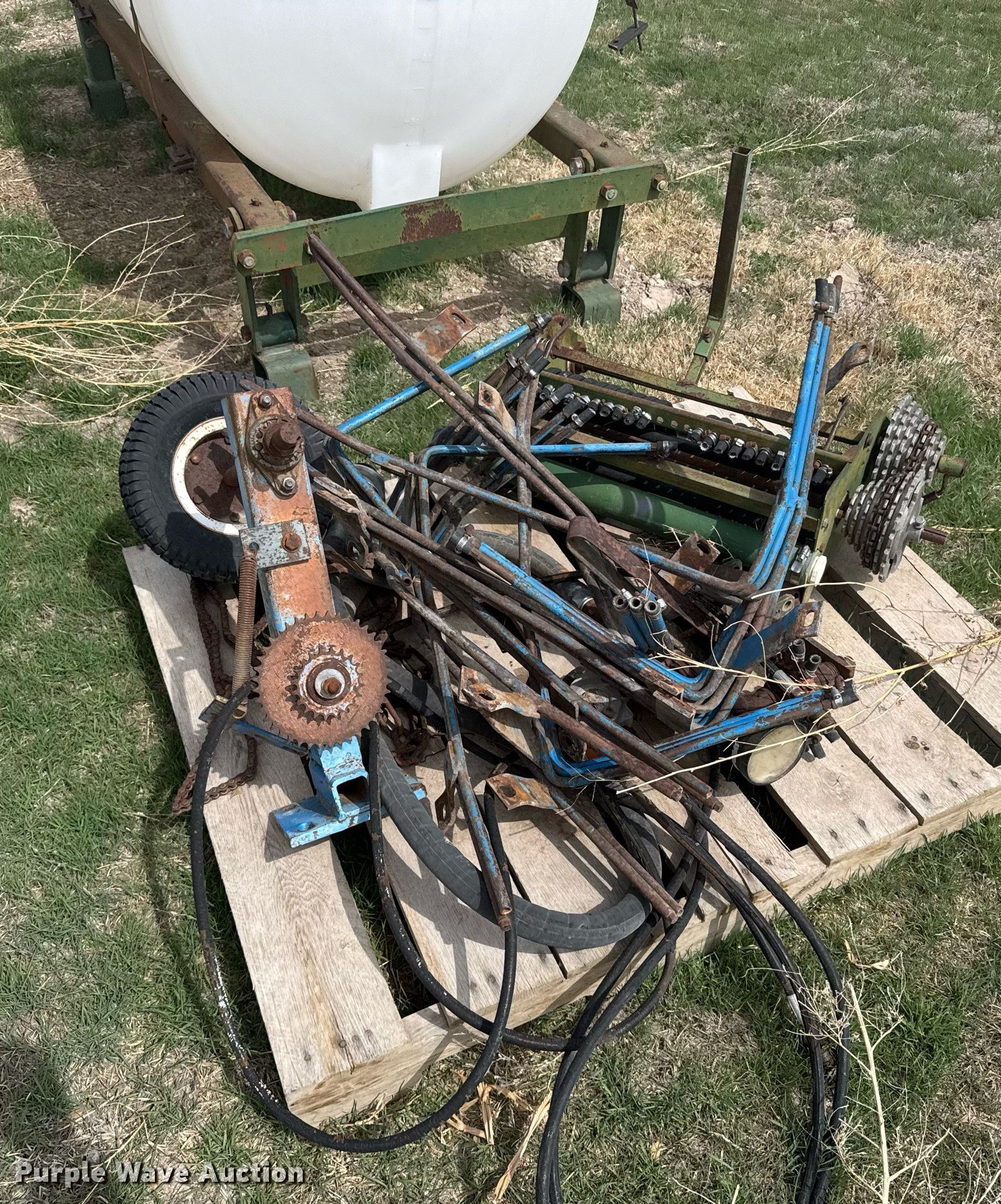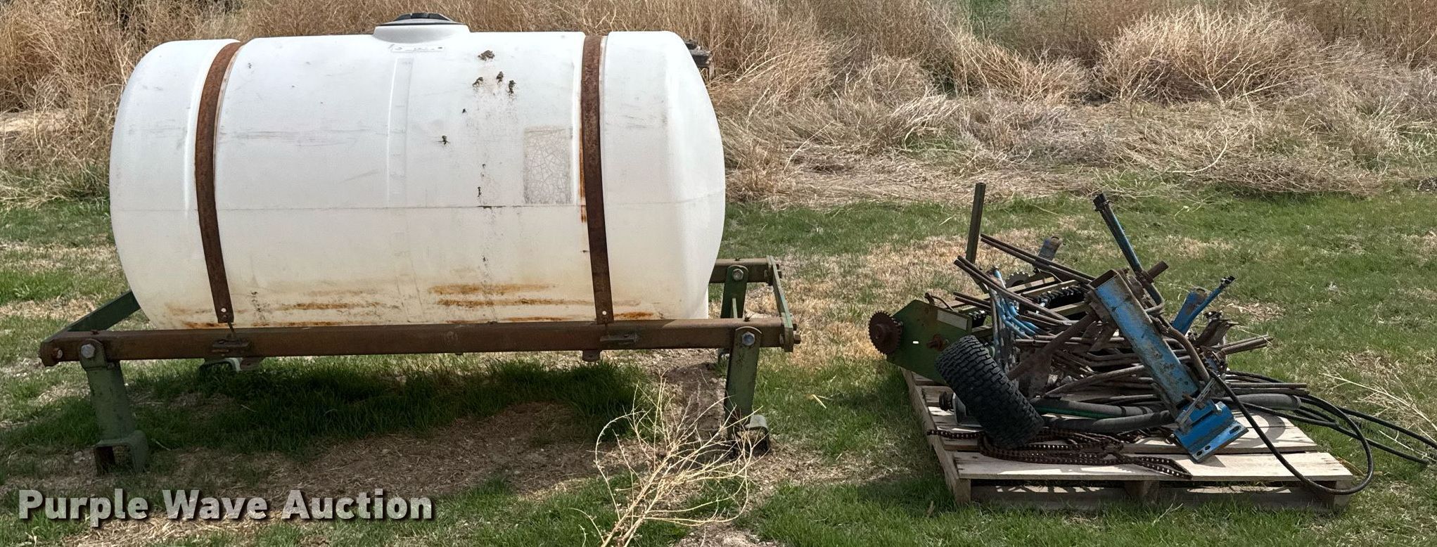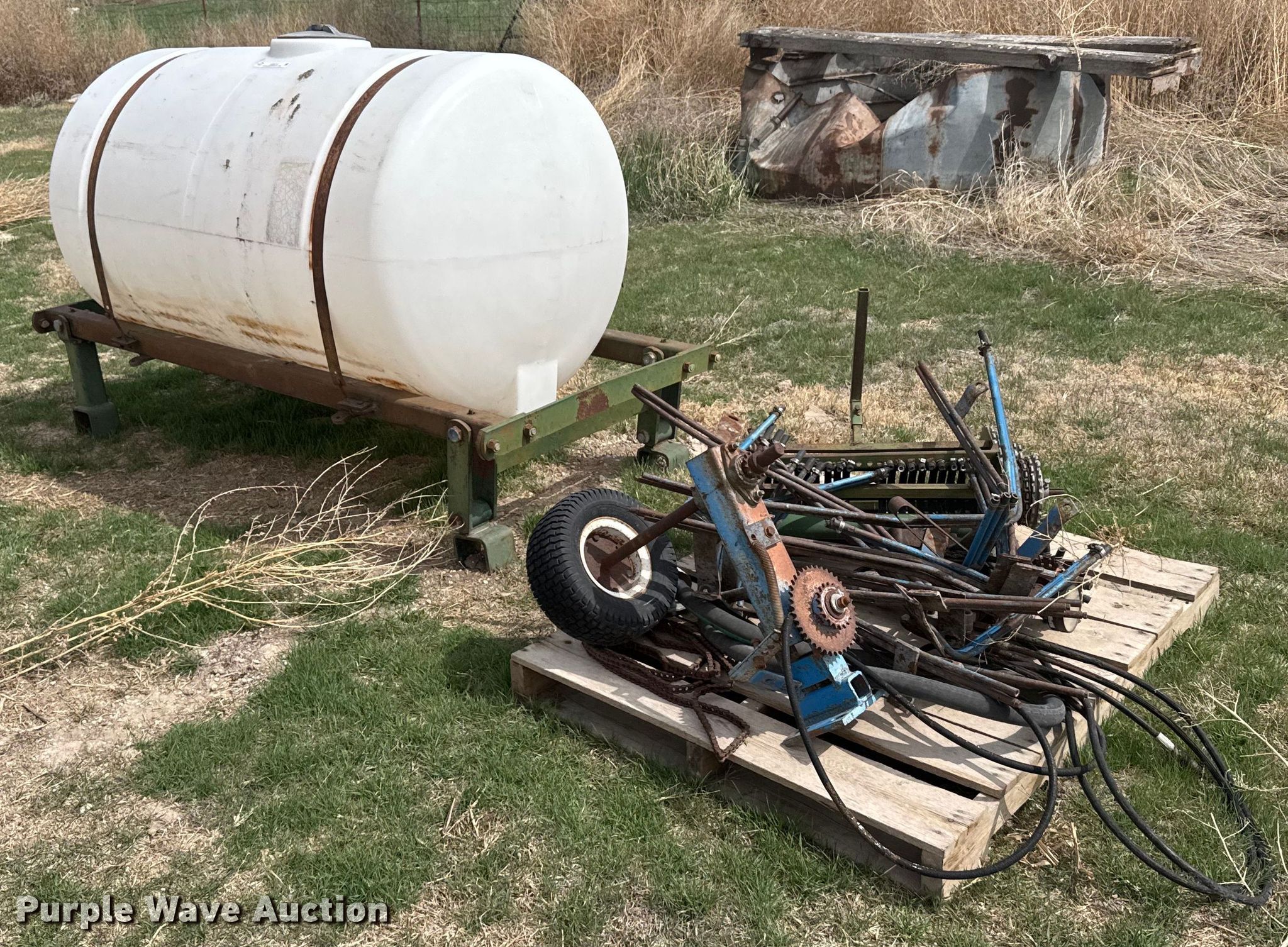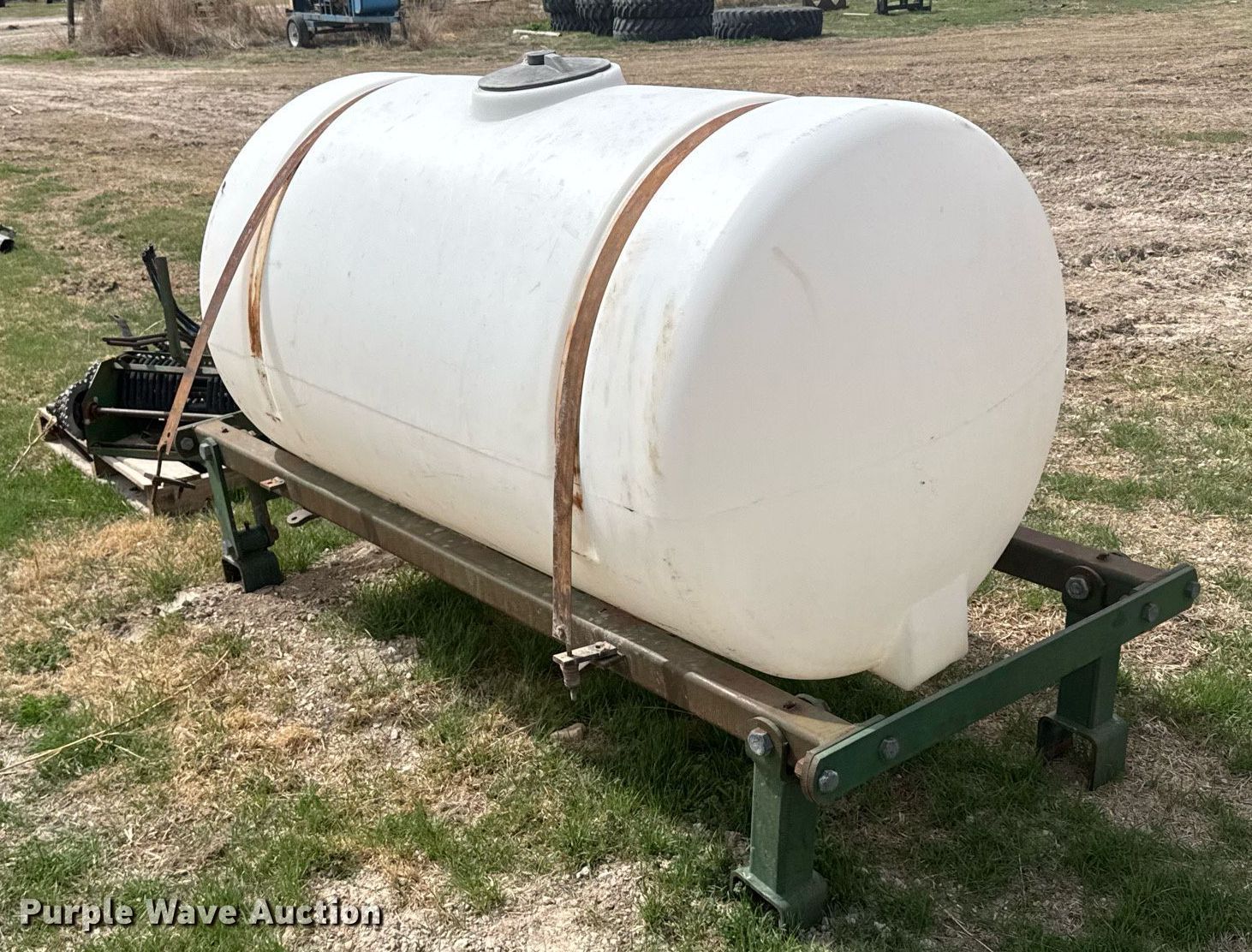 Purple Wave is selling a used Applicator Attach. in Kansas. This item is a Liquid fertilizer system with the following: Tank, Capacity: 300 gallons, Chain driven parts