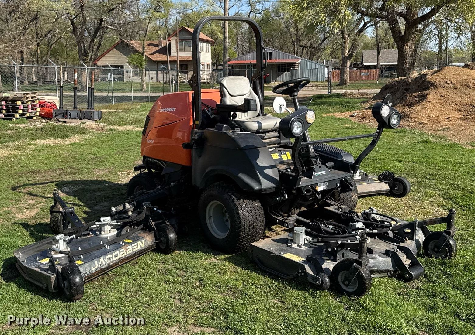 Purple Wave is selling a used Commercial Turf Mower in Kansas. This item is a Jacobson HR700 ZTR lawn mower with the following: Hours: 2,620 on meter, Cutting width: 168", Serial: XB000406
