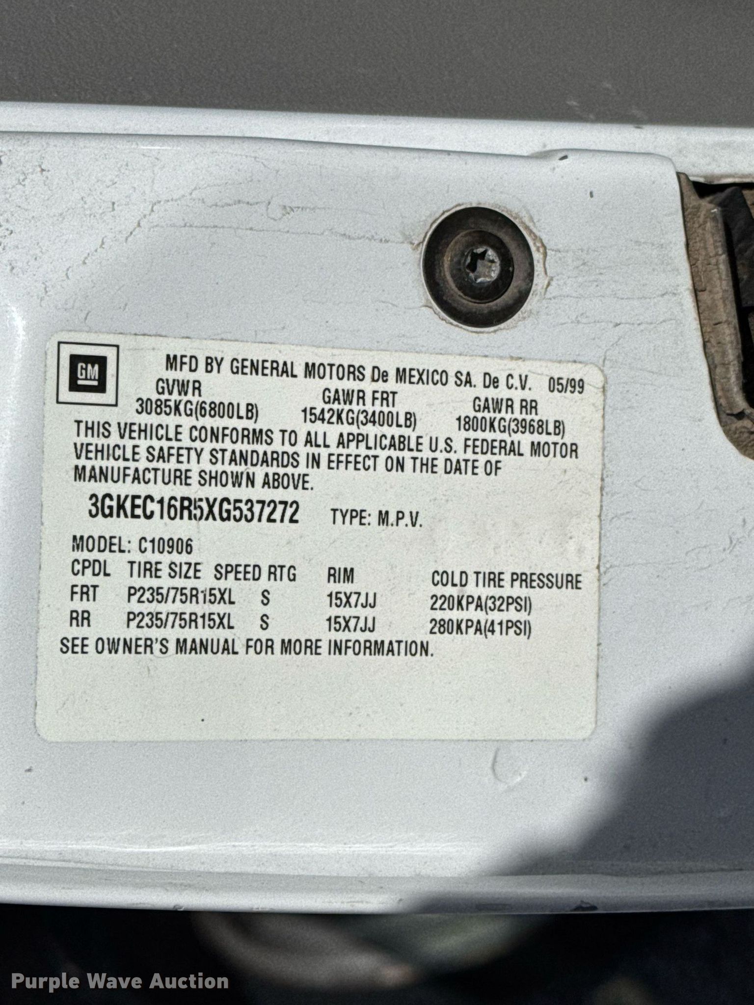 - VIN: 3GKEC16R5XG537272