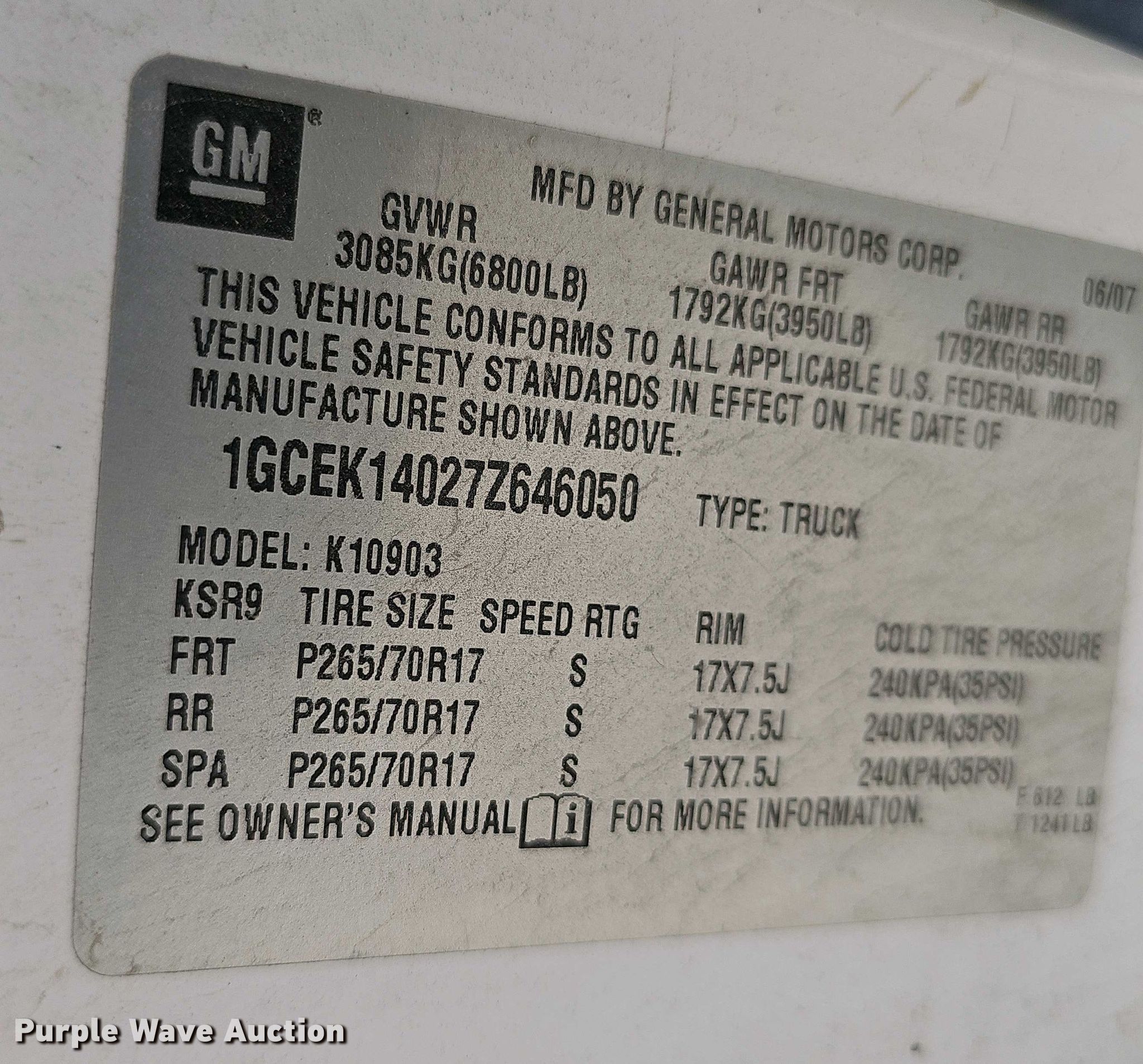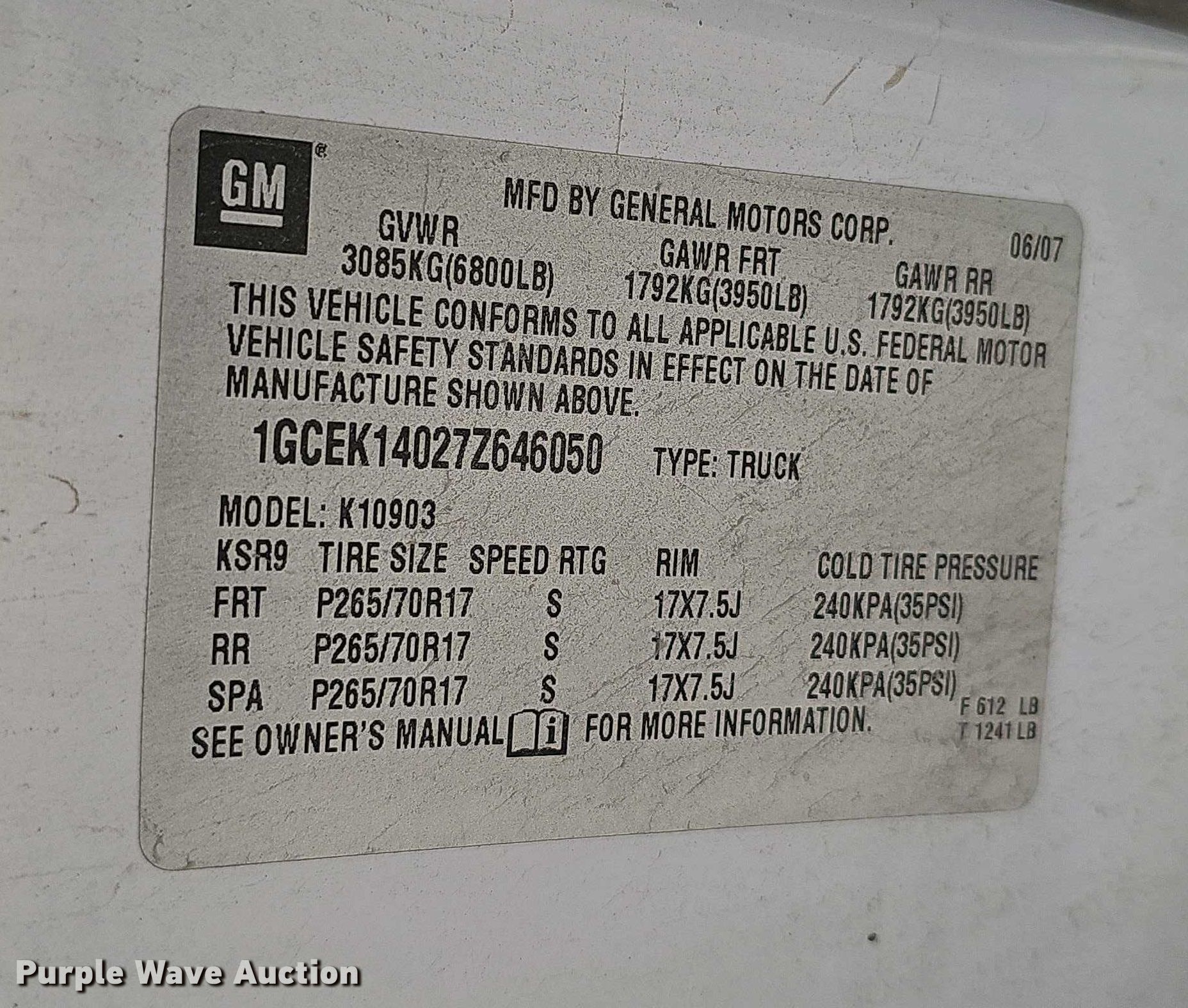 Purple Wave is selling a used 1/2 Ton Pickup or Van in Iowa. This item is a 2007 Chevrolet Silverado 1500 pickup truck with the following: Miles: 183,803 on odometer, VIN: 1GCEK14027Z646050