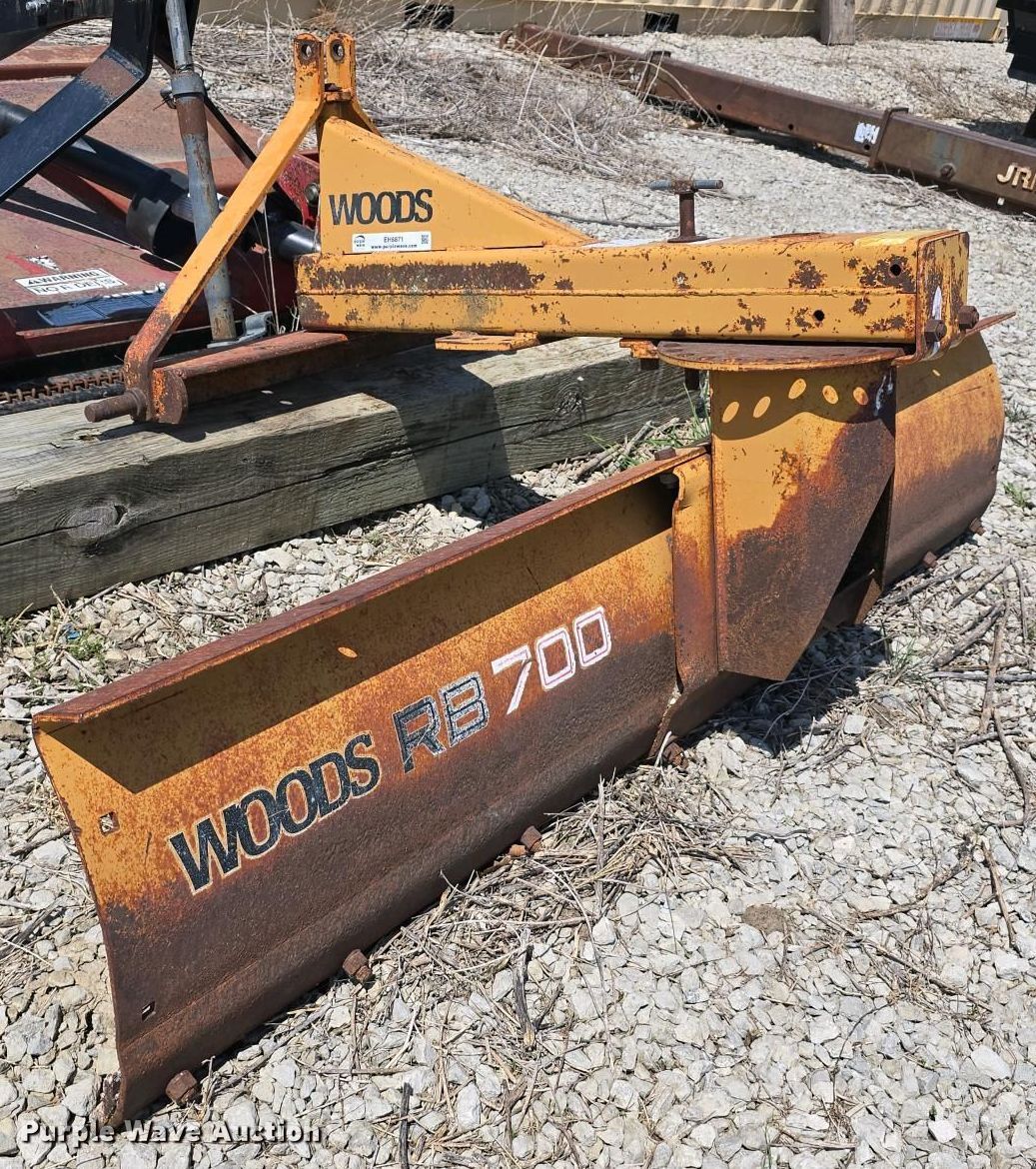 Purple Wave is selling a used Ag Tractor Loader or Attach. in Iowa. This item is a Woods RB700 blade with the following: Width: 84"