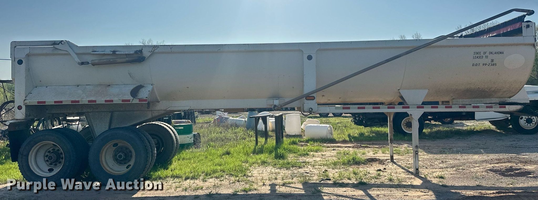 Purple Wave is selling a used End Dump Rock Trailer in Oklahoma. This item is a 2013 Construction Specialists Trailers HRD 32 end dump trailer with the following: VIN: 5TU343229DS001152
