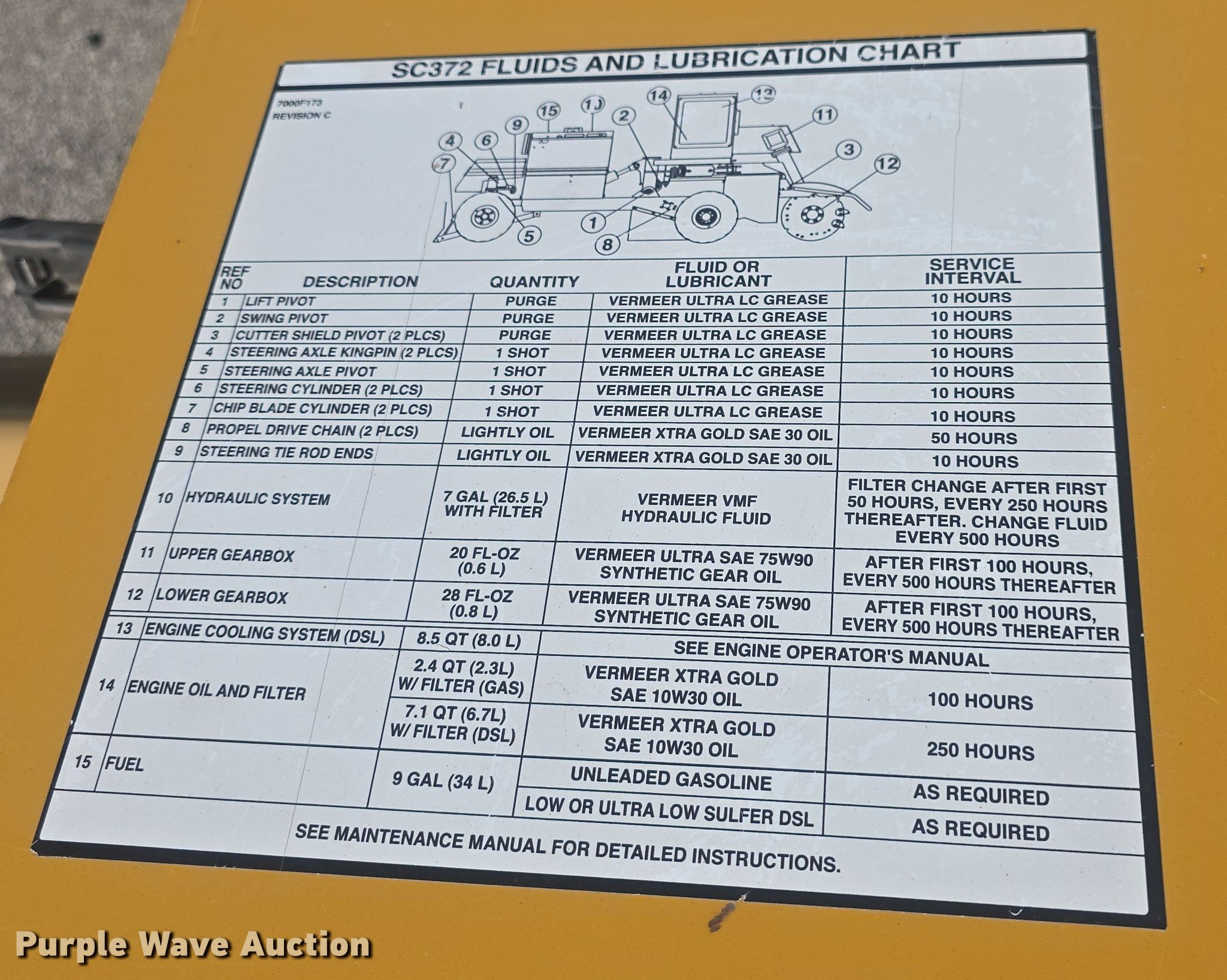 Purple Wave is selling a used Wood Chipper or Stump Grinder in Kansas. This item is a Vermeer SC372 stump grinder with the following: Hours: 1,560 on meter, Unit #: 43111354
