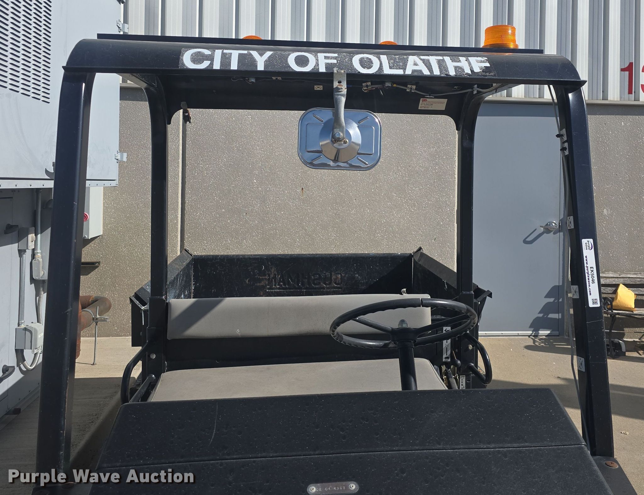 2001 Cushman Classic Truckster utility vehicle. Hours: 28 on meter, Actual hours unknown, VIN: 898546C3188827, Serial: LM4567, Unit #: 02040963. Engine Cylinders: 2, Fuel type: Gas. Transmission Automatic. Operators station OROPS. Features Dump bed 49" L x 57" W, Dump bed type: Electric/ Hydraulic. Tires Size: 18x8.50-8, Brand: Carlisle. Notes Keys missing, Unknown operating condition. Transfer of ownership documentation will be a bill of sale. City of Olathe. Olathe, KS 66061