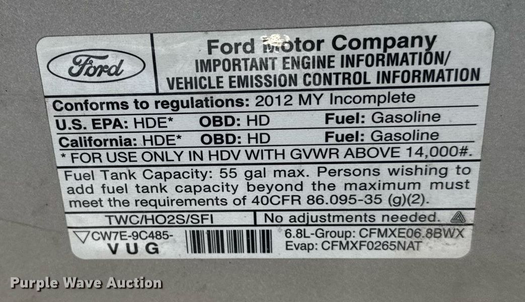 2012 Ford Econoline shuttle bus. Miles: 201,845 on odometer, VIN: 1FDFE4FS2CDA95889. Engine Displacement: 6.8L, Cylinders: 10, Fuel type: Gas, HP: 305. Transmission Automatic. Chassis Axles: Single, Suspension: Spring, Brakes: Hydraulic, GVWR: 14,500 lbs. Interior AC, Heat, Cruise control, Auxiliary controls, Passengers: 19, Wheelchair lift. Tires Size: 225/75R16E. Iowa title. Seller is a government entity who will be assigning and distributing the title. Please contact the seller for distribution questions. Title distribution may be delayed up to 14 days from verification of funds. INRCOG. Waterloo, IA 50703