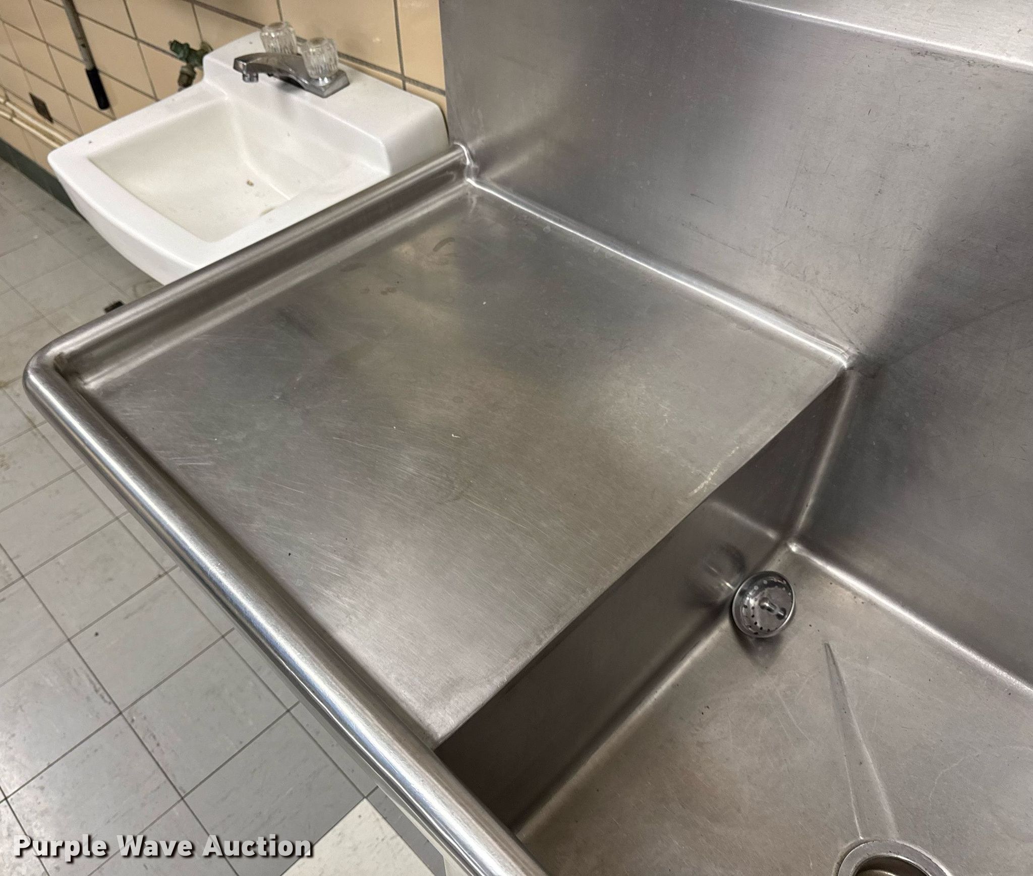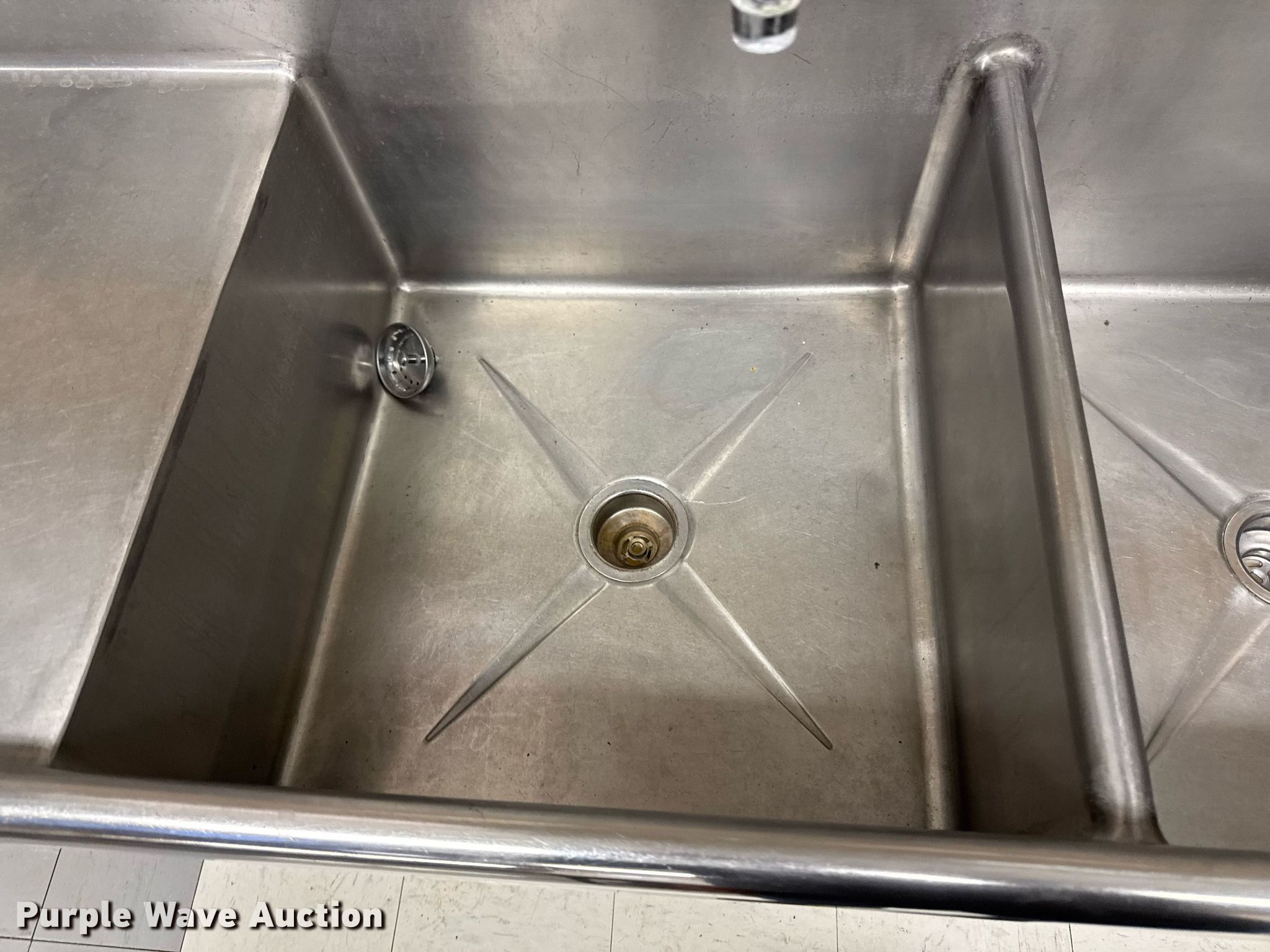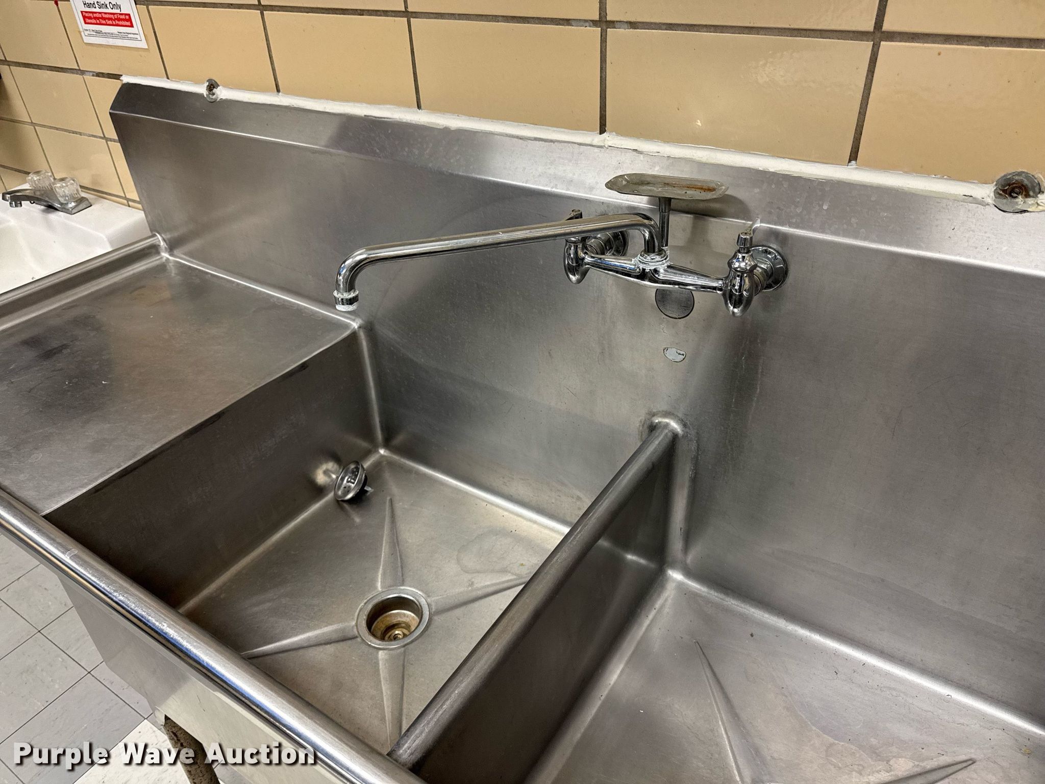 Purple Wave is selling a used Restaurant Equip. in Iowa. This item is a Stainless kitchen sink with the following: Chemical pump system included