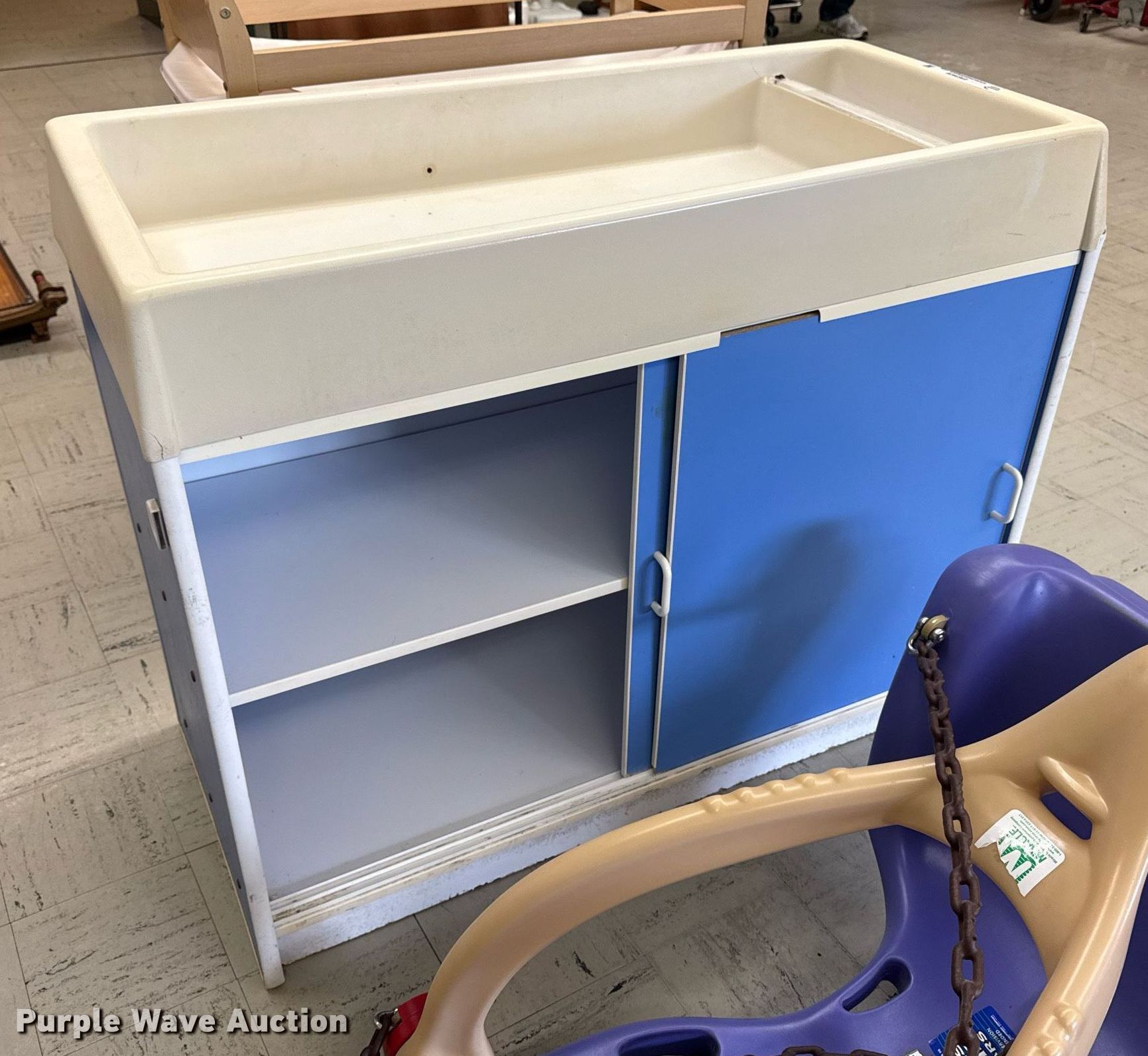 Purple Wave is selling a used All Other Household Items in Iowa. This item is a Nursery equipment with the following: (2) changing tables, Swing