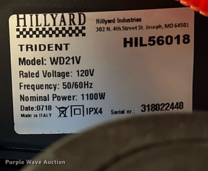Purple Wave is selling a used Other Industrial or Business in Iowa. This item is a Cleaning equipment with the following: Hillyard Trident WD21V floor scrubber, Serial: 318022440, Volts: 120, Hillyard caddy cart