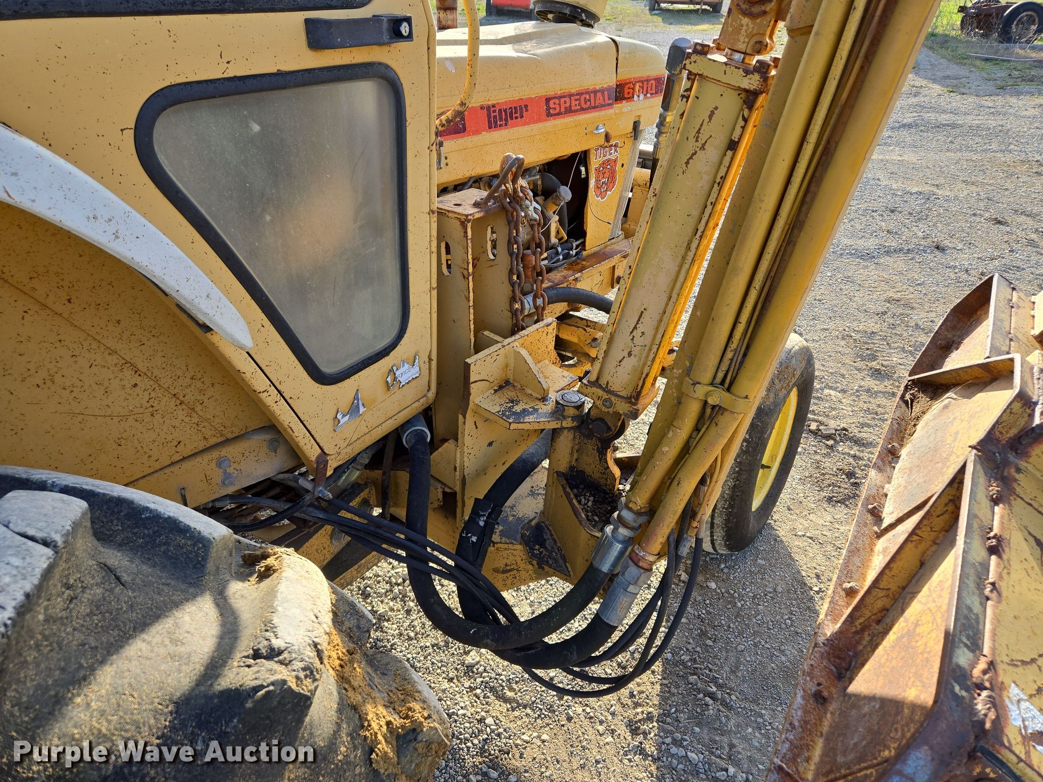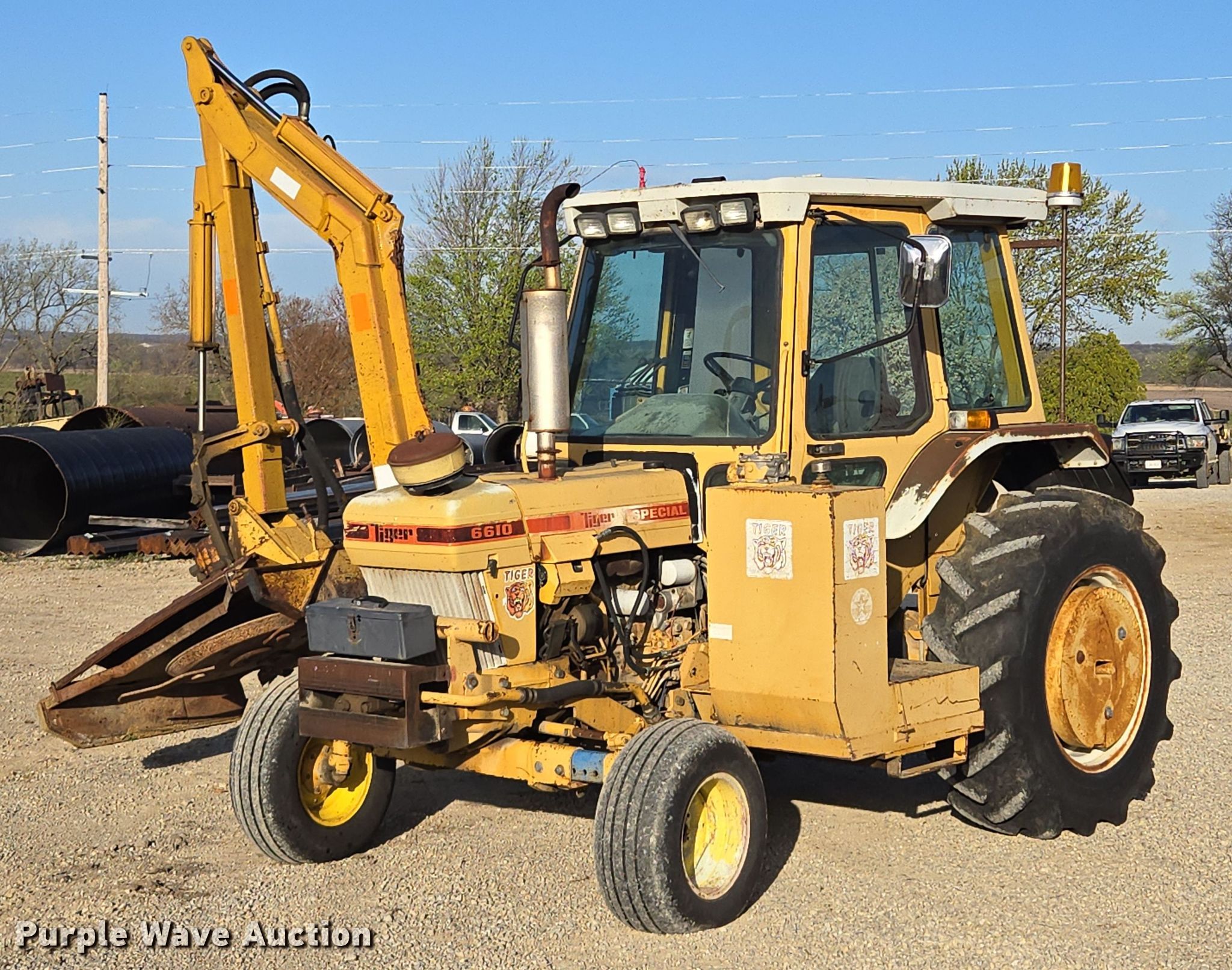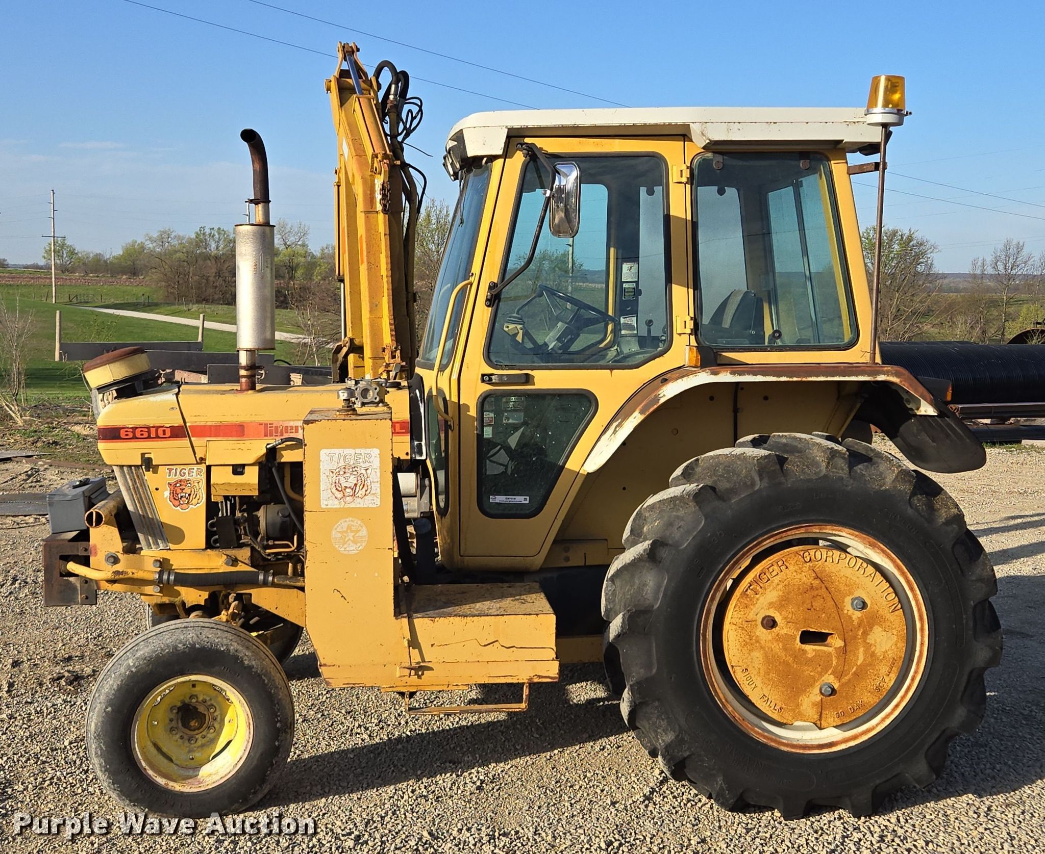 Ford 6610 Tiger Special tractor. Engine. Cylinders: 4, Fuel type: Diesel. Transmission Manual, 8F - 2R, Differential lock. Tires Front: 11L-15, Rear: 16.9-18, Wheel weights: 1. Features Tiger side boom rotary mower Width: 52�. Notes Radiator issues, leaks, Unknown operating condition of side boom mower, Dead battery. Grundy County, MO. Trenton, MO 64683