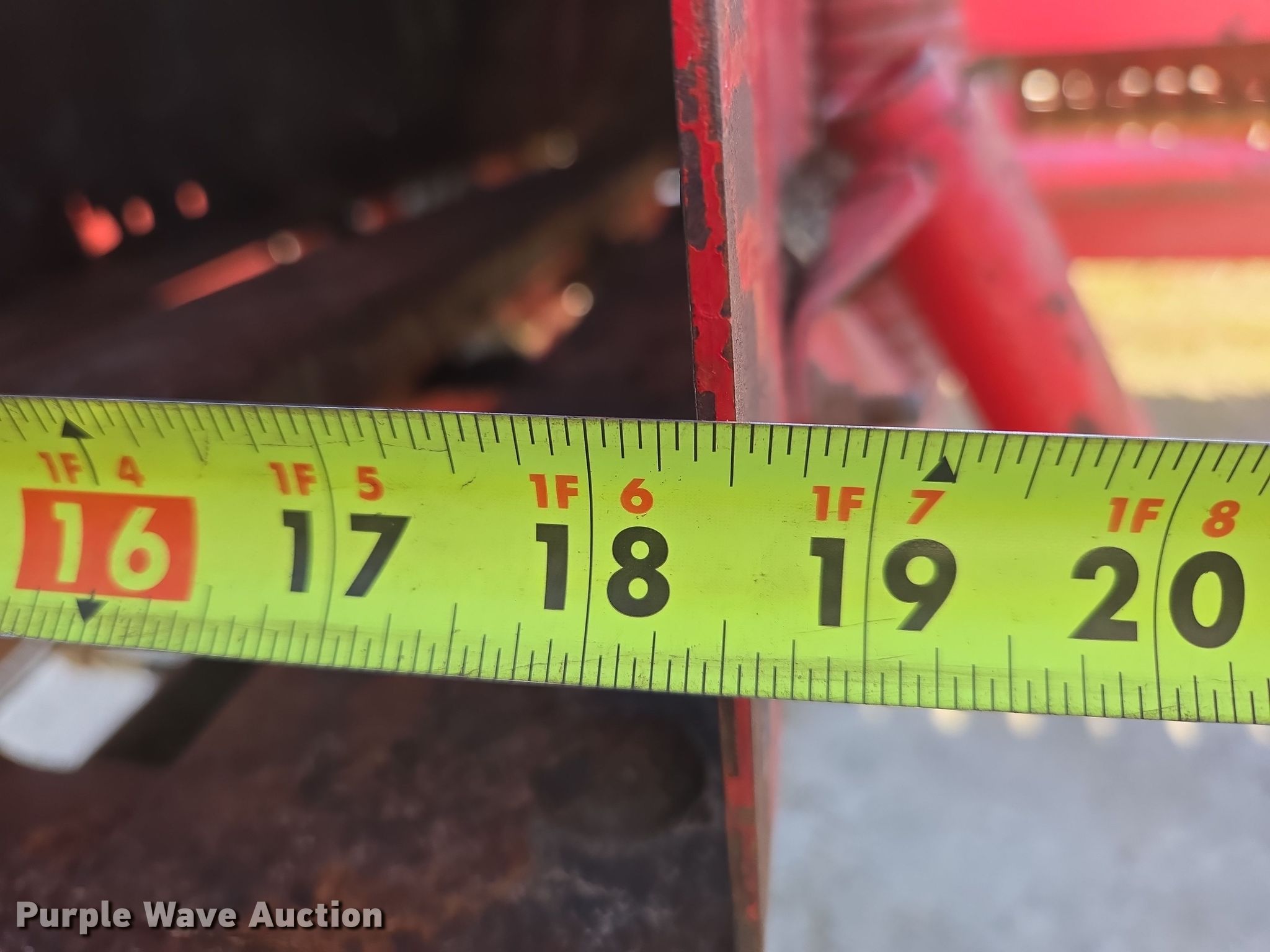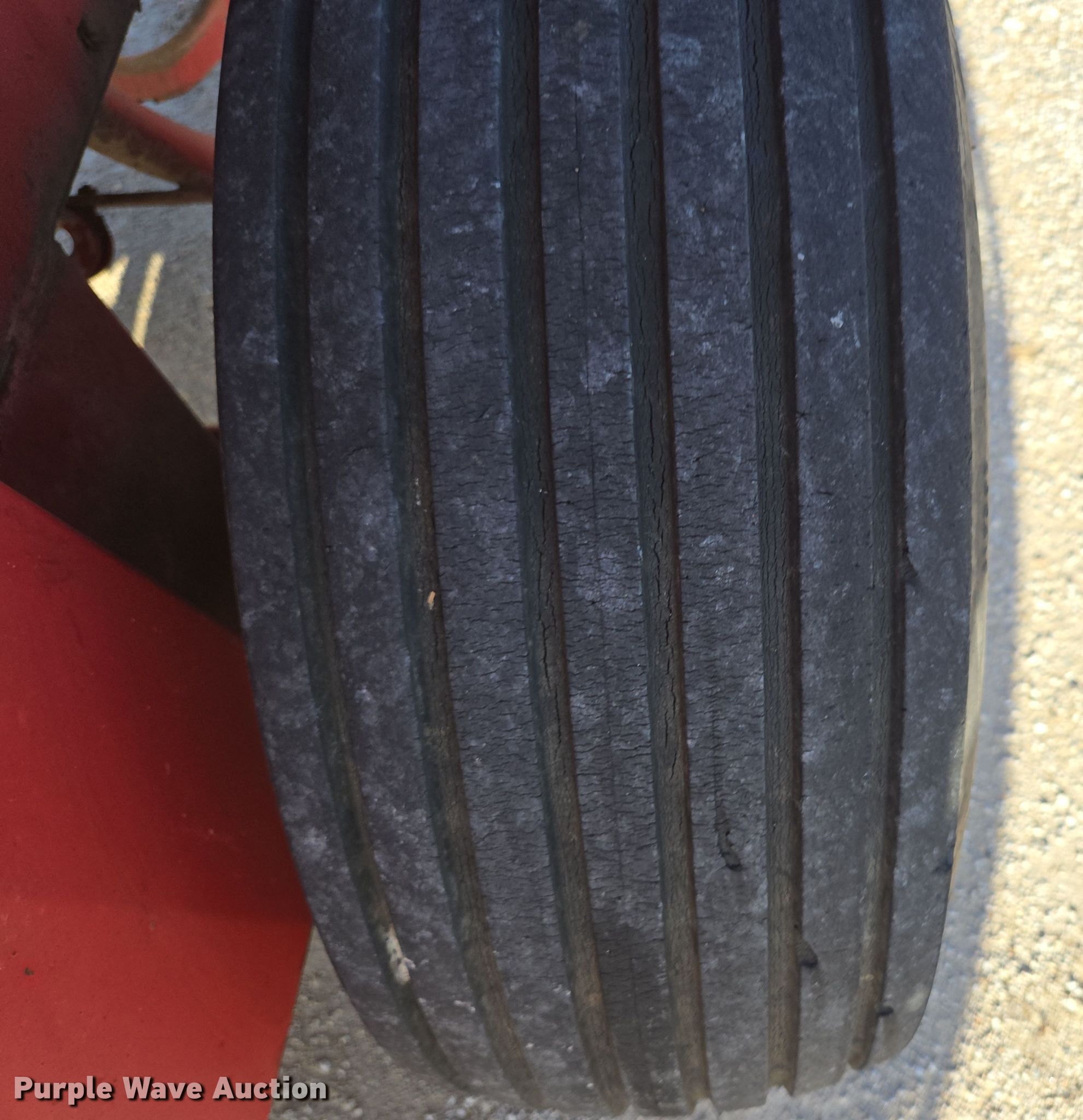 Massey Ferguson 124 small square baler. Serial: 157606. Features PTO: 540, Gauge wheels Size: 12 x 3.00, Pickup width: 56", Small square bale size: 14" x 18", Knotters, Twine tie, Bale thrower. Tires Size: ST215/75R14 27x9.50-15. Missouri State University. Springfield, MO 65807