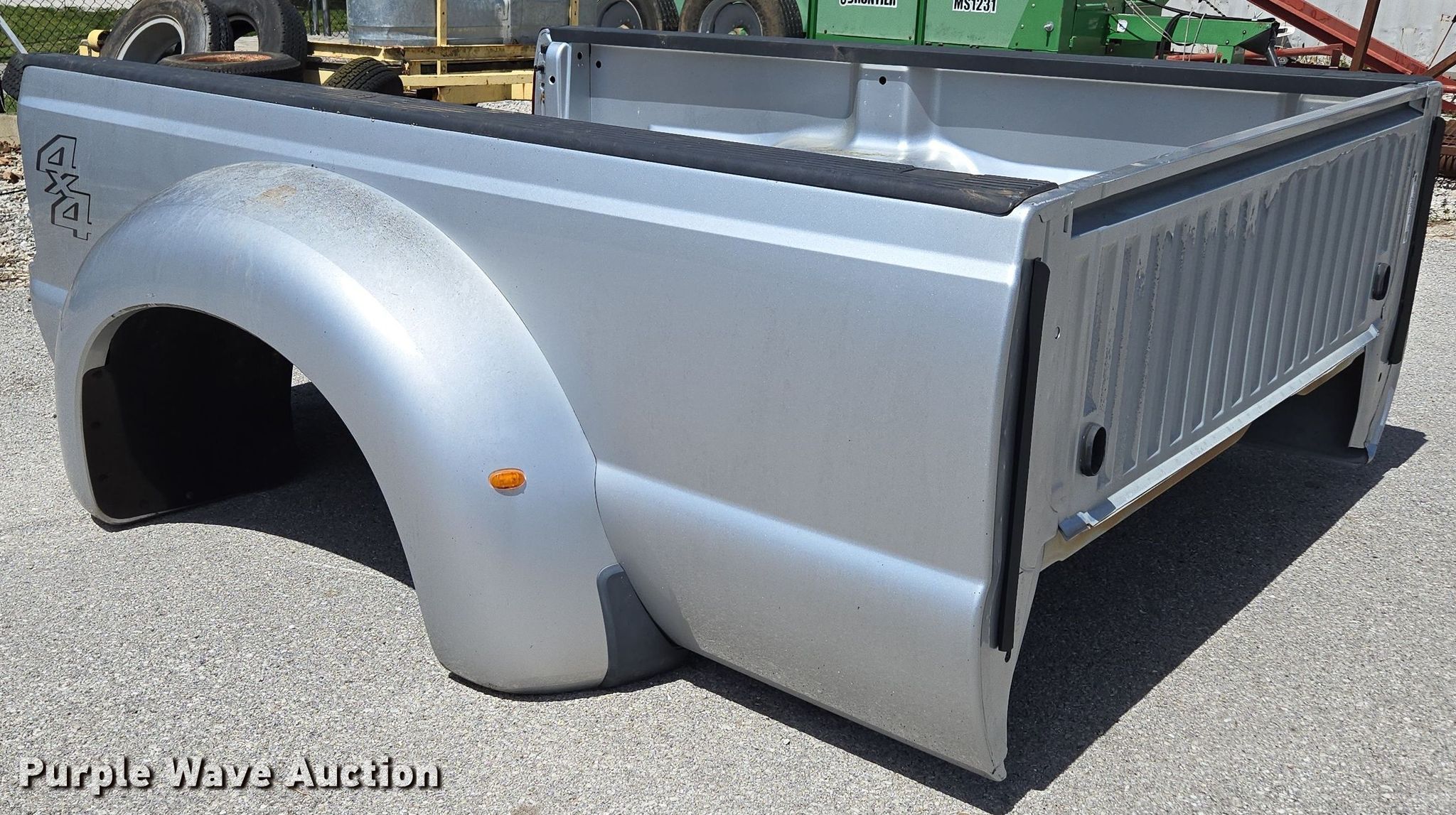 Purple Wave is selling a used Automotive Parts or Acces. in Missouri. This item is a Pickup truck bed with the following: Removed from a 2011 Ford F350, 99" L x 71" W, Tailgate, Rear bumper, Trailer hitch, Right tail light missing