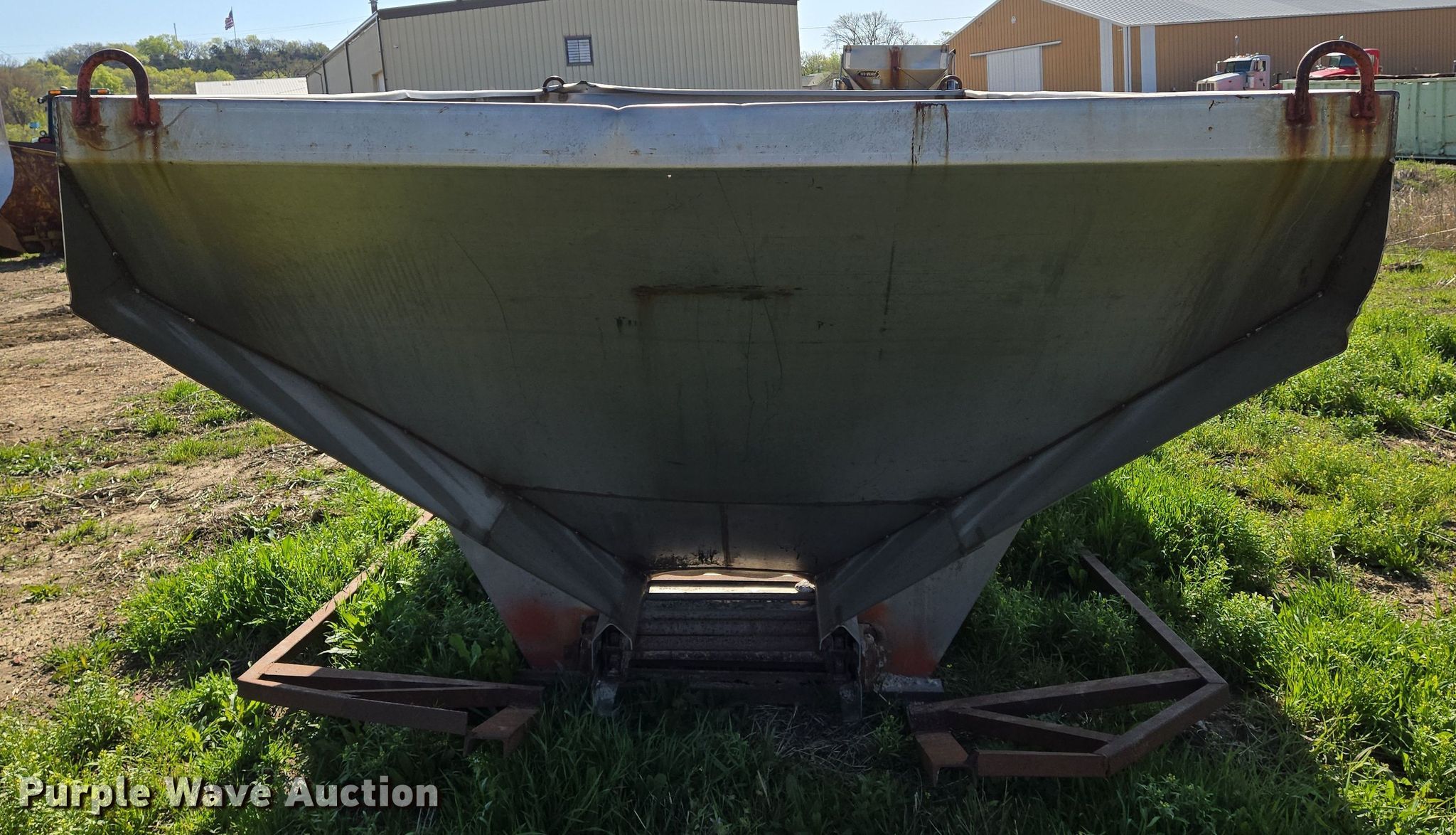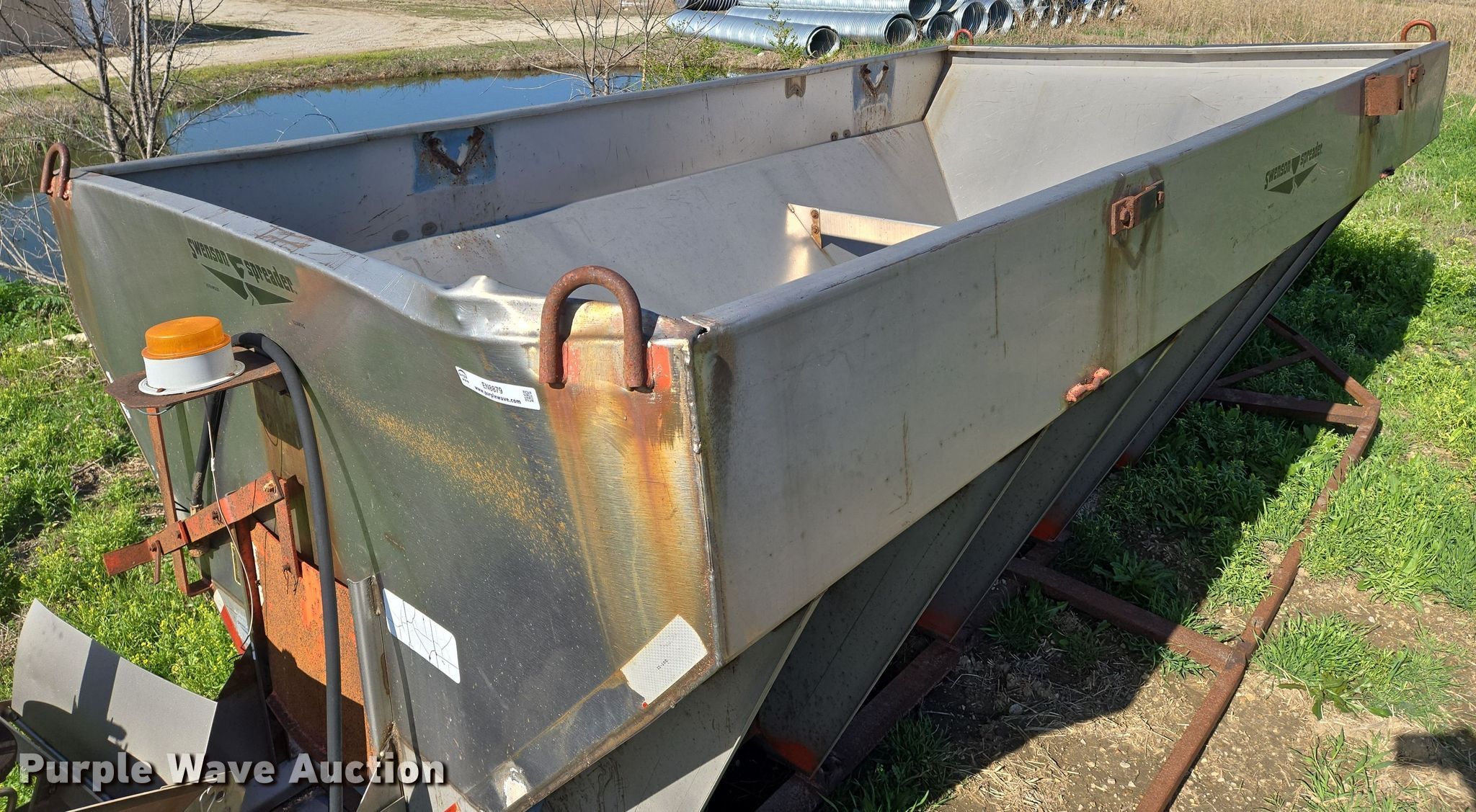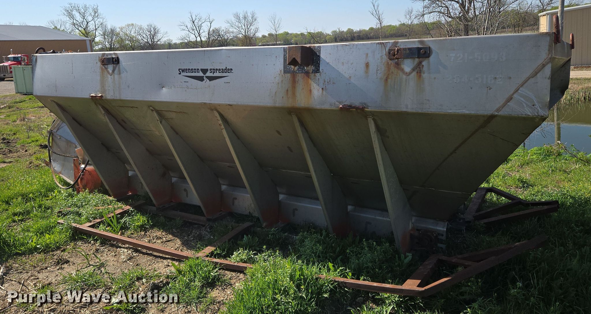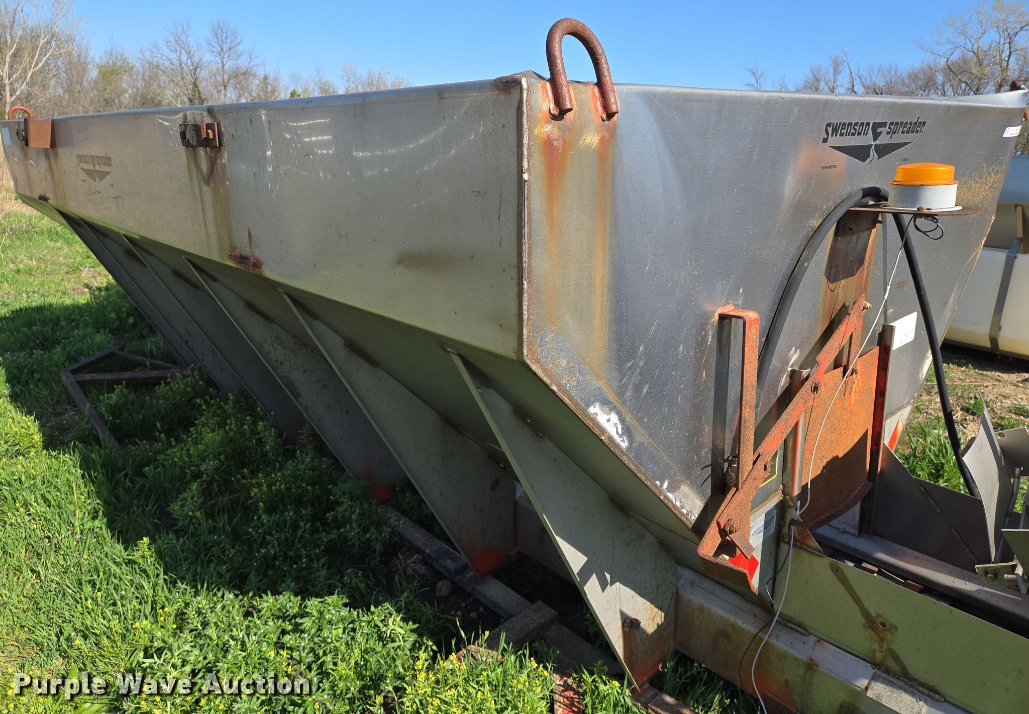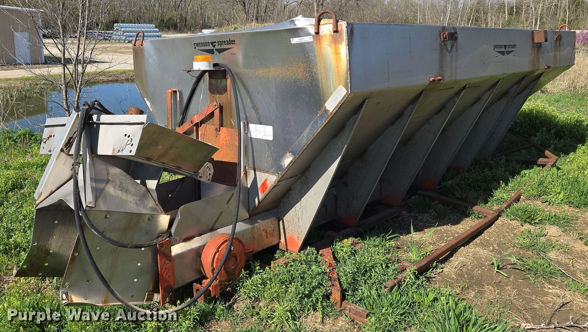 Swenson spreader. Serial: 61582. Features Capacity: 8 cu.yd., Length: 13', Width: 82". Notes Unknown operating condition. Wilson County. Fredonia, KS 66736