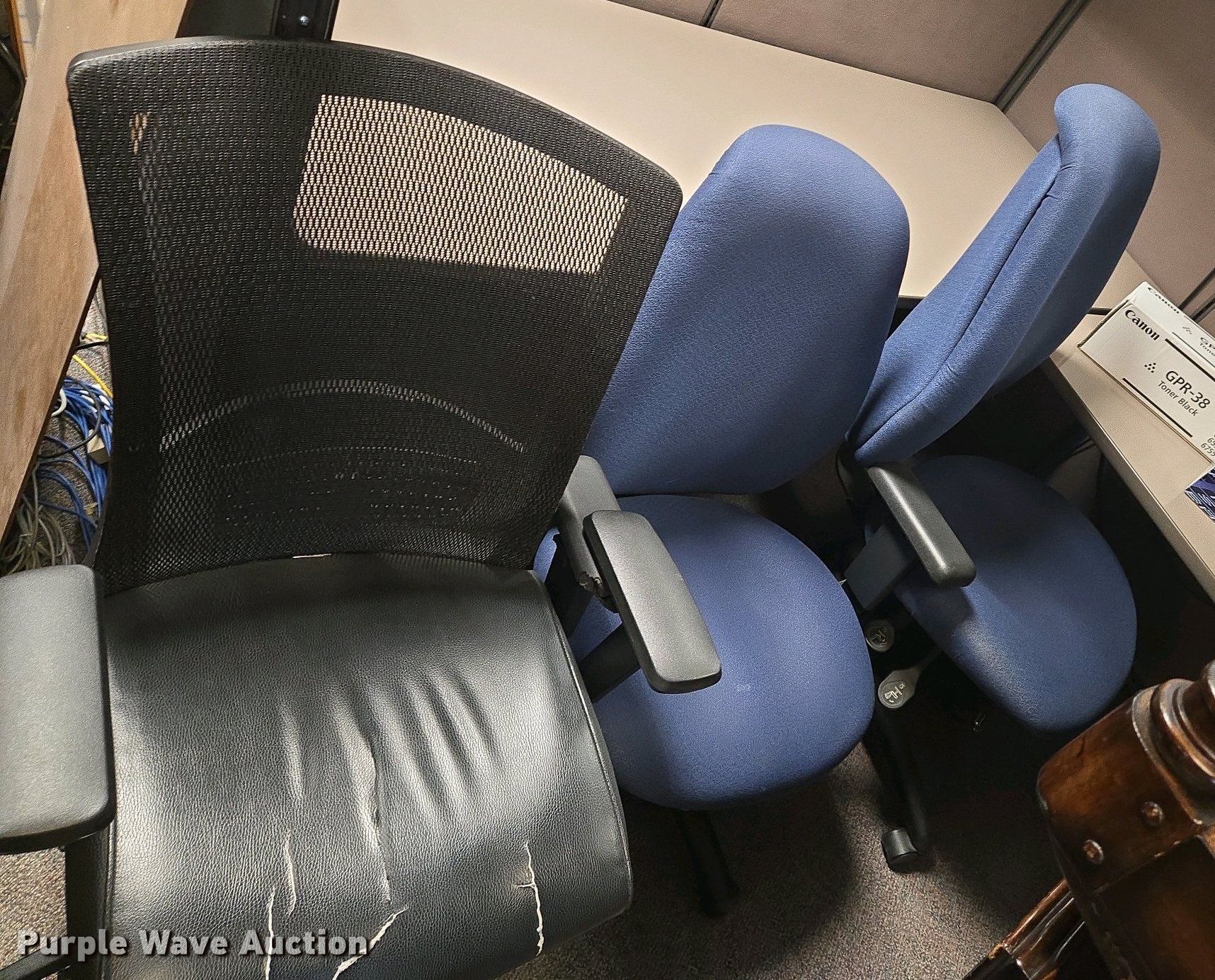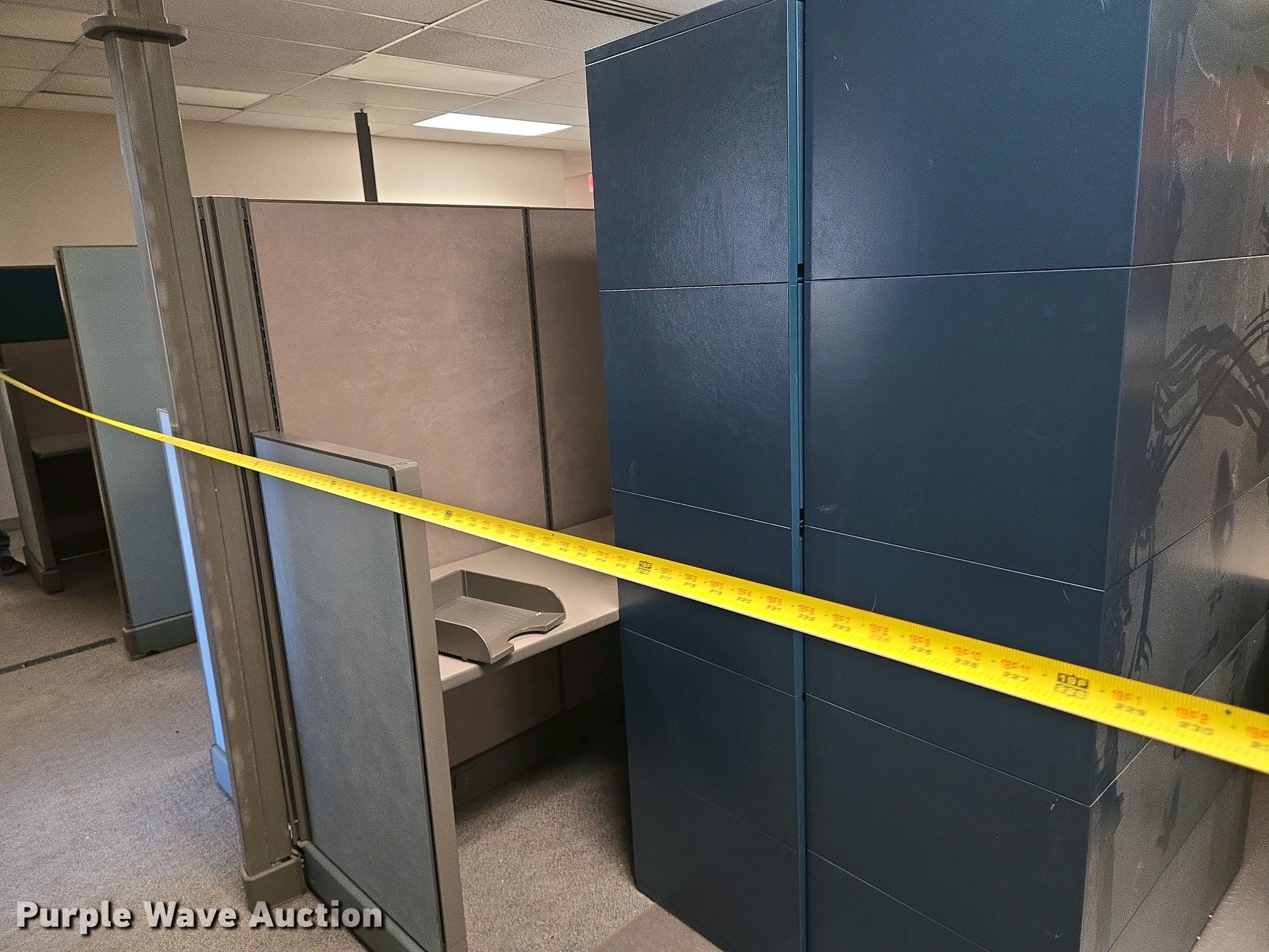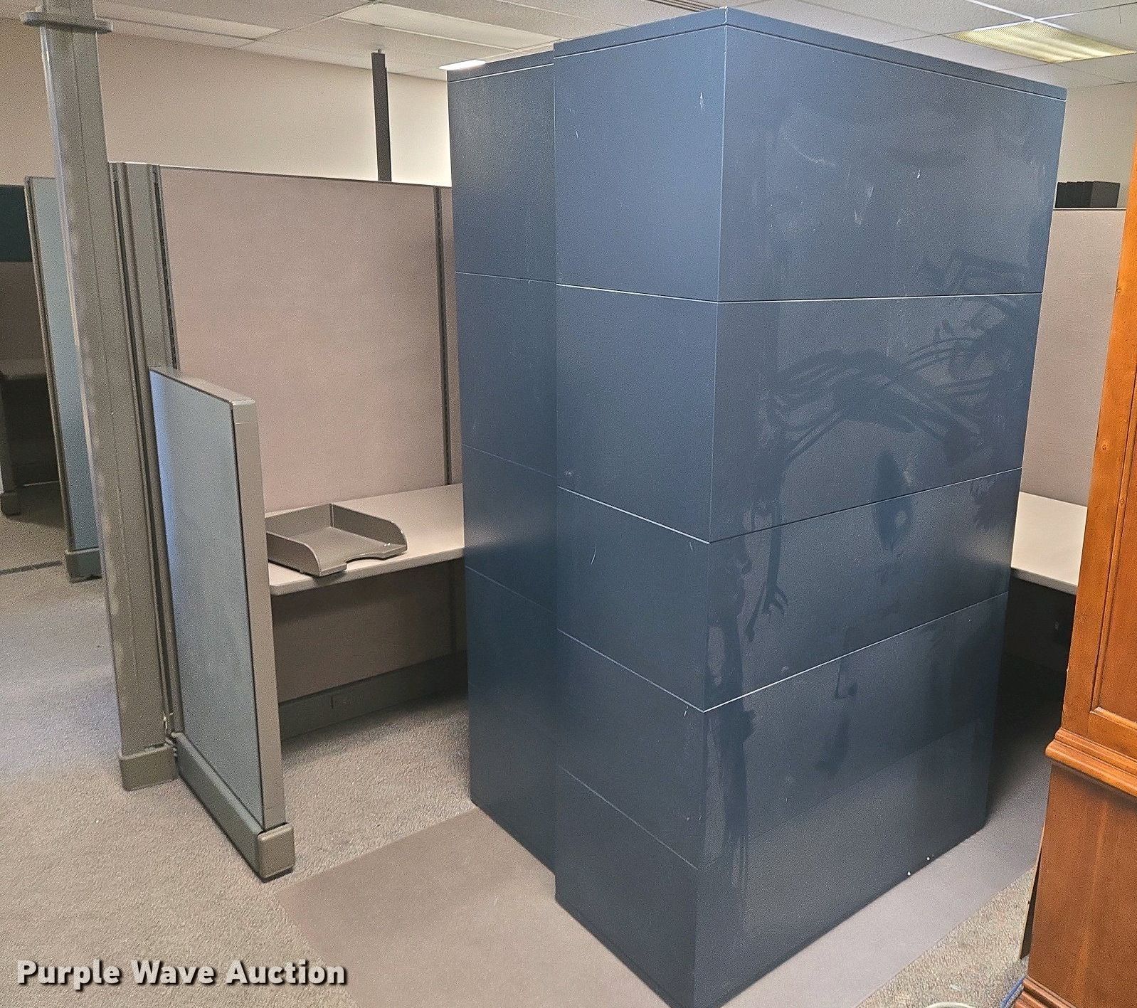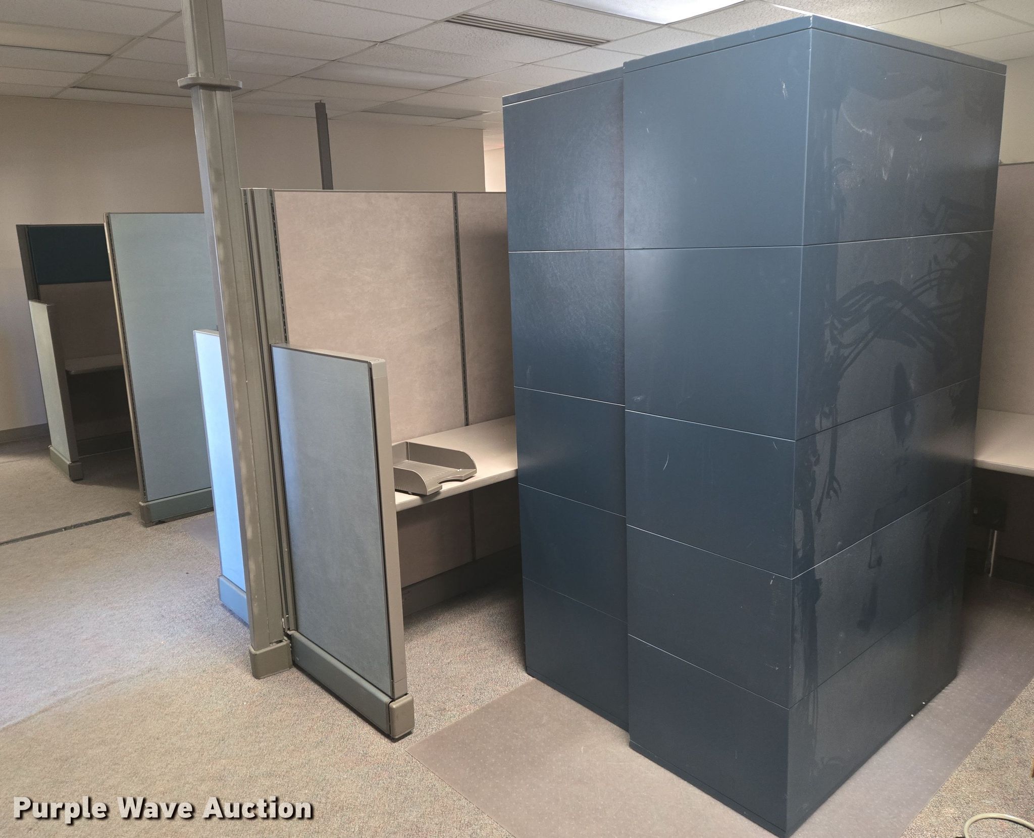 Purple Wave is selling a used Furniture in Kansas. This item is a Furniture with the following: Chairs: 7, Filing cabinets: 2, Cubicles: 6